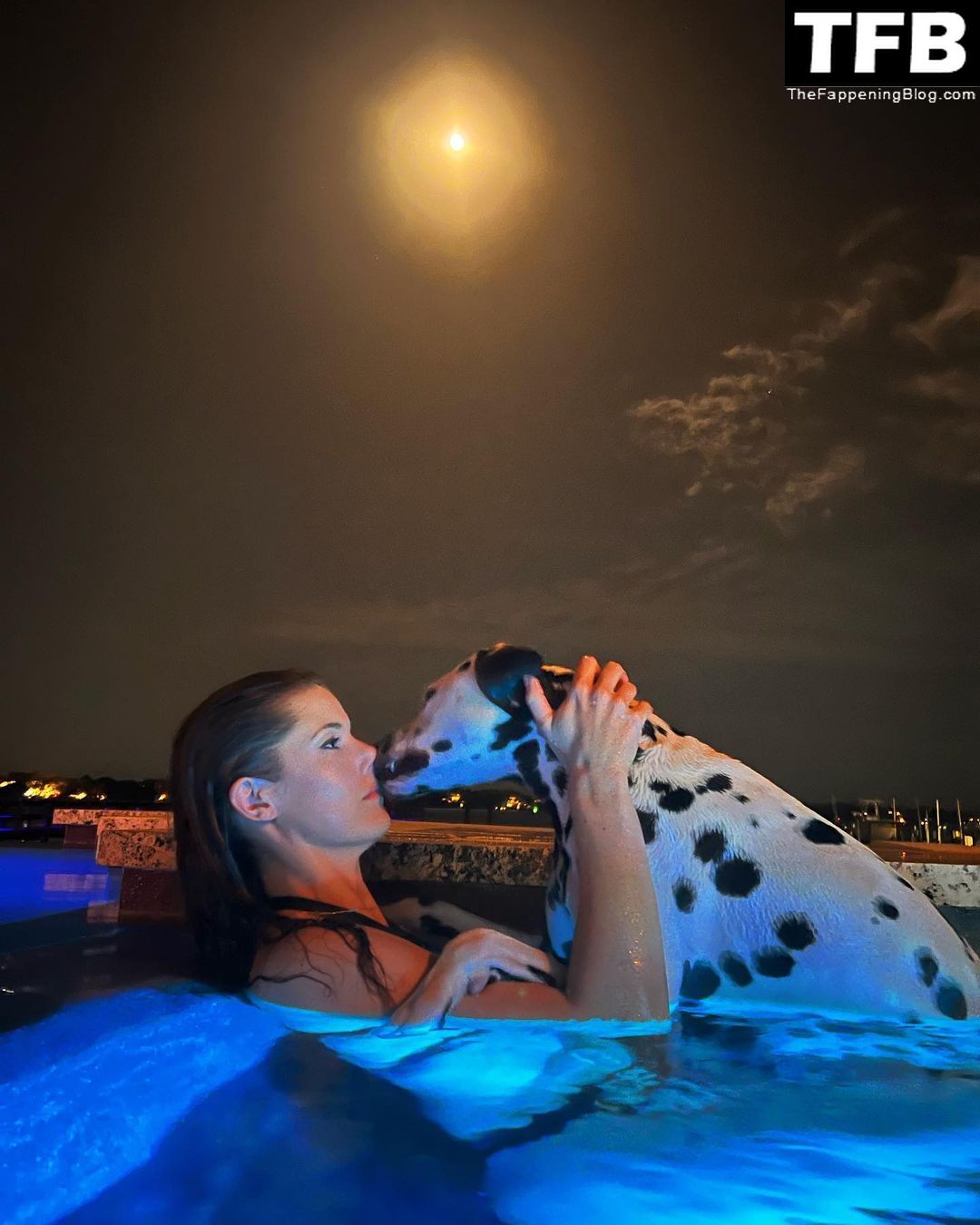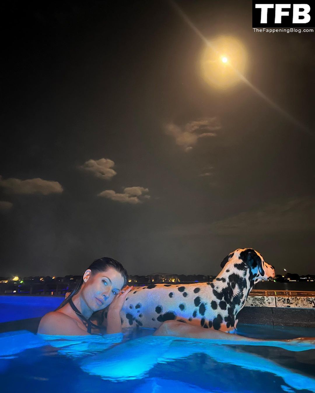 Amanda Cerny exibe seus famosos seios enquanto posa na piscina com um biquíni sexy – Instagram, 22/01/2022.