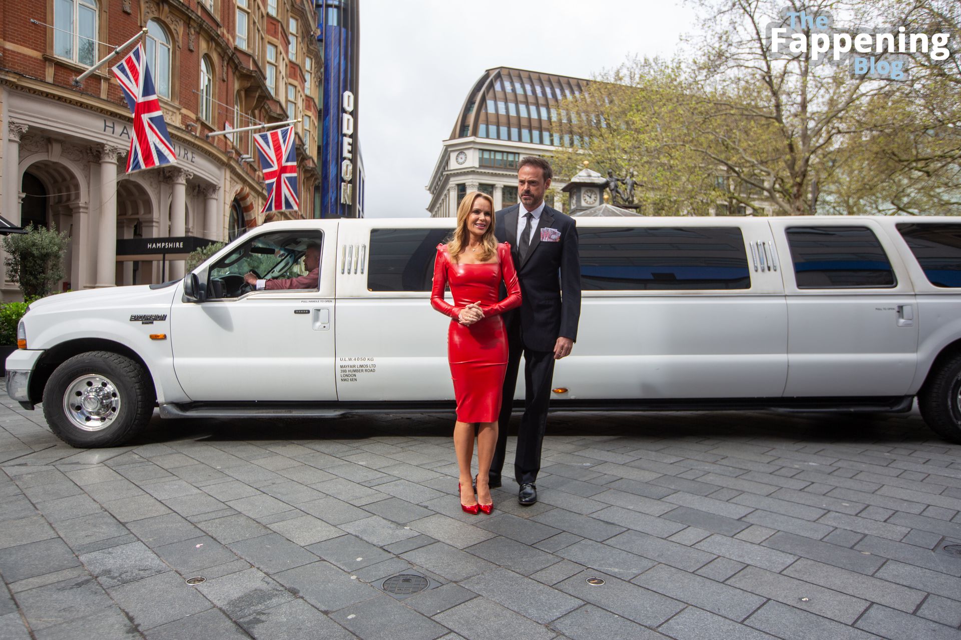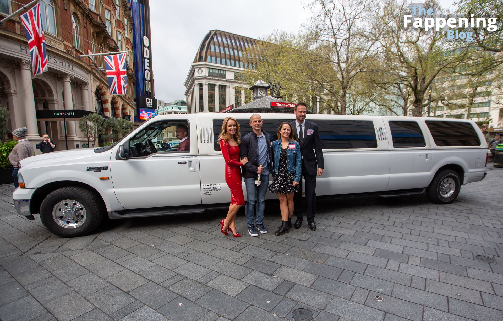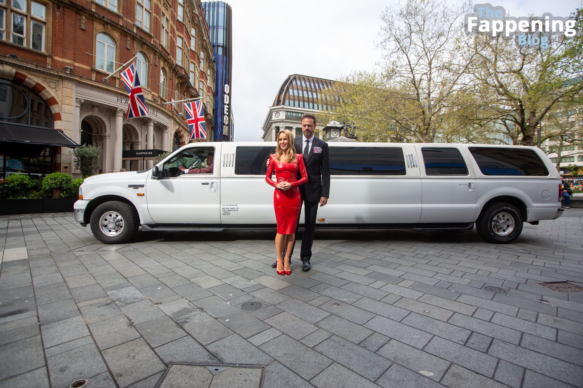 Confira a atriz e apresentadora de rádio Amanda Holden fora dos Estúdios Global Radio em 28/04/2023! Essa gata está mostrando seus seios em um vestido de couro vermelho, e ela está arrasando.
