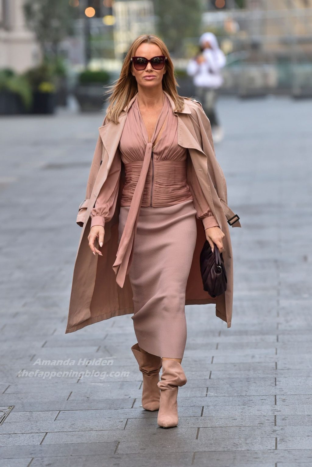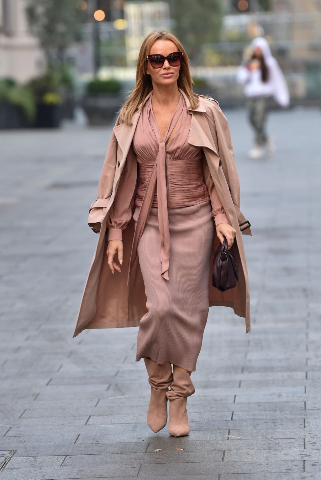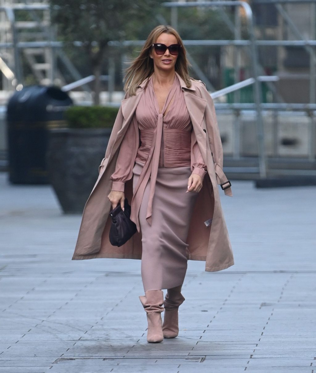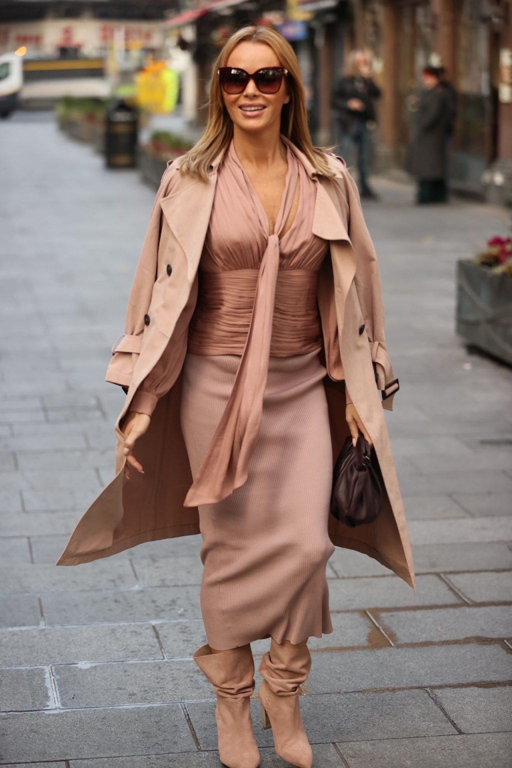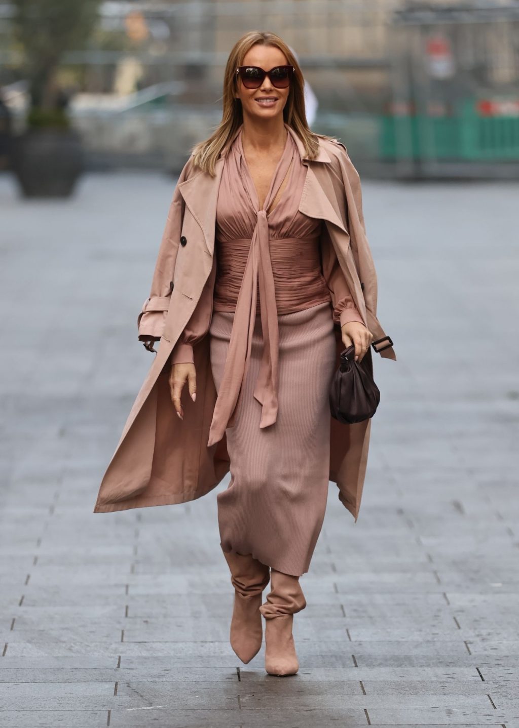 Sexy Amanda Holden usa vestido bege para o programa de rádio Heart em Londres, 11/05/2020.