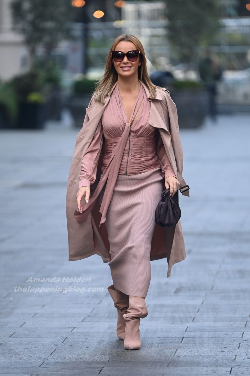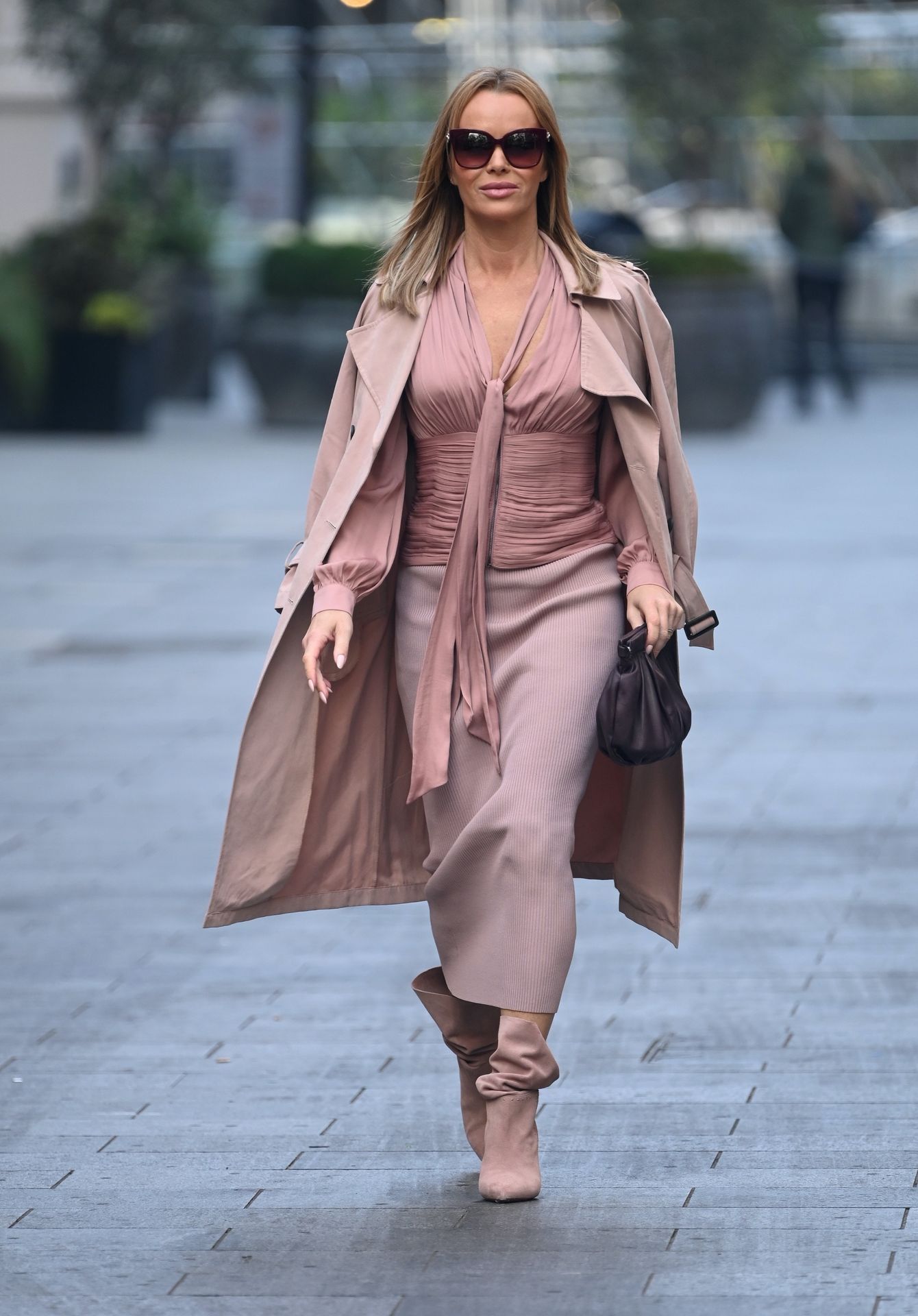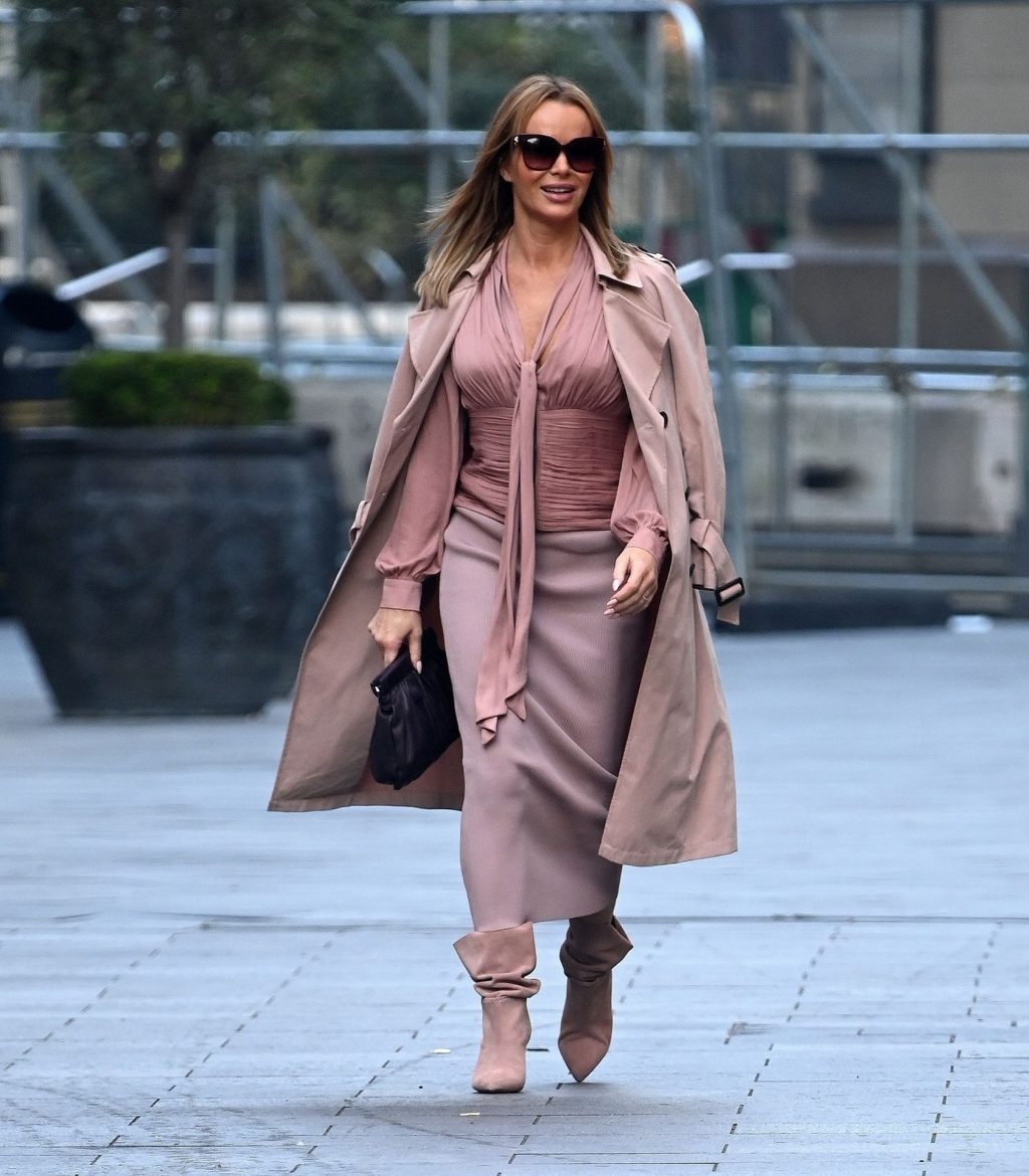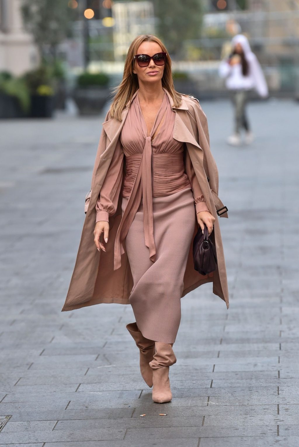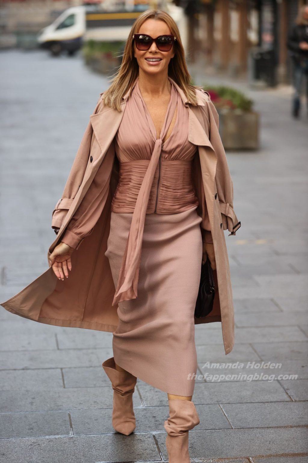 Sexy Amanda Holden usa vestido bege para o programa de rádio Heart em Londres, 11/05/2020.