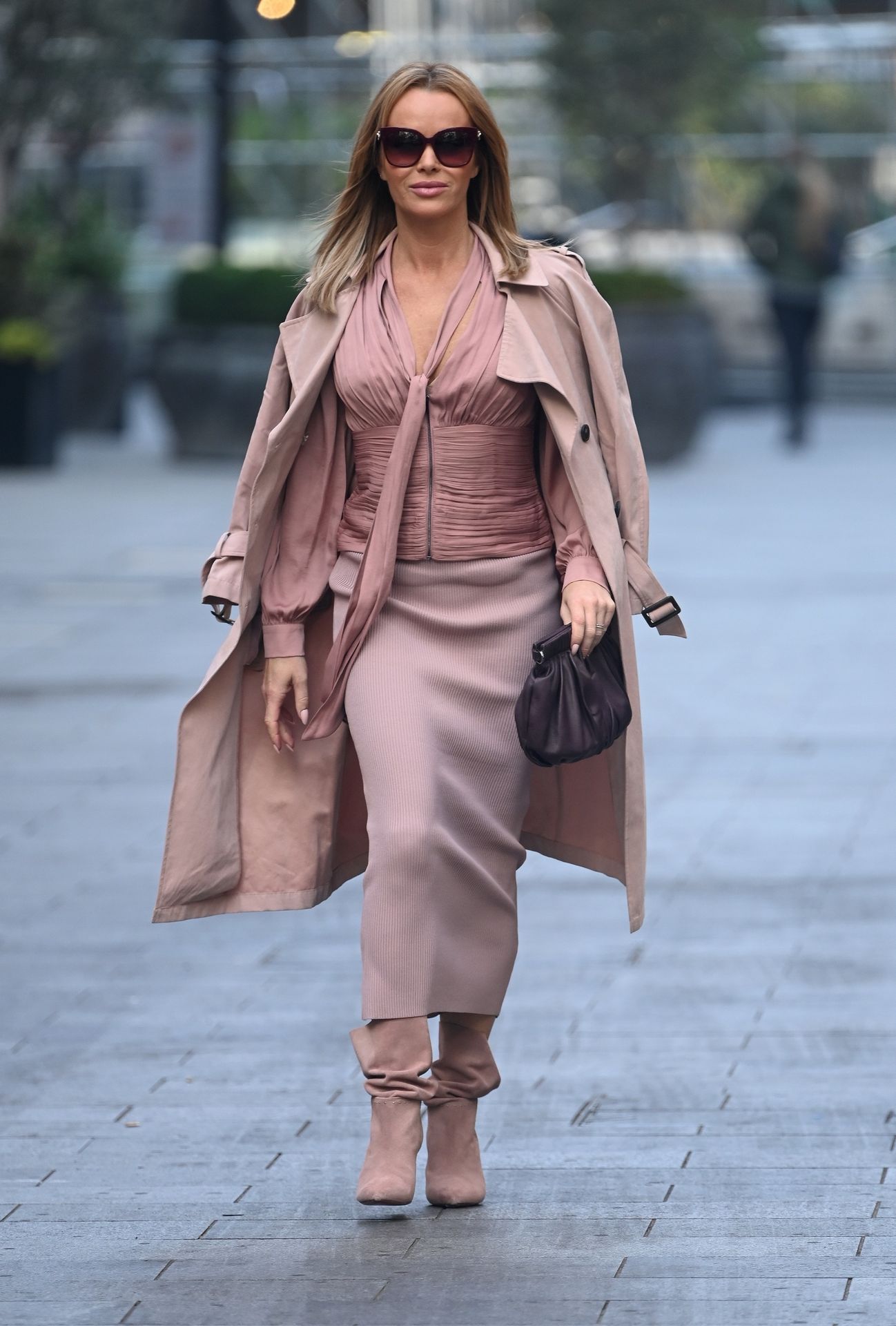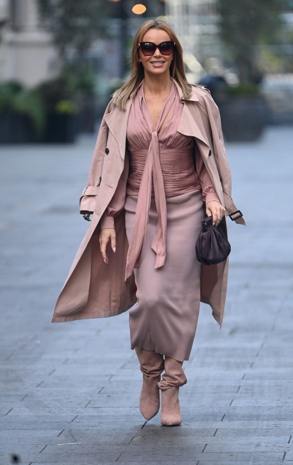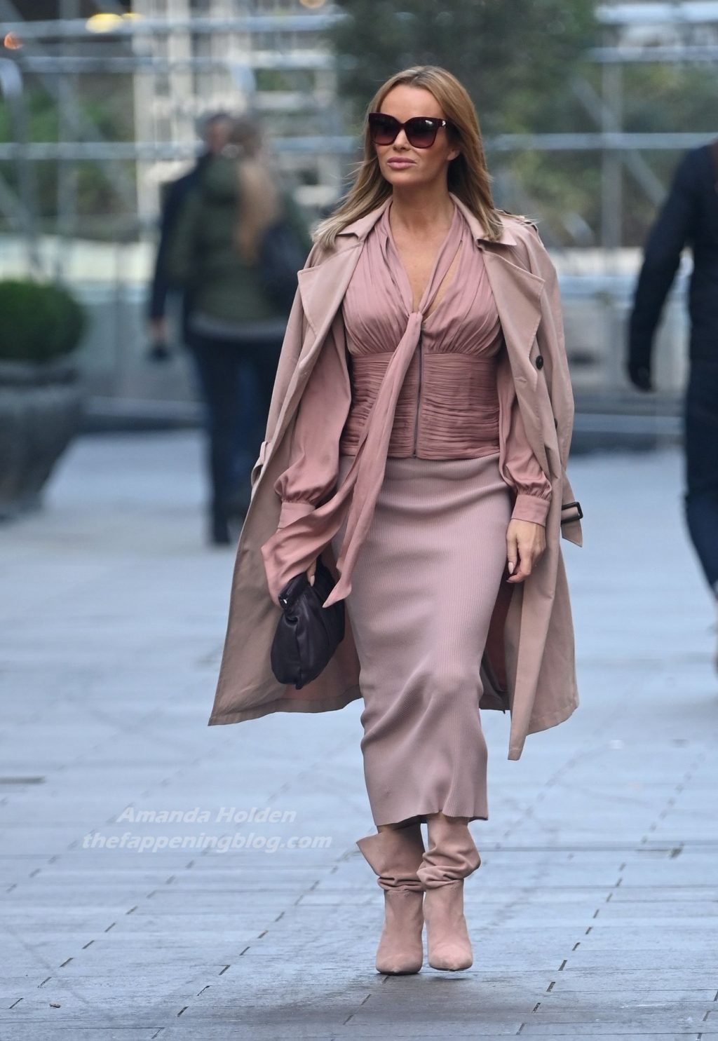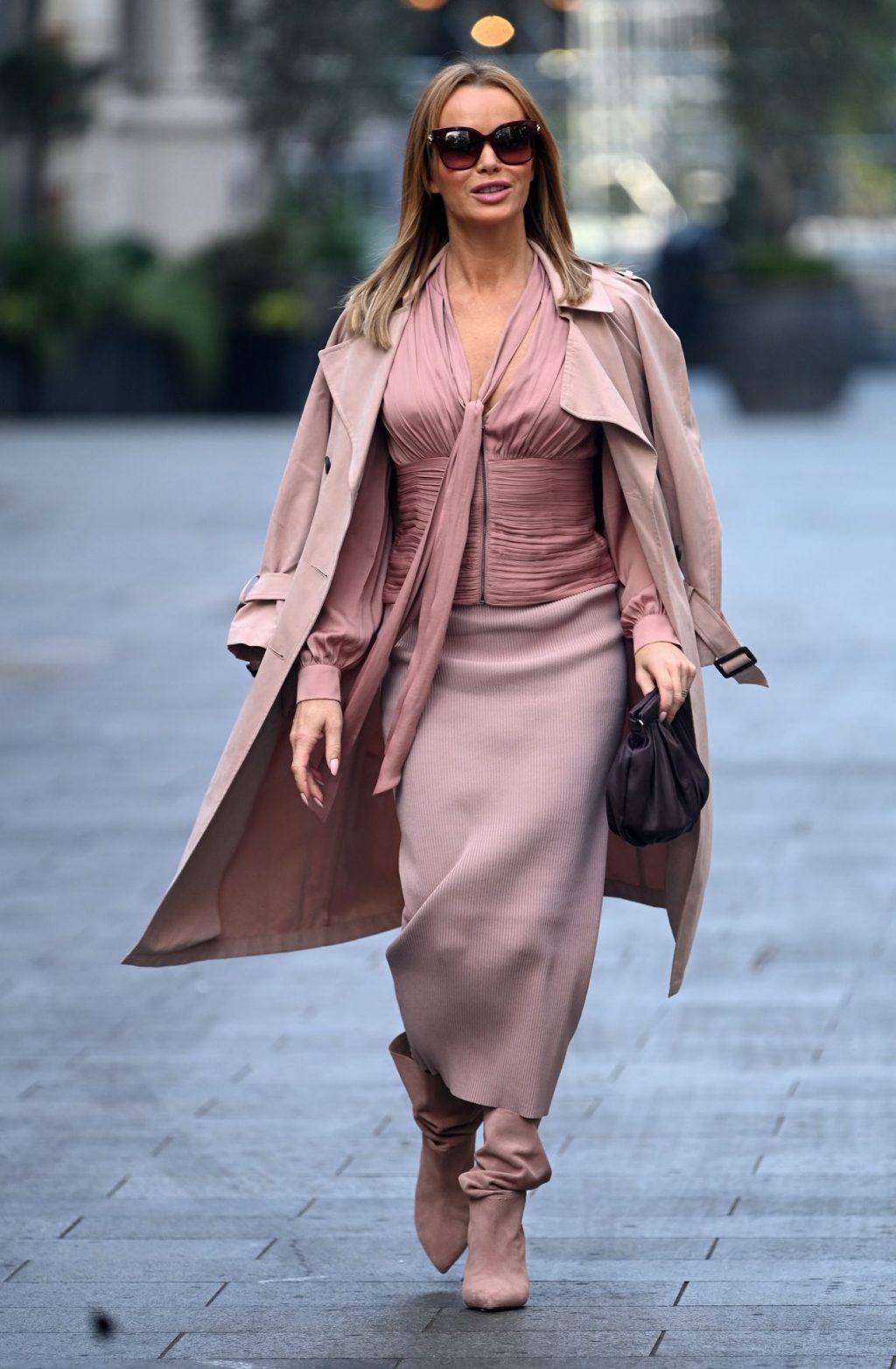 Sexy Amanda Holden usa vestido bege para o programa de rádio Heart em Londres, 11/05/2020.