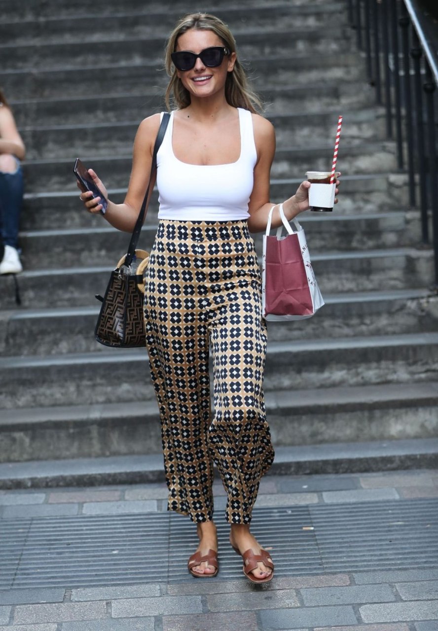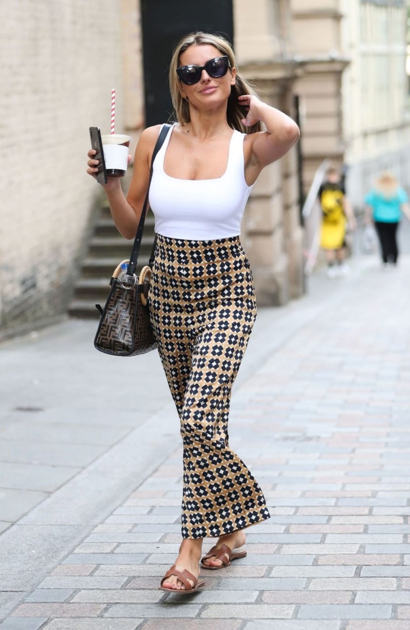Ex-vencedora do ‘Love Island’, Amber Davies, parece deslumbrante chegando ao 9 to 5 na noite final do Love Island em Londres, 29/07/2019. A estrela, vestindo uma camiseta justa, estava relembrando sua experiência.