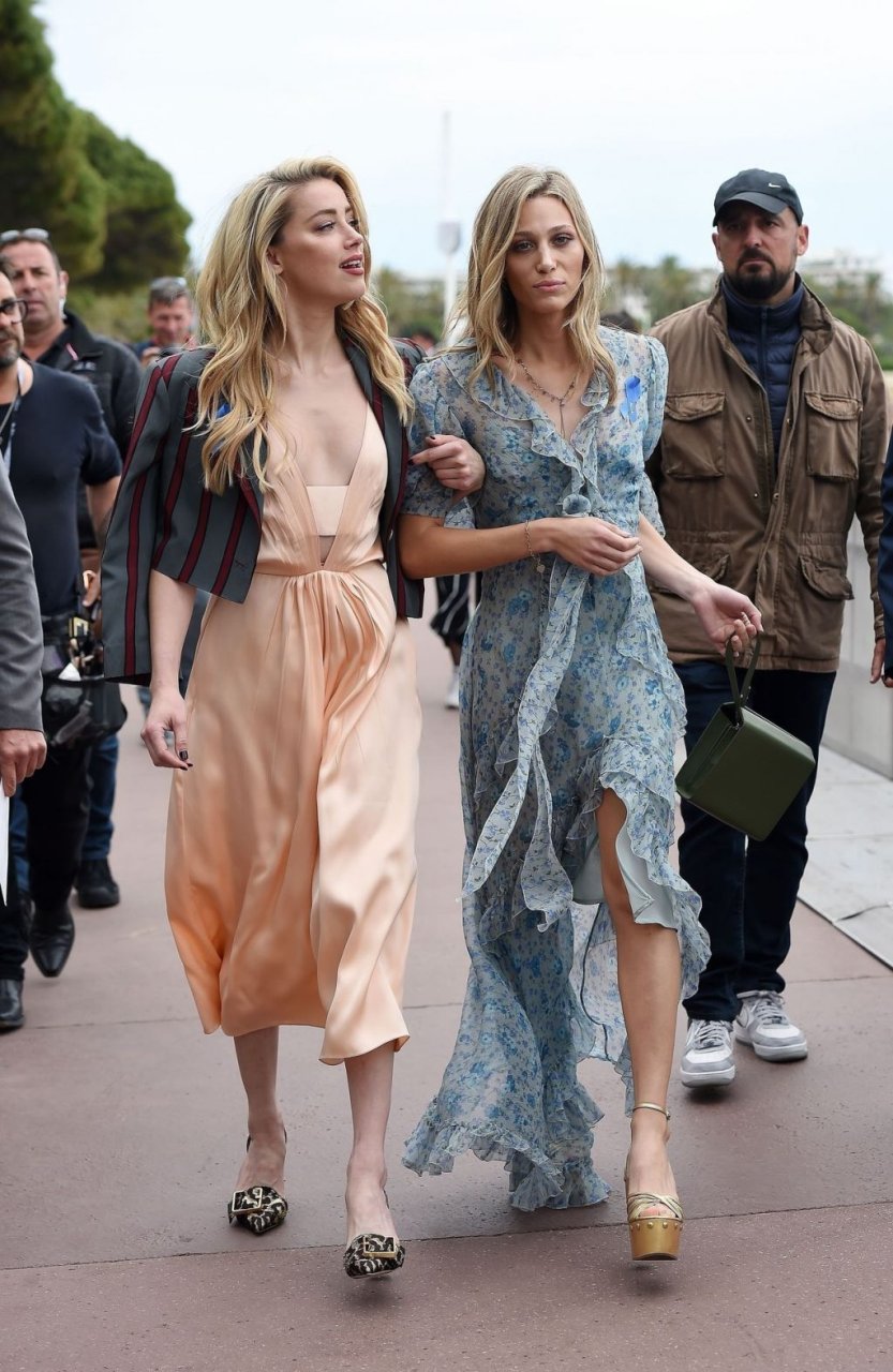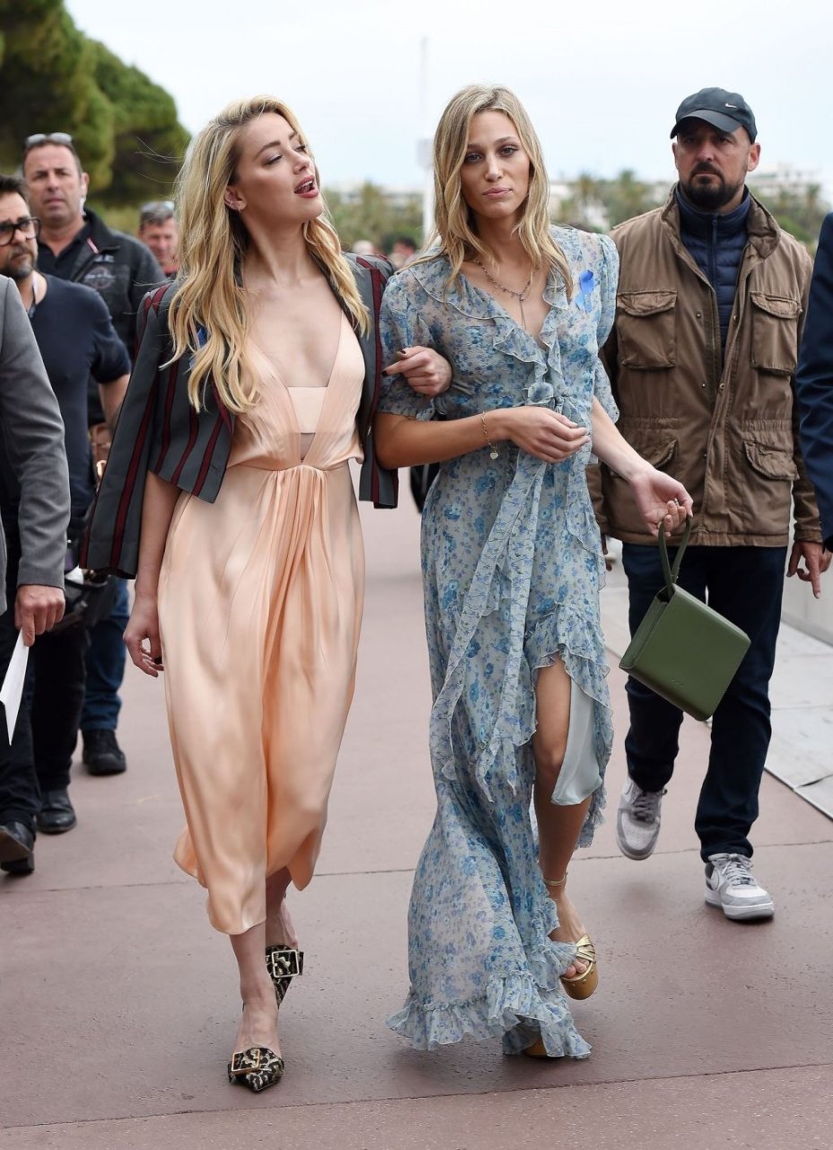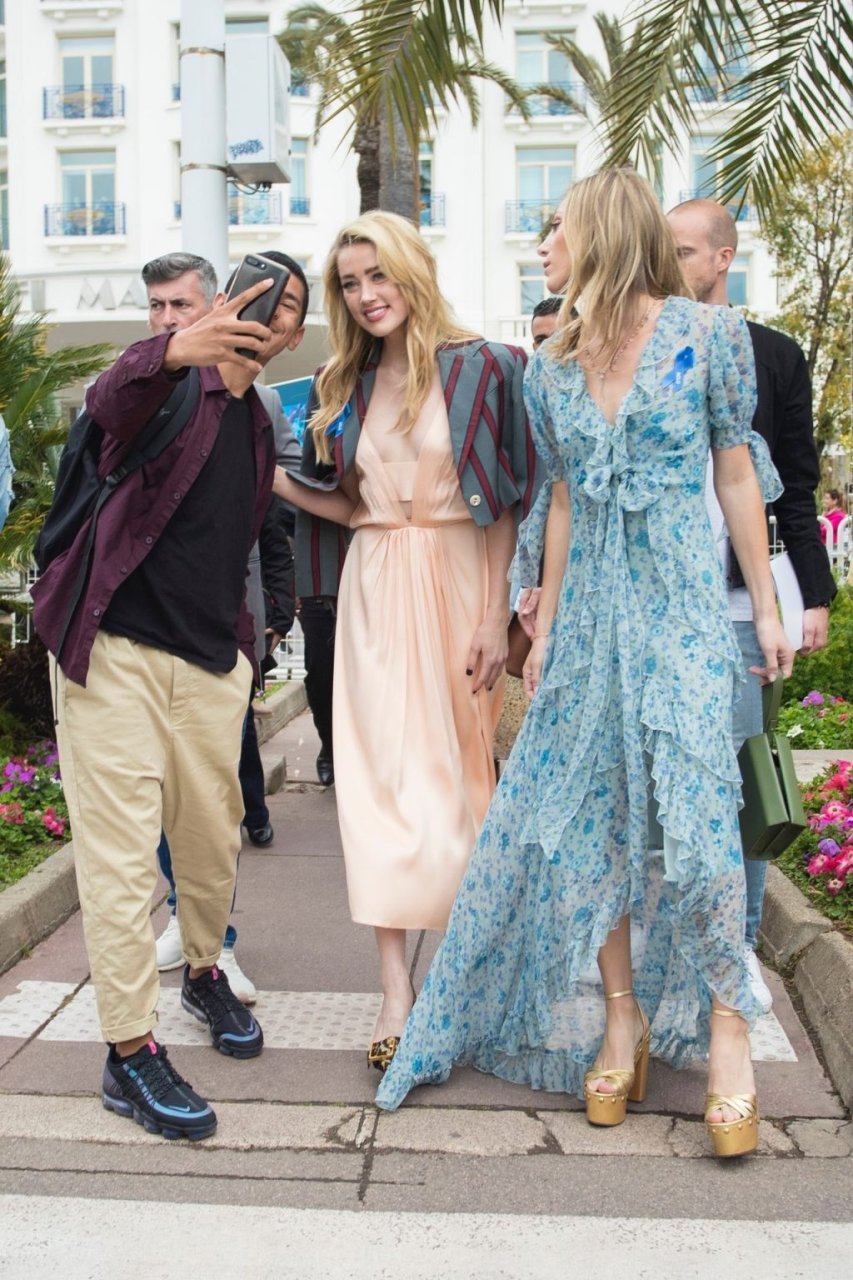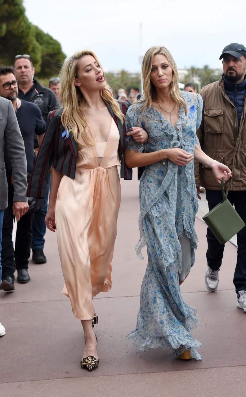 Atriz e estrela de The Fappening Amber Heard está elegante em um vestido de cetim e jaqueta cropped enquanto é fotografada na Promenade de la Croisette durante o 72º Festival Internacional de Cinema de Cannes, 17/05/2019.