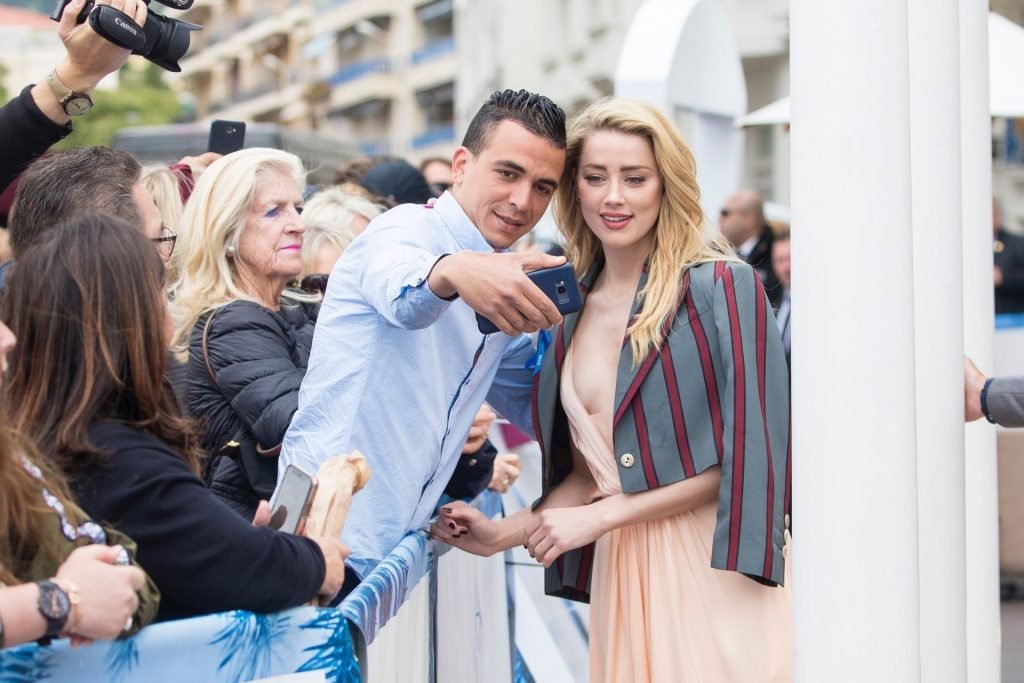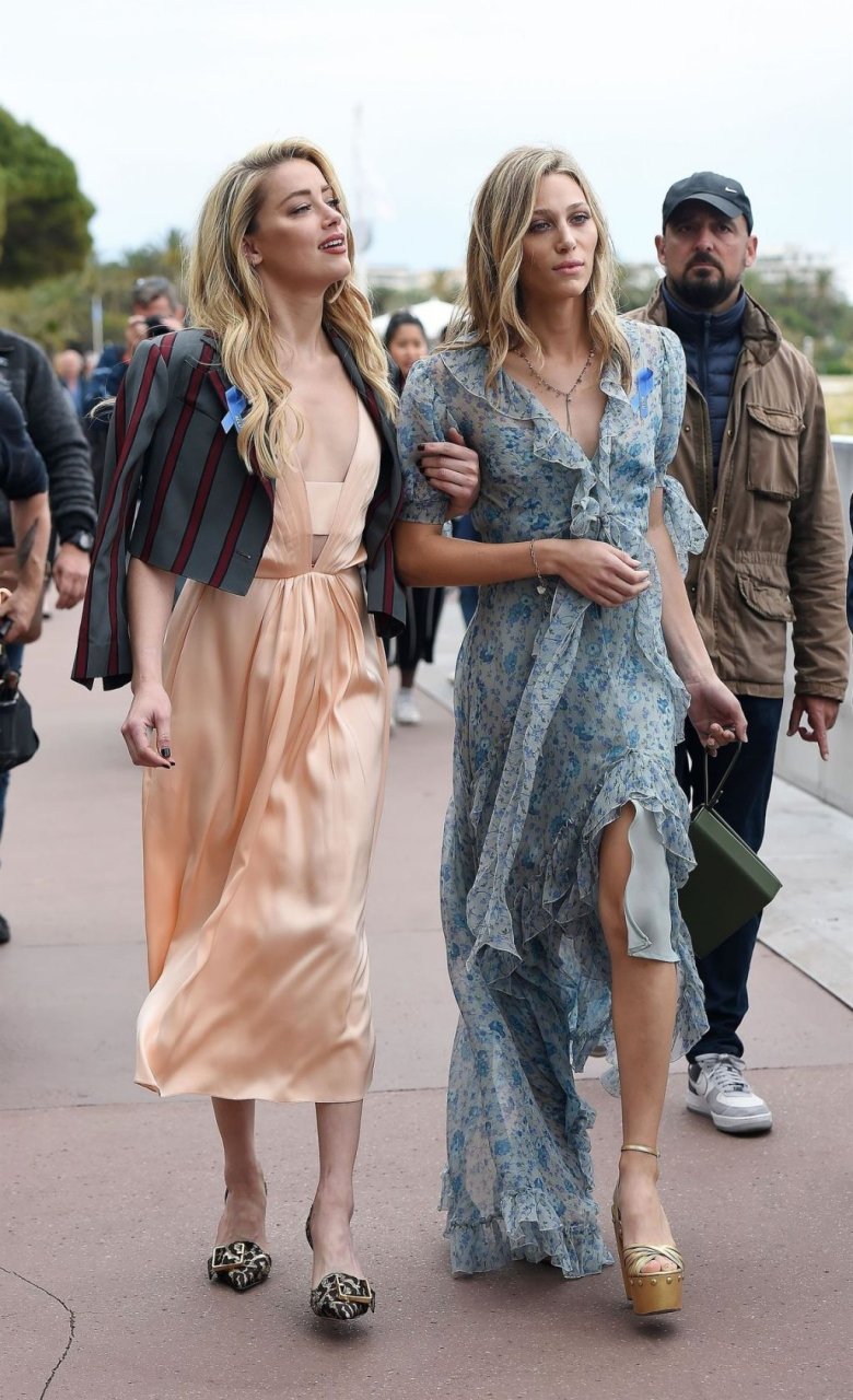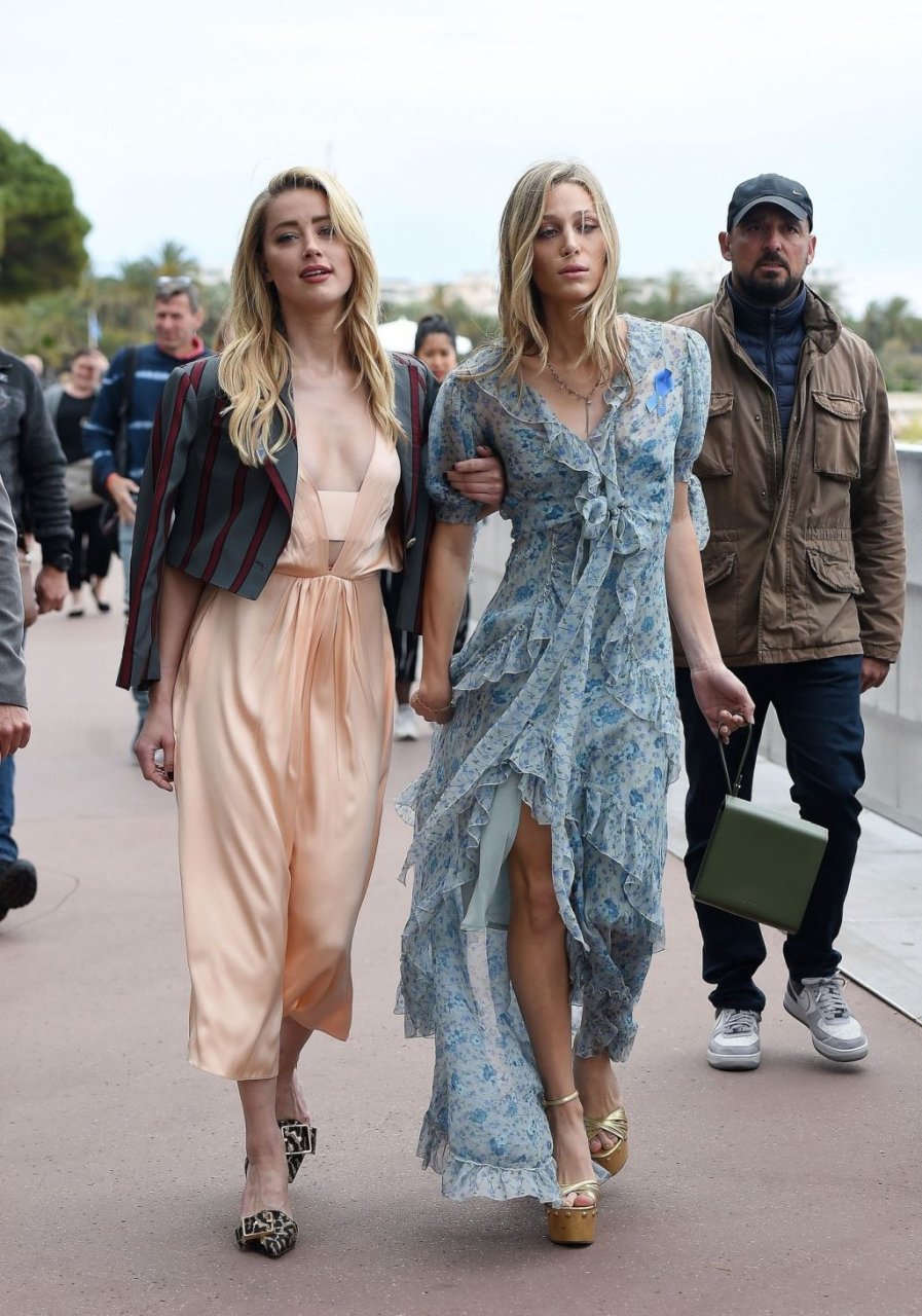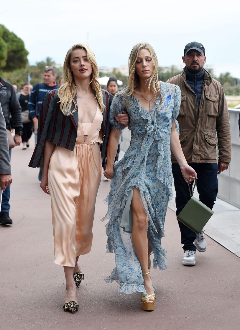 Atriz e estrela de The Fappening Amber Heard está elegante em um vestido de cetim e jaqueta cropped enquanto é fotografada na Promenade de la Croisette durante o 72º Festival Internacional de Cinema de Cannes, 17/05/2019.