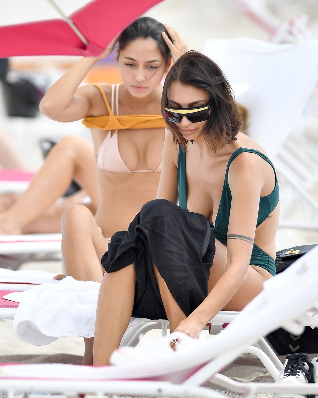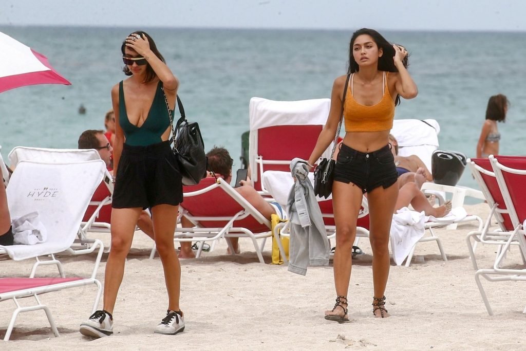 Ambra Gutierrez, a modelo que acusou Harvey Weinstein de assediá-la em seu escritório em Nova York, e sua amiga, Vicky Cooper, aproveitaram o sol de Miami esta tarde enquanto tiravam algumas fotos na praia, 26/04/2019. A modelo da Victoria’s Secret falou contra o produtor de cinema desonrado Harvey Weinstein em 2015.