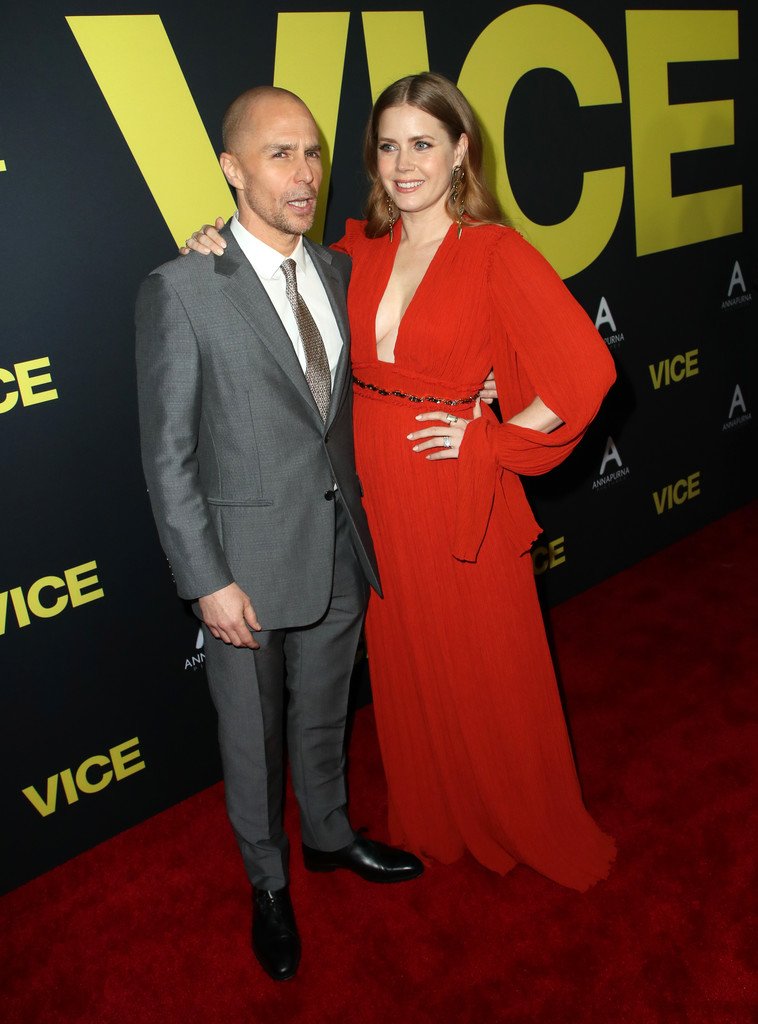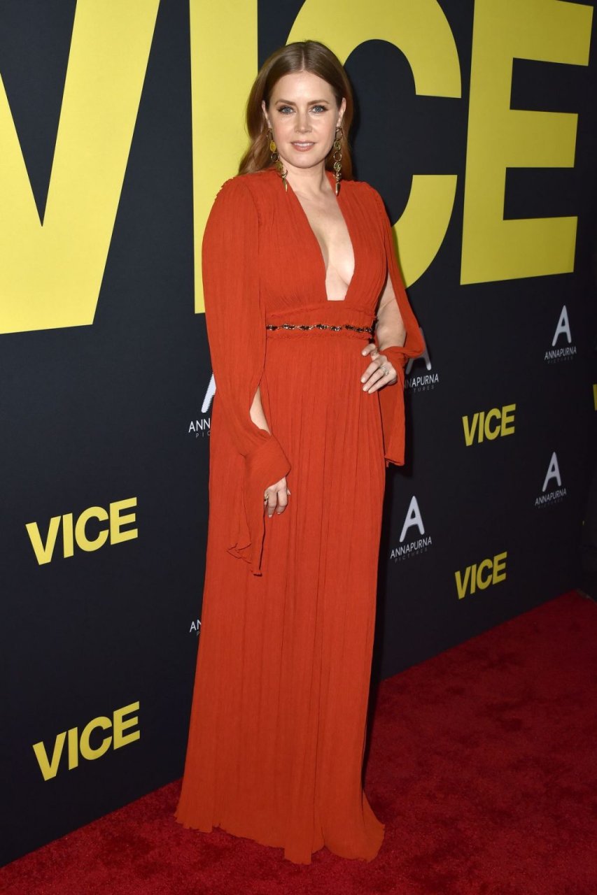 Amy Adams foi vista na estreia mundial do filme “Vice” em Beverly Hills, 11/12/2018. A atriz, que interpretou a esposa do vice-presidente dos EUA, Dick Cheney, apareceu no evento com um vestido vermelho luxuoso e decote profundo, quase revelando seus magníficos seios.