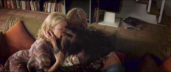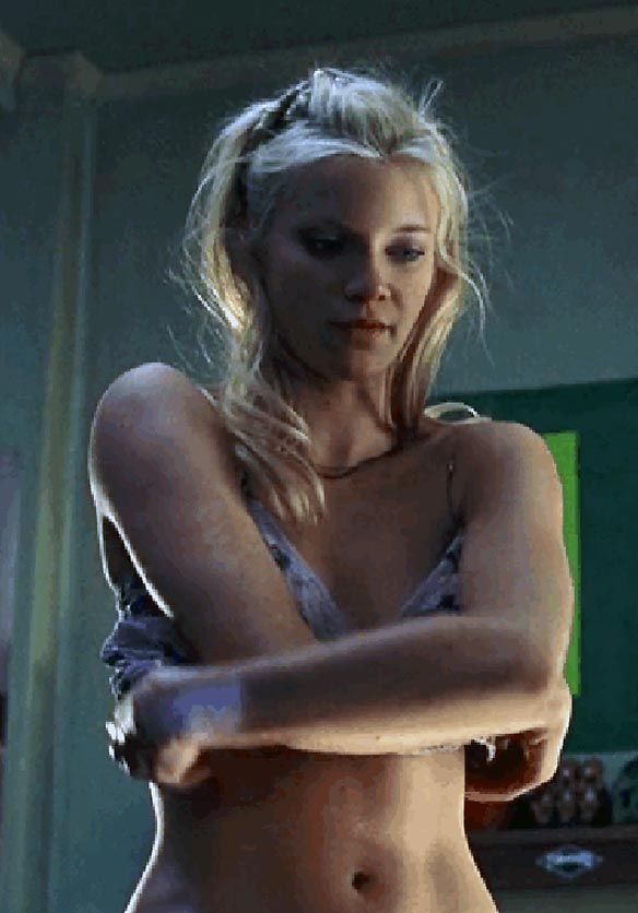Amy Smart is pulling her top over her head to reveal her nice breasts to a guy as he lies in bed. She then walks over and joins him in bed, wearing only red panties as she kisses him. Then, they are seen on a TV screen giving us a close up look at her ass in red panties and then seen out of focus in the reflection of a mirror as she removes her shirt from behind and then climbs on top of a guy before giving us a better look at her left breast. Simultaneously, she straddles a guy and kisses him all as Rachel Blanchard. Two other women watch a videotape showing an additional angle not contained in the main scene earlier in the film.