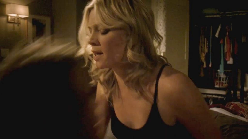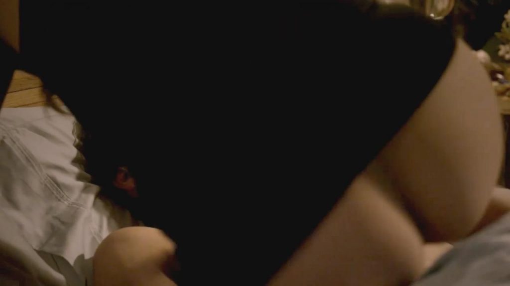 Amy Smart is finishing up riding a guy as they have sex in bed, then showing her bare butt as she swings her legs over him to climb out of bed. We then see her pulling a pair of panties up under her short dress at the foot of the bed.