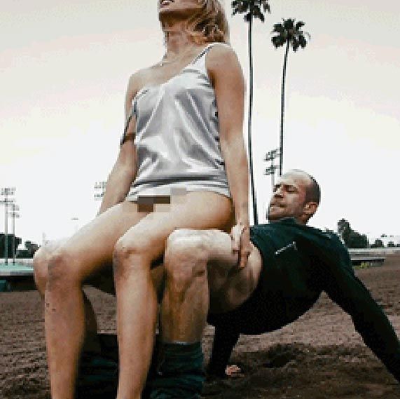 Amy Smart cai na terra de uma pista de cavalos durante uma corrida, esfregando-se contra o rapaz e montando nele enquanto a multidão assiste. O rapaz então vira Amy de costas e joga sua calcinha fora para que possam fazer sexo em várias posições selvagens enquanto a multidão continua a aplaudi-los. Em um momento, a personagem de Amy mostra os seios nus, mas eles são de uma dublê de corpo.