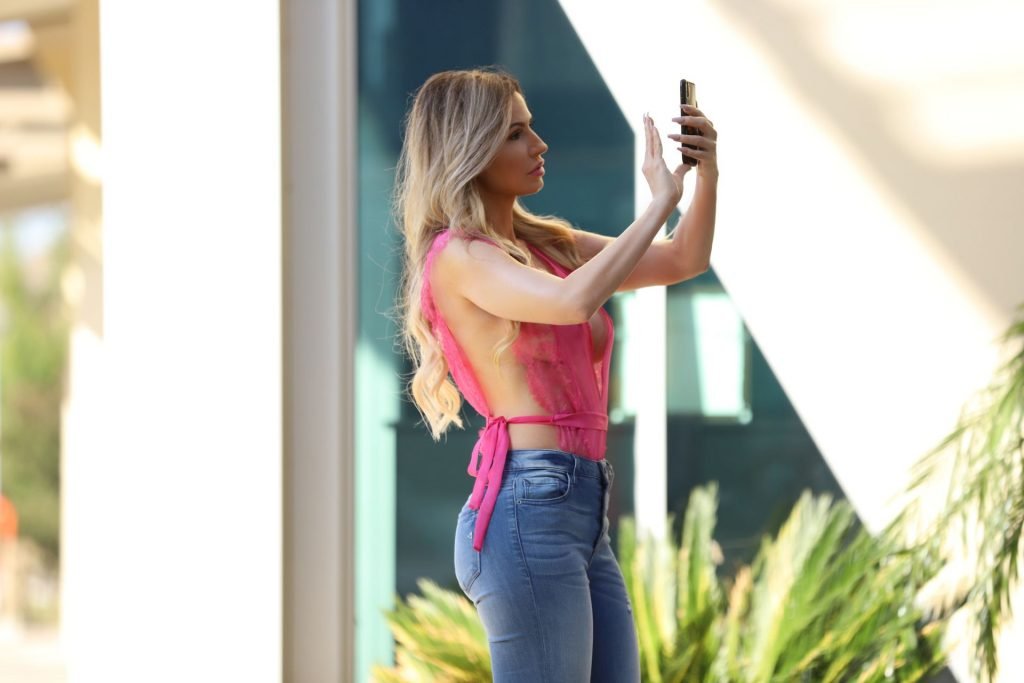 A Playmate brasileira Ana Braga se despede do verão com um body rosa escandaloso em Calabasas, 29/09/2019.