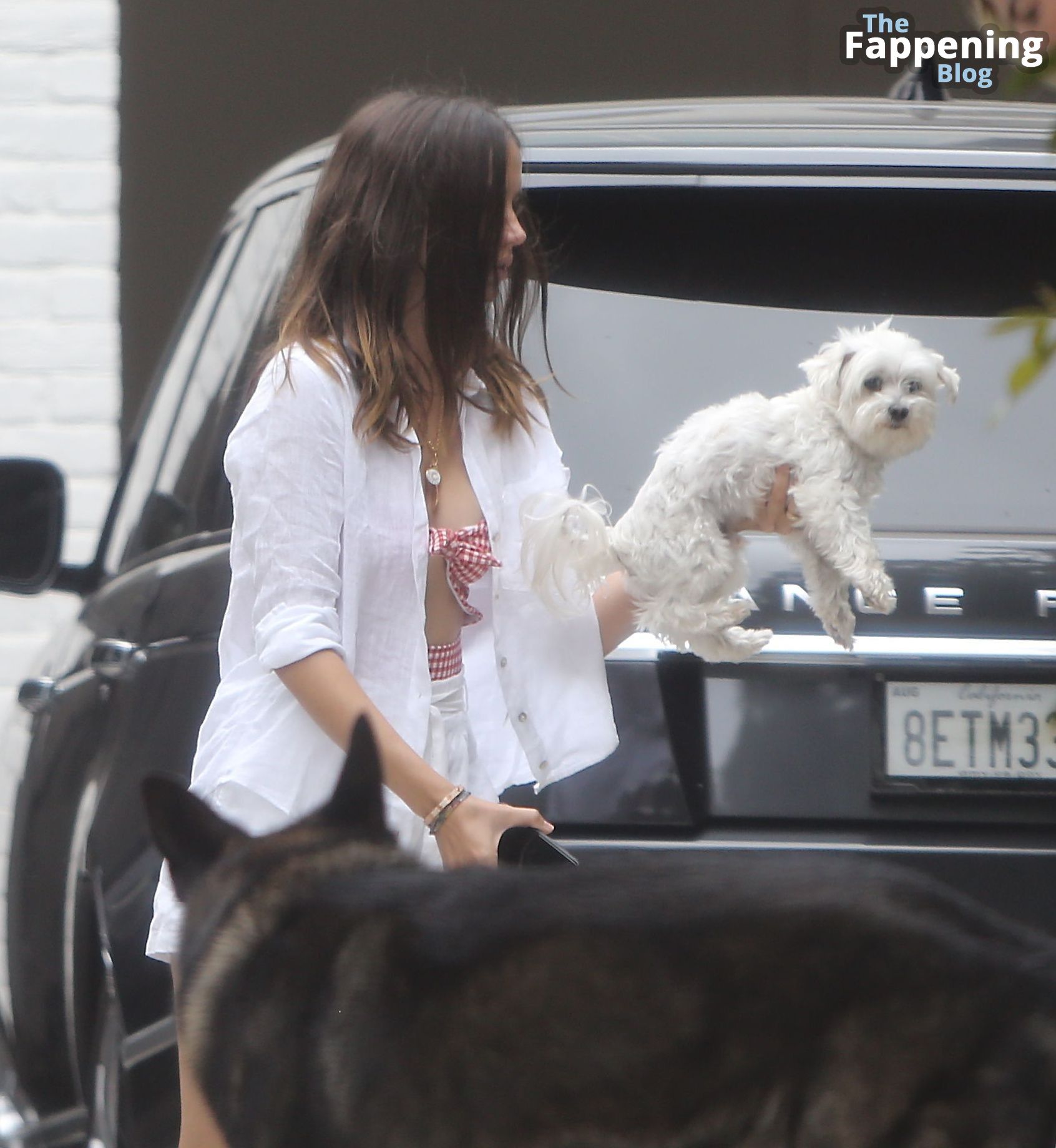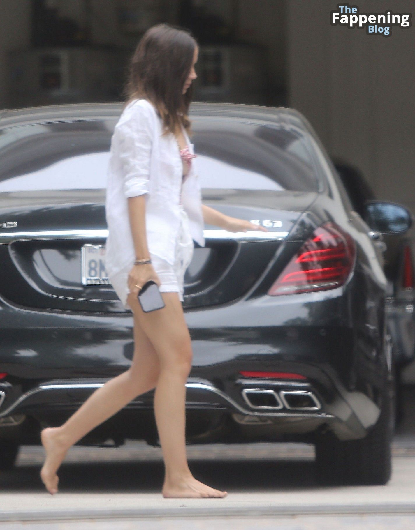 Podemos dar uma espiada em algumas fotos de Ana de Armas em LA. Ela está usando shorts brancos como a neve e uma camisa aberta, mostrando parte de seu biquíni retrô em padrão xadrez vermelho. E confira aqueles pés nus e sexy!