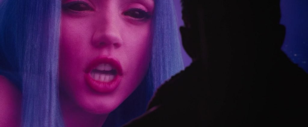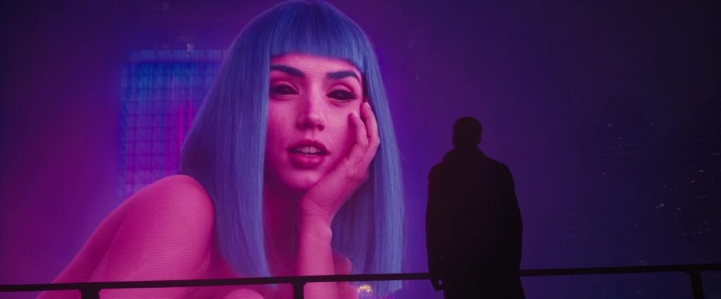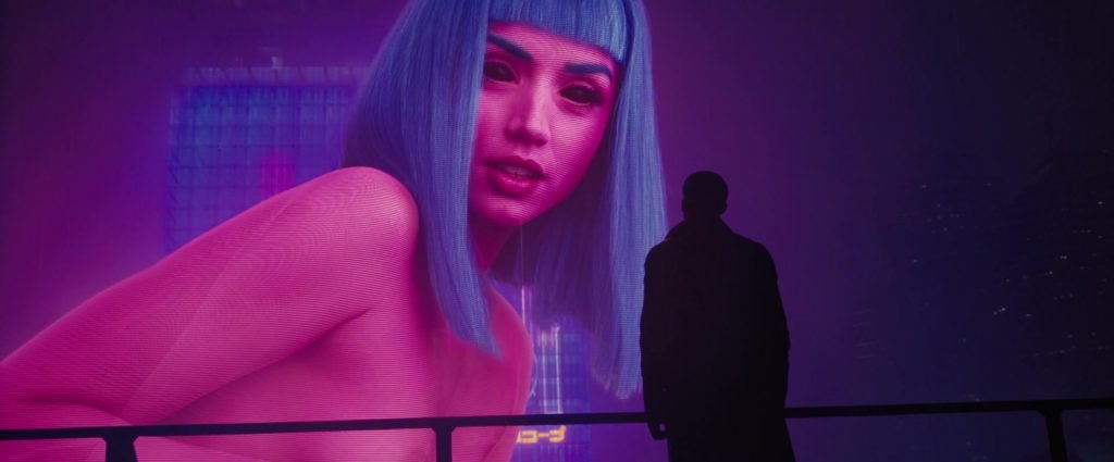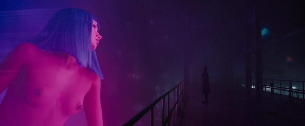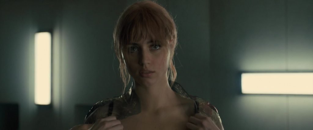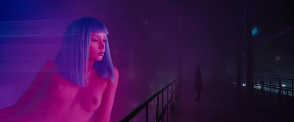 Confira capturas de tela e assista ao vídeo completo com as famosas Ana de Armas (como Joi), Sallie Harmsen (como Replicante Feminina), Mackenzie Davis (como Mariette), Krista Kosonen (como Doxie #2), Elarica Johnson Gallagher (como Doxie #3) de “Blade Runner 2049” (2017).