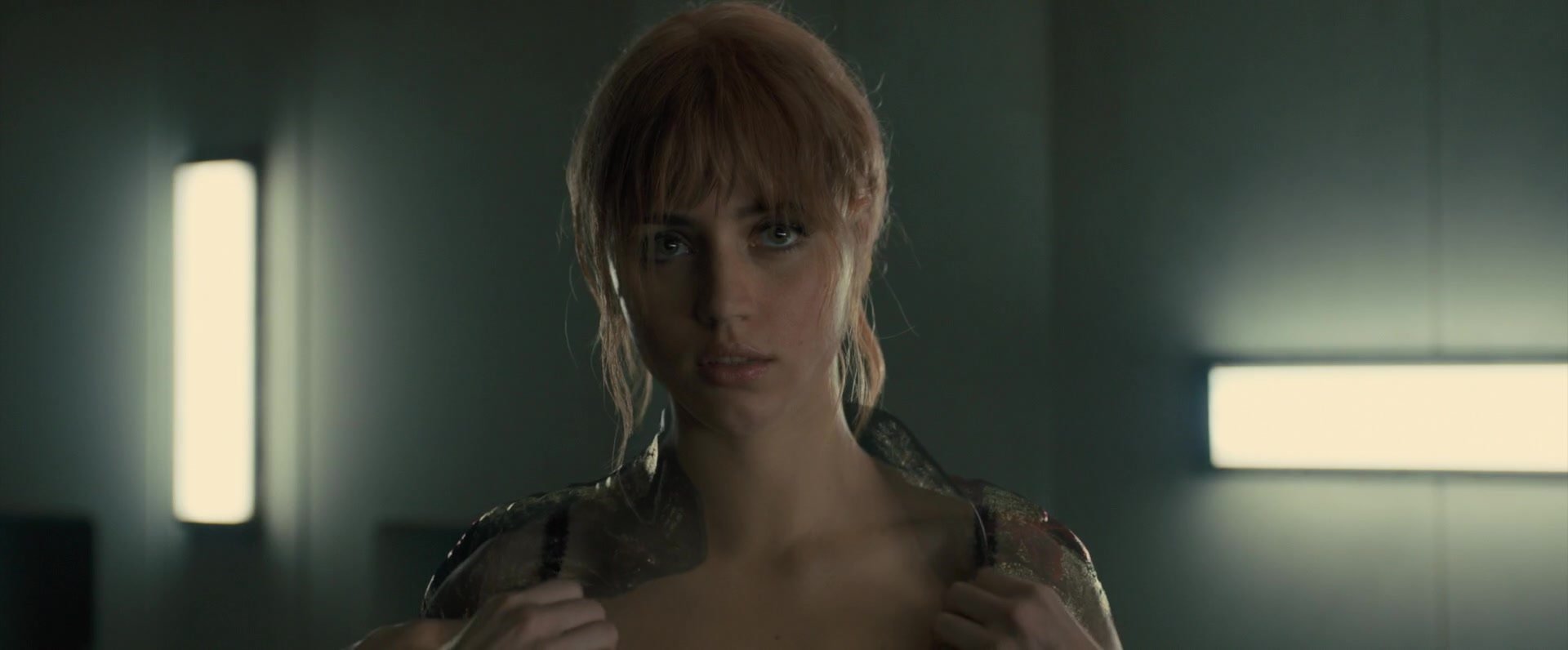 Confira capturas de tela e assista ao vídeo completo com as famosas Ana de Armas (como Joi), Sallie Harmsen (como Replicante Feminina), Mackenzie Davis (como Mariette), Krista Kosonen (como Doxie #2), Elarica Johnson Gallagher (como Doxie #3) de “Blade Runner 2049” (2017).