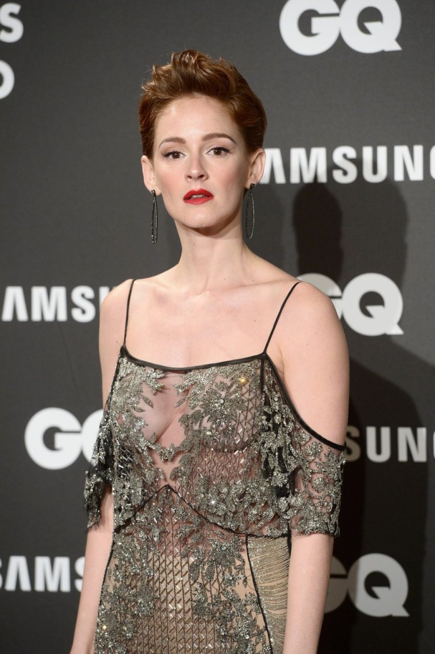 Ana Polvorosa sem sutiã comparece ao Prêmio GQ Homem do Ano 2018 no Palace Hotel em Madrid, Espanha, 22/11/2018. Ana María Ruiz Polvorosa (também conhecida como Ana Mª Ruiz) é uma atriz espanhola de 30 anos. Ela é bem conhecida por interpretar Lorena Garcia na série “Aída” e, atualmente, como Sara Millán na série original da Netflix “Las chicas del cable”.