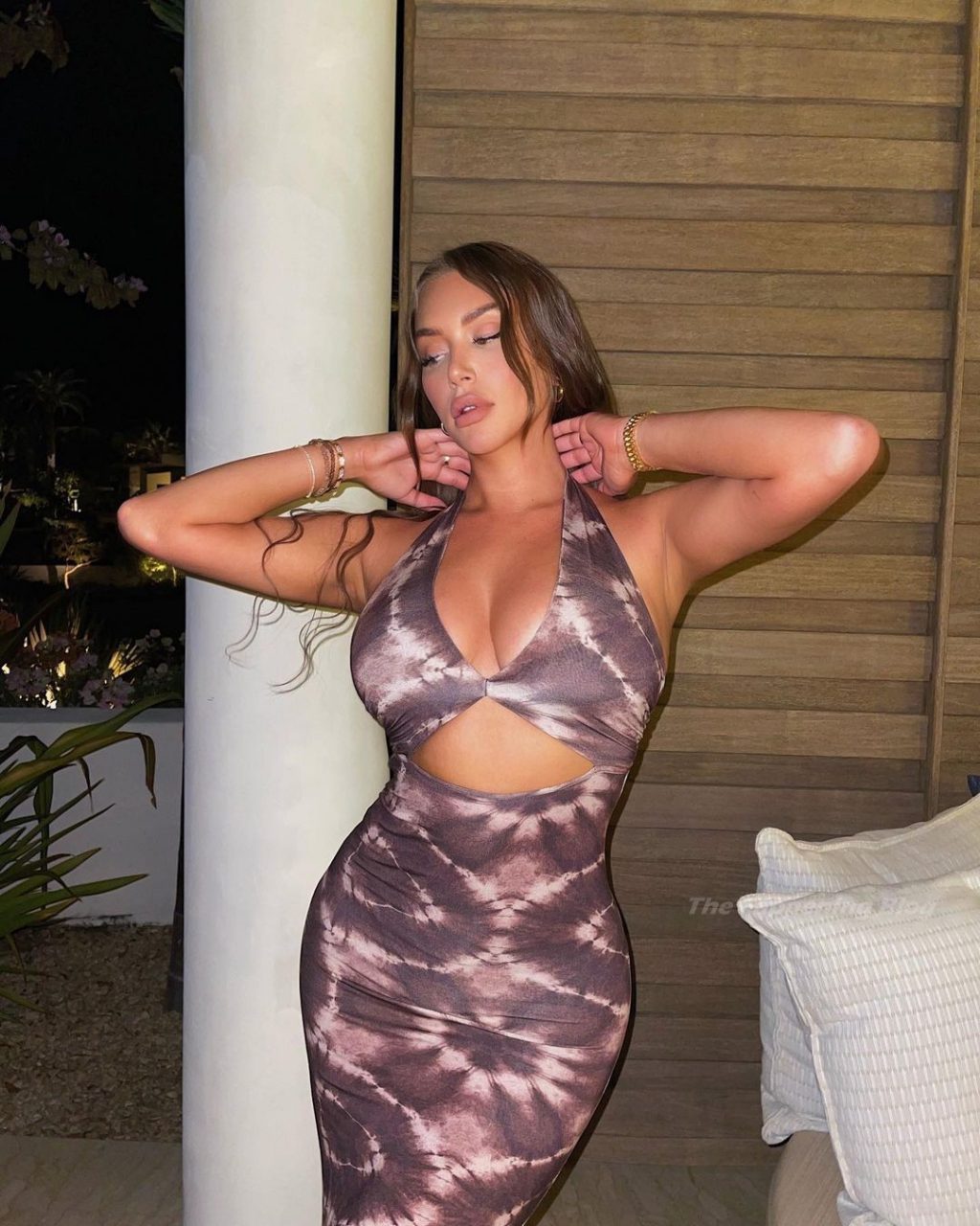 Confira as fotos sensuais de Anastasia Karanikolaou no Instagram, 11/03/2021. Stassie Baby está com curvas, mostrando decote em um vestido justo, posando para seus 10,2M de fãs.