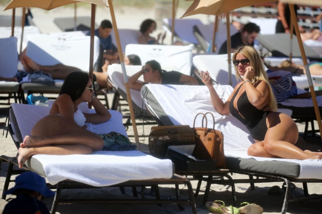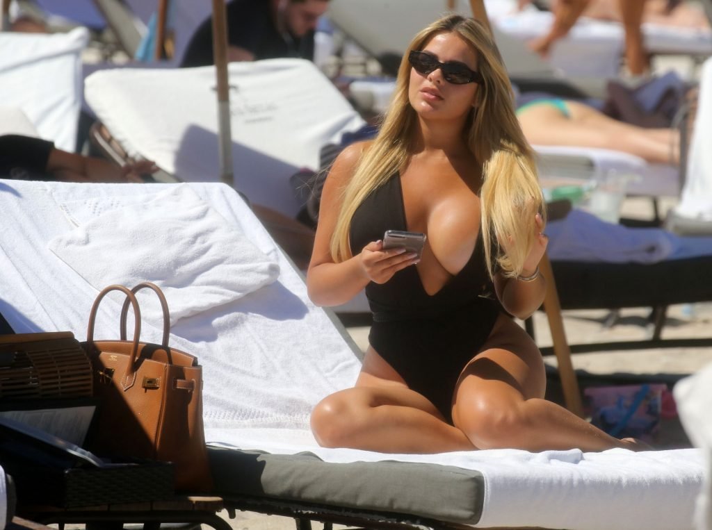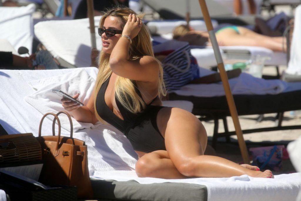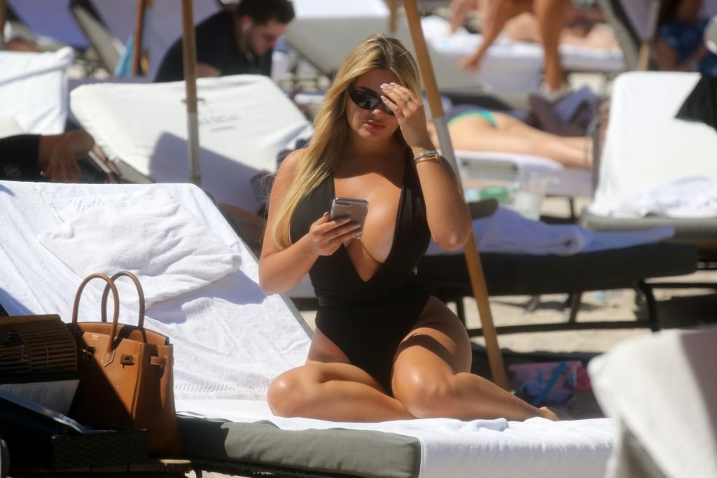 Russian Kim Kardashian, como ela é chamada, a modelo Anastasia Kvitko (23) usou um maiô preto fio dental que mostrava suas famosas curvas e cintura fina na praia do hotel The Setai em Miami Beach, Flórida, 16/03/2018. Todos sabemos o que vai acontecer com ela depois de 10 anos.