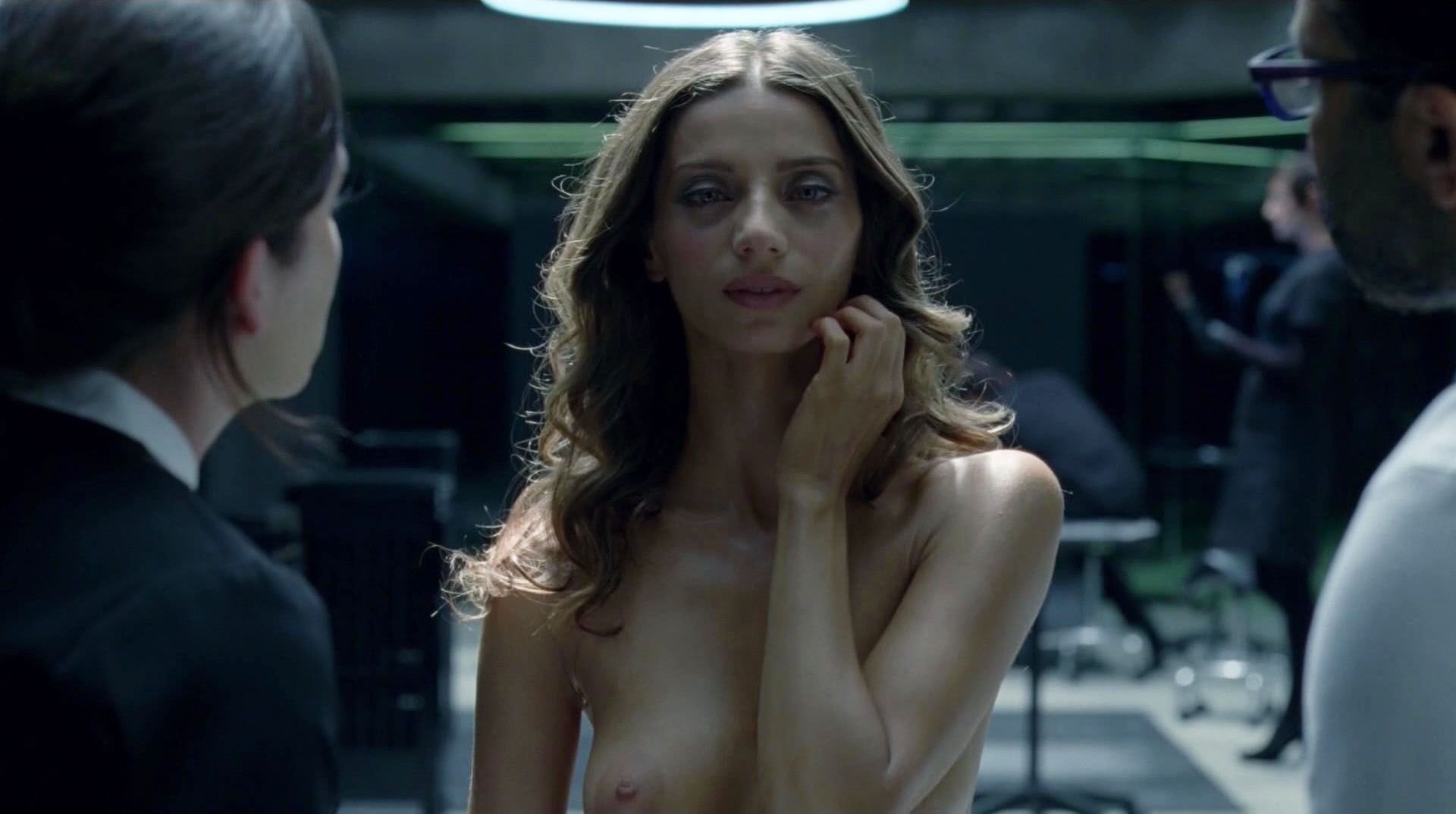 Novas capturas de tela e clipe com Angela Sarafyan (como Clementine) de Westworld (2016) s01e01. Uma Clementine topless senta-se em uma sala, esfregando os lábios, eventualmente compartilhando um beijo sáfico com Elsie (Shannon Woodward)! Angela Sarafyan, também conhecida como Angela Sarafian, é uma atriz armênio-americana (The Twilight Saga: Breaking Dawn – Part 2). Nascida em: 30 de junho de 1983.