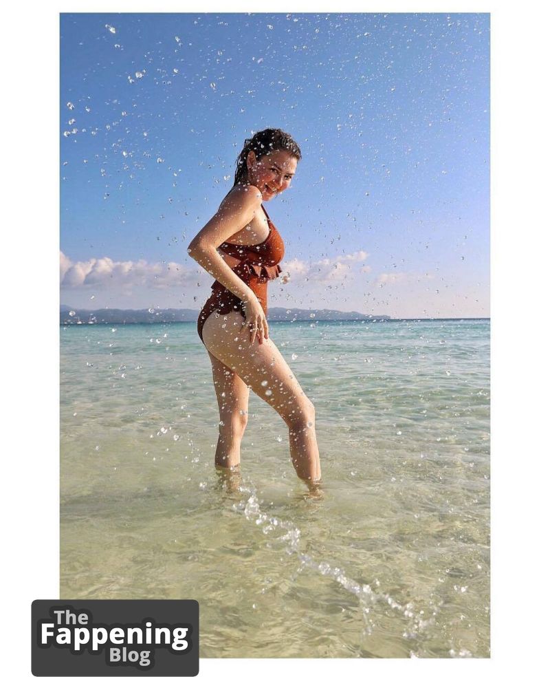 A coleção de Angelica Panganiban apresenta algumas fotos ousadas e sedutoras. Ela exibe seus seios parcialmente expostos, seu busto volumoso sem sutiã e suas curvas atraentes. Você também encontrará imagens destacando suas costas atraentes.