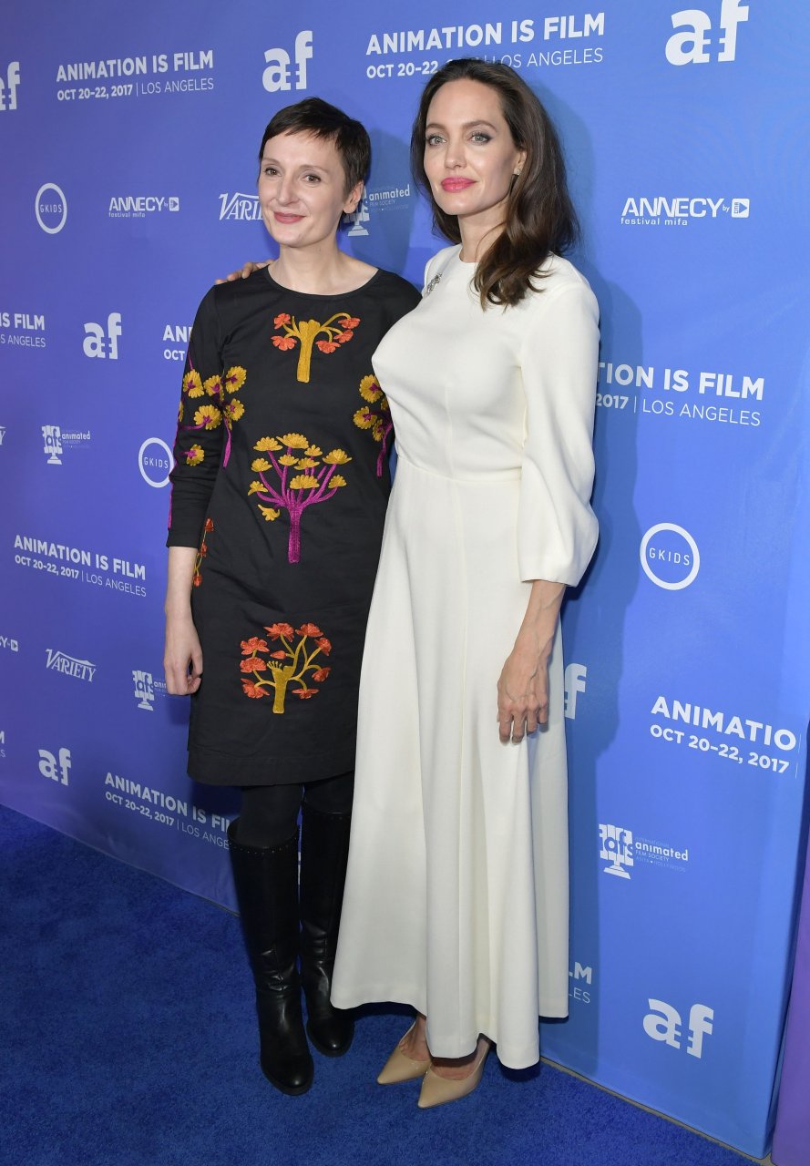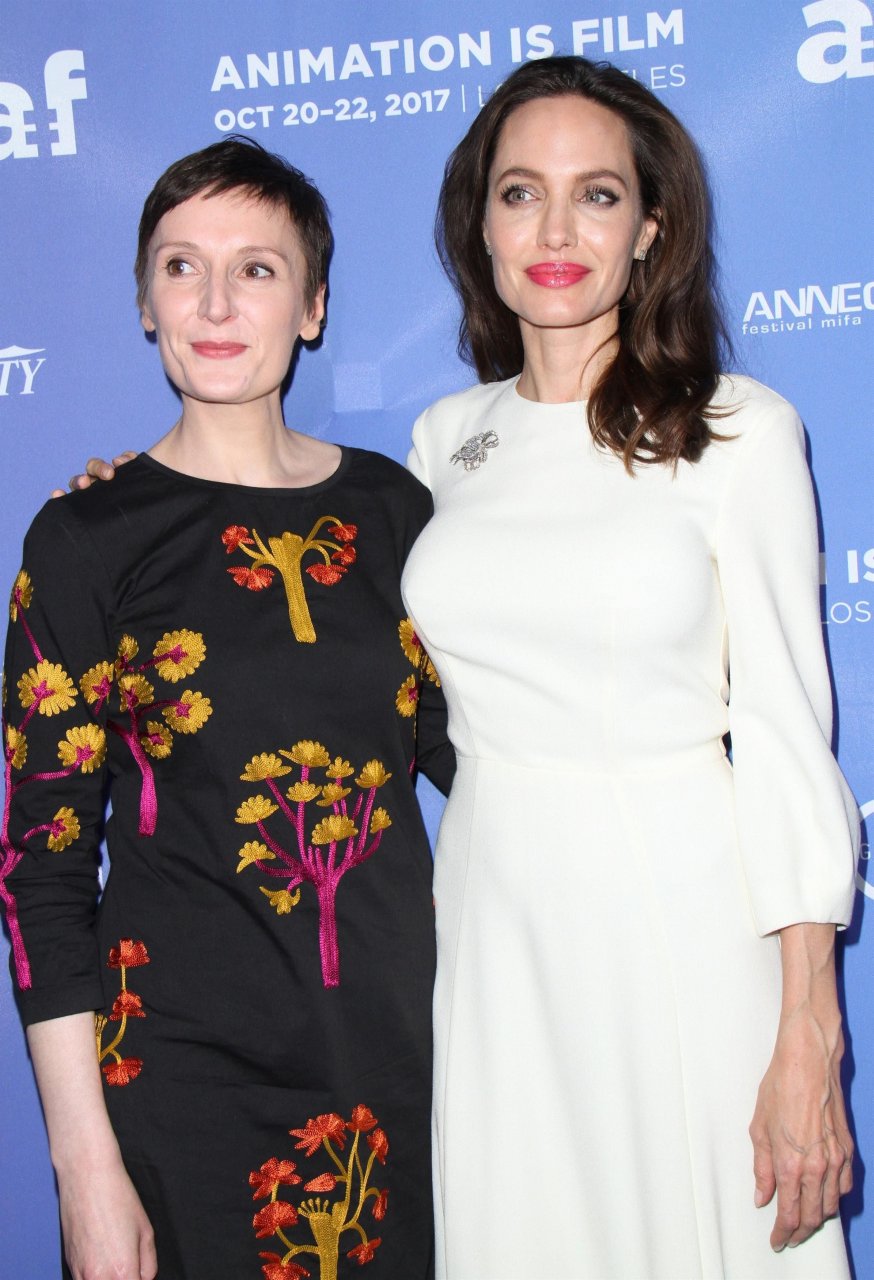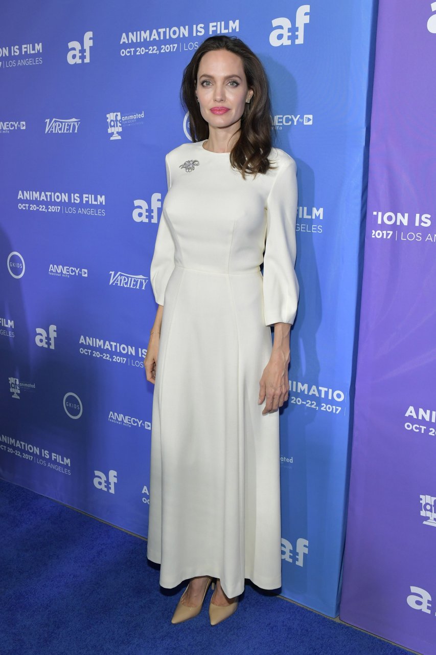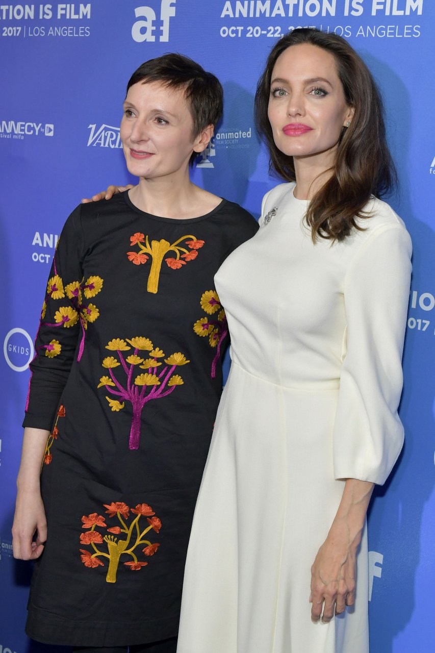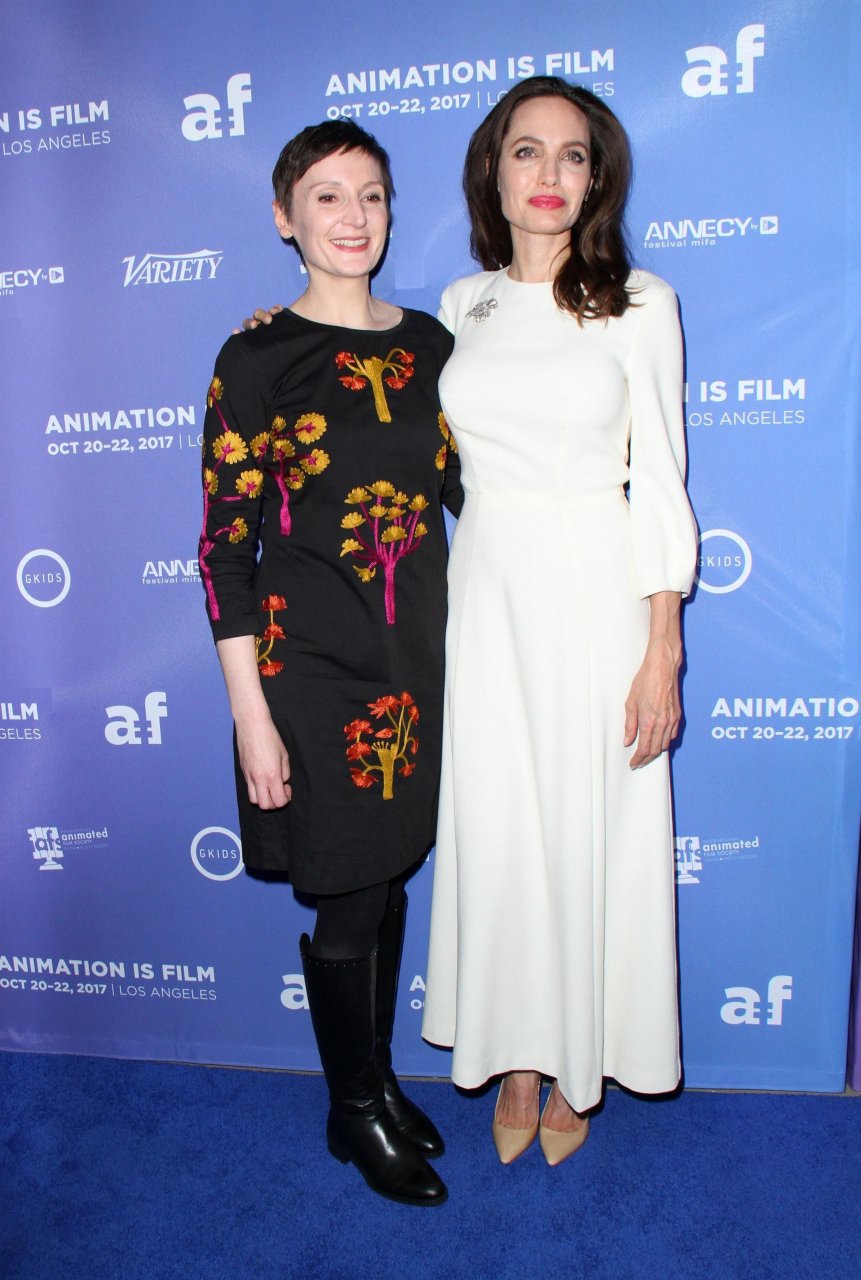 Busty Angelina Jolie participa da estreia de The Breadwinner em Los Angeles, 20/10/2017. Angelina Jolie é uma atriz americana (Original Sin (2001)). Idade – 42 anos.