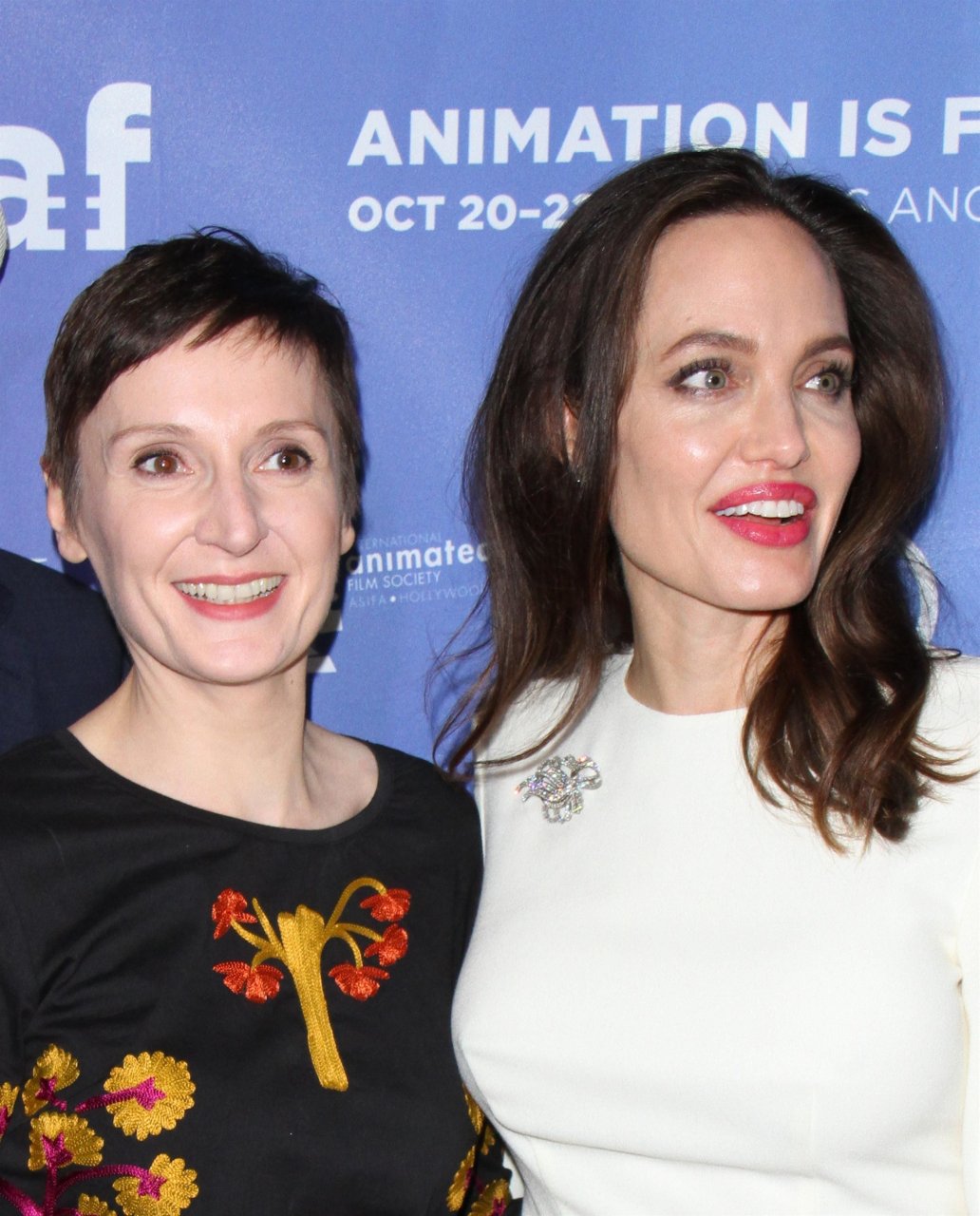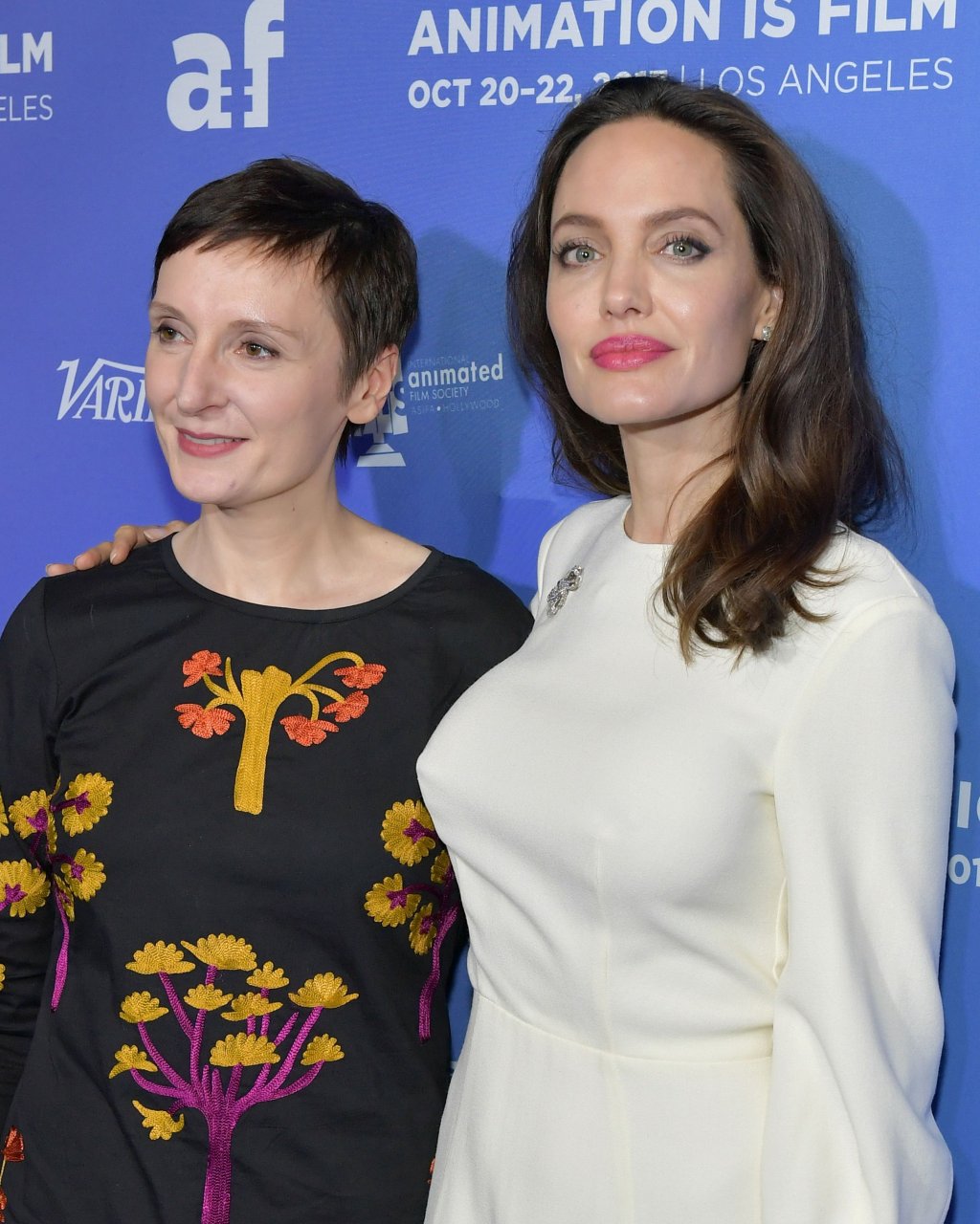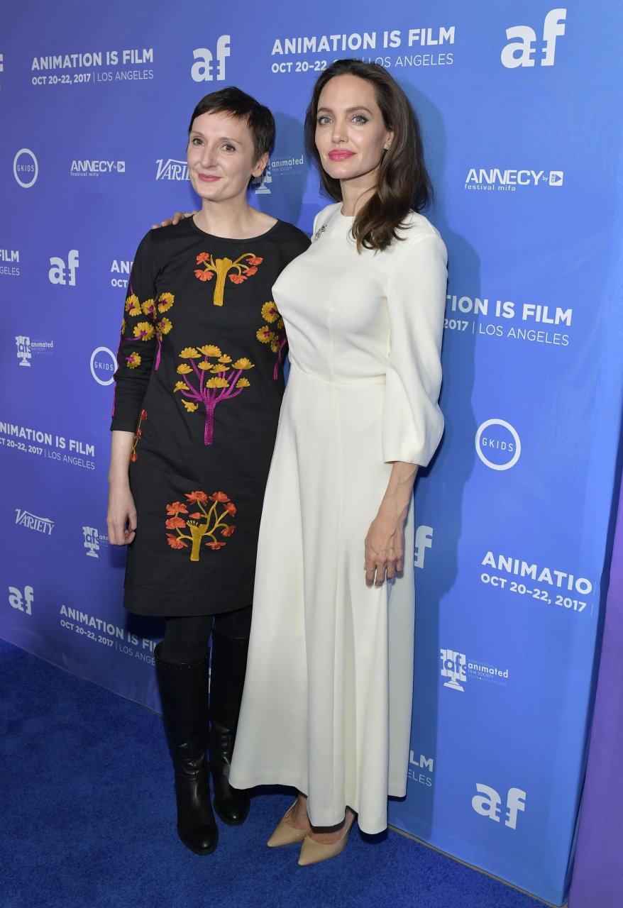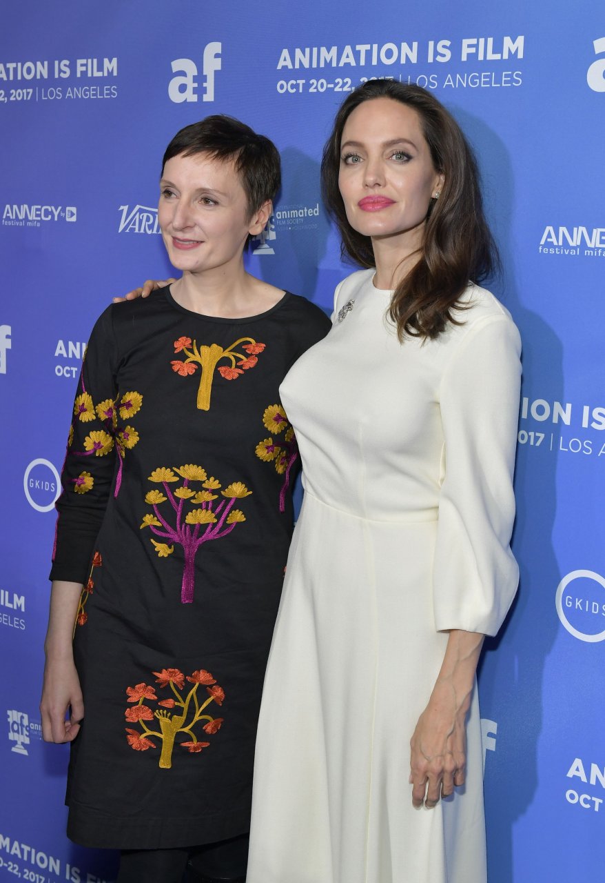 Busty Angelina Jolie participa da estreia de The Breadwinner em Los Angeles, 20/10/2017. Angelina Jolie é uma atriz americana (Original Sin (2001)). Idade – 42 anos.