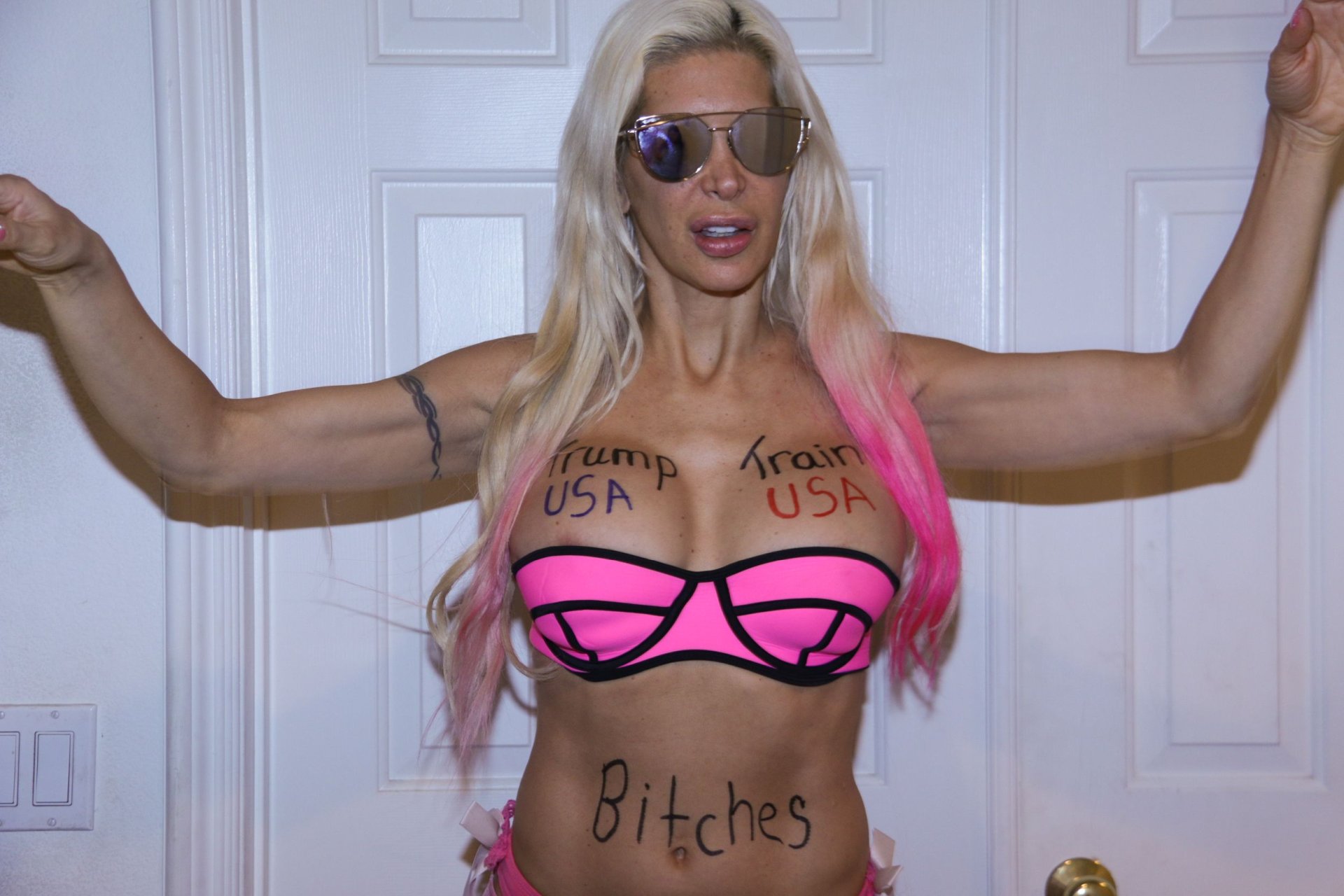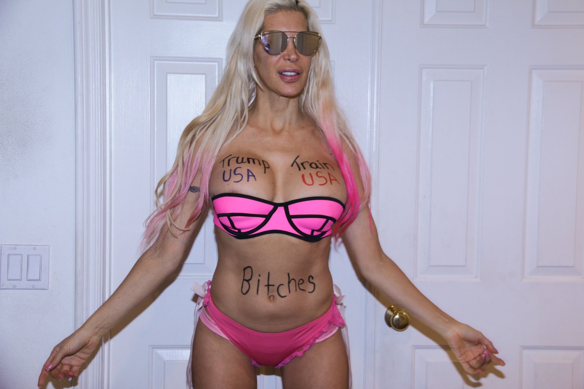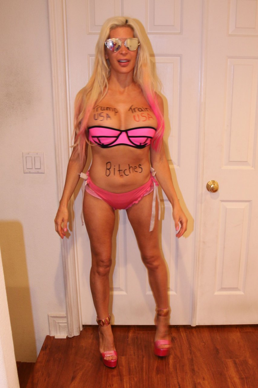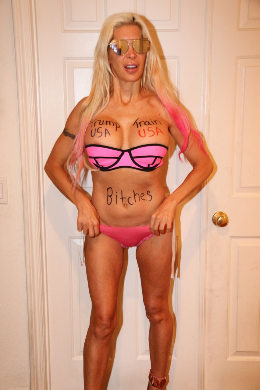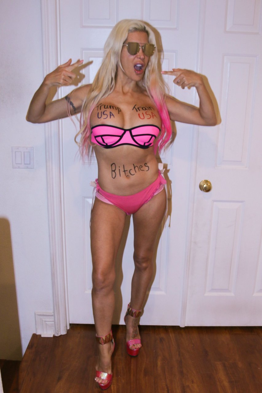 que vadia feia e estúpida com peitos falsos duros como pedras e um maxilar quadrado e masculino... agora essa coisa realmente parece um traveco... foda-se tRump...