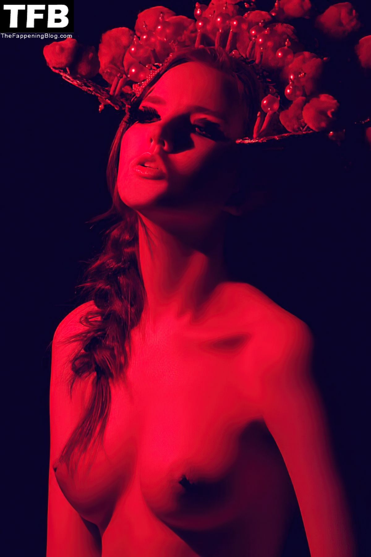 A modelo finlandesa Ann-Marie Ainikkamaki mostra seus seios nus em um ensaio fotográfico para Blue Phoenix (2012).