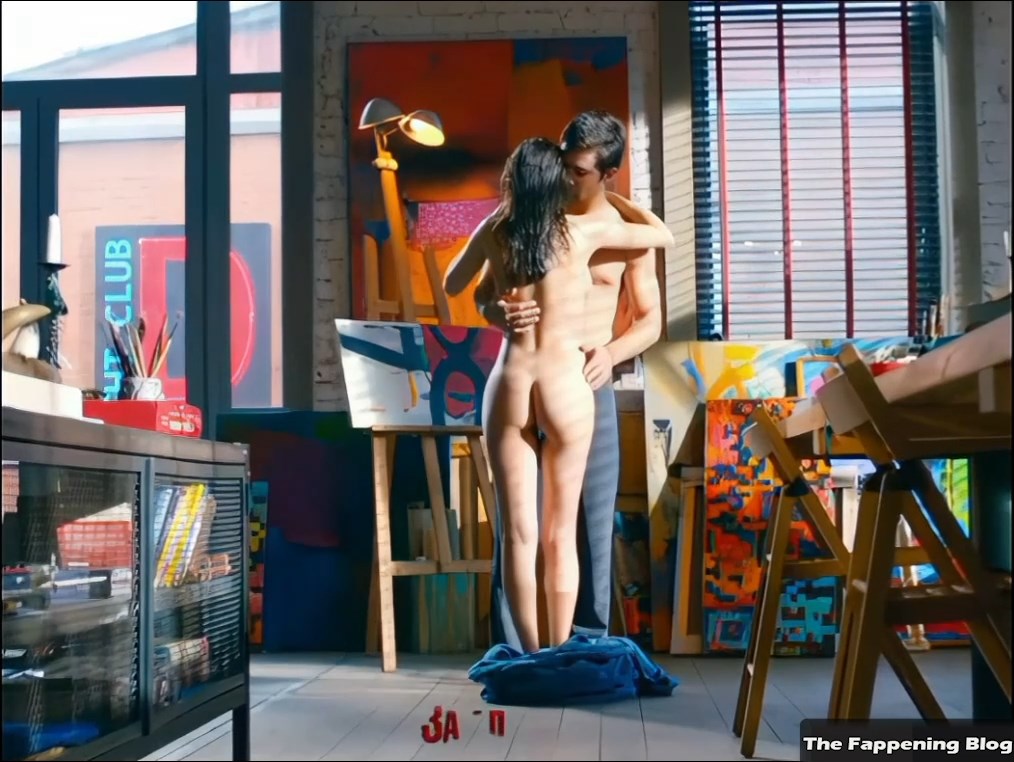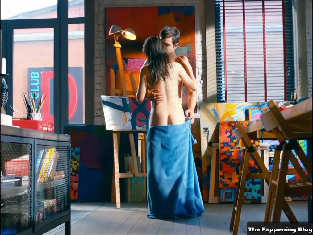 Anna Chipovskaya entra em uma sala vestindo apenas uma toalha azul enrolada no corpo, com o cabelo molhado enquanto olha uma pintura com um rapaz. Anna mostra o decote enquanto se senta e o rapaz a ajuda a pintar em um cavalete enquanto a beija. Depois de um tempo, ela se levanta e o rapaz abaixa sua toalha, revelando seu bumbum nu enquanto ela está nua se beijando com ele.