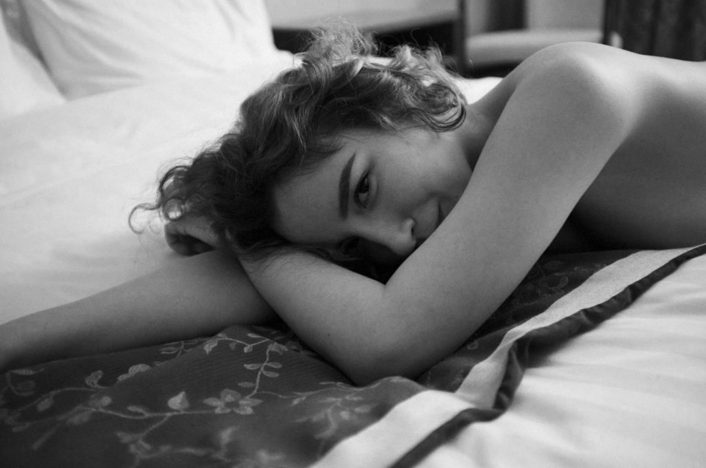 Modelo russa amadora e voluptuosa Anna Gotina posa nua em um ensaio fotográfico em preto e branco por Denis Nikolenko (2019).