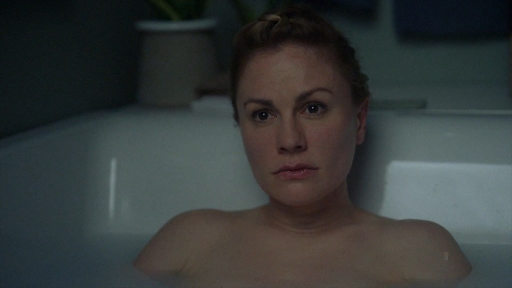 Assista ao novo vídeo nu de Anna Paquin de The Affair (2019) Temporada 5 Episódio 1 (s05e01), onde você pode vê-la topless. Os seios de Anna ficam visíveis logo acima e logo abaixo da linha da água enquanto ela está sentada em uma banheira conversando com um homem negro!