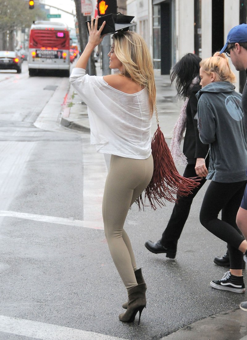 AnnaLynne McCord sem sutiã com uma blusa branca e leggings fazendo compras na Barneys New York em Beverly Hills, 17/02/16. Estilo casual agradável! AnnaLynne McCord é uma atriz americana, conhecida por “O Transportador II”, “Greek” (TV) e “The O.C.” (TV). Idade 28 (16 de julho de 1987).