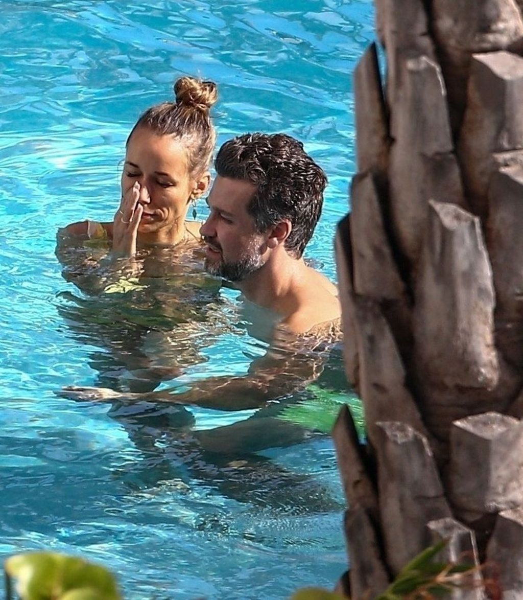 Wayne Carpendale aproveita suas férias à beira da piscina com sua família, incluindo sua esposa Annemarie Carpendale e seu filho Mads, 01/04/2020. O trio parece estar aproveitando as férias enquanto relaxam juntos ao sol.