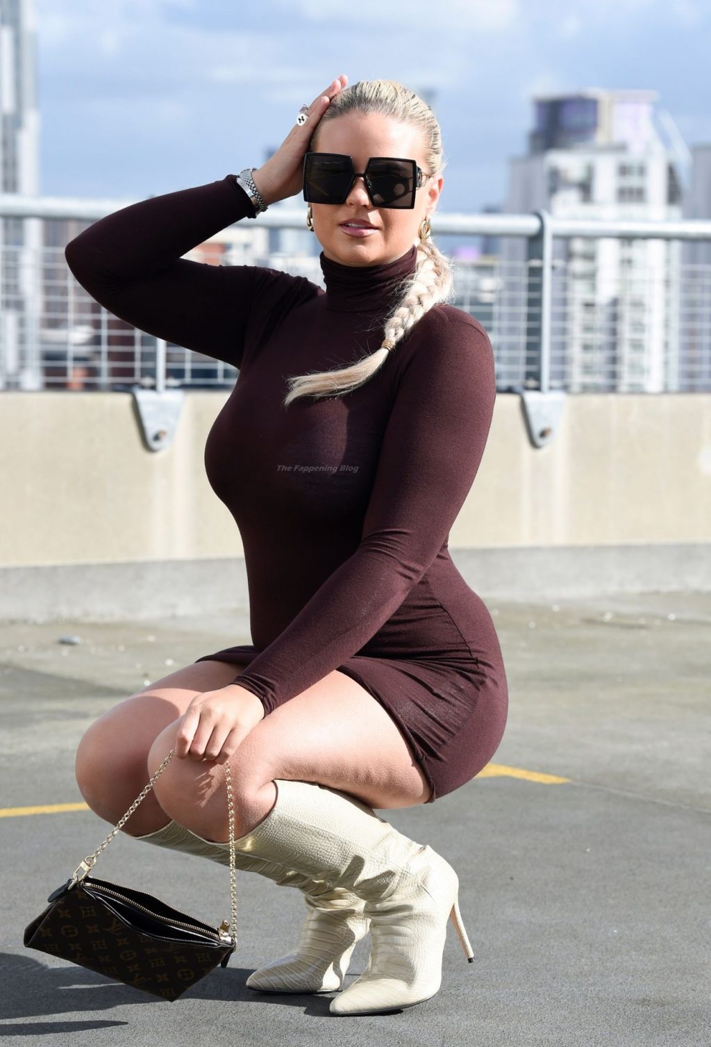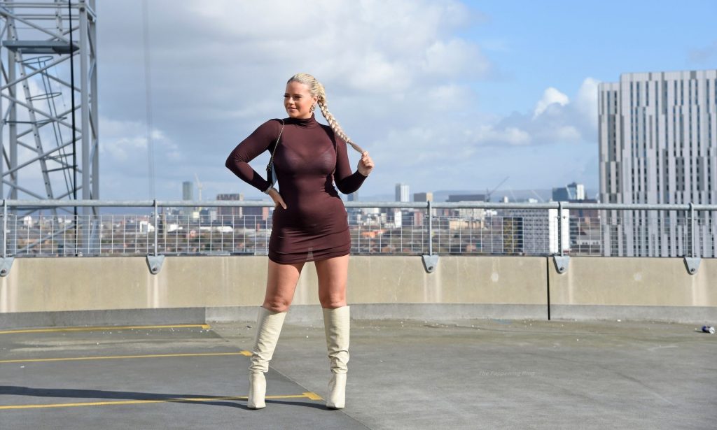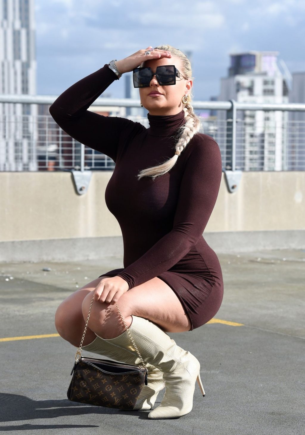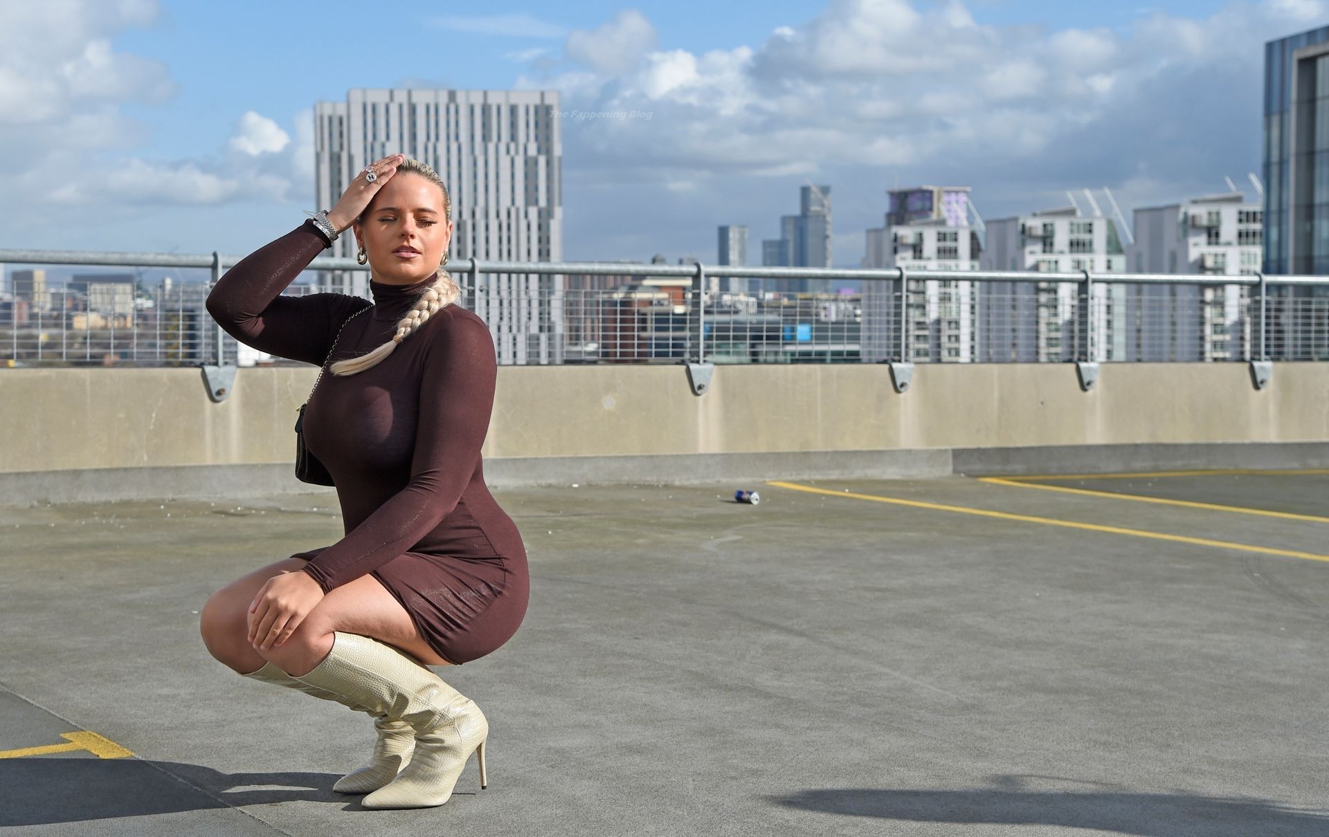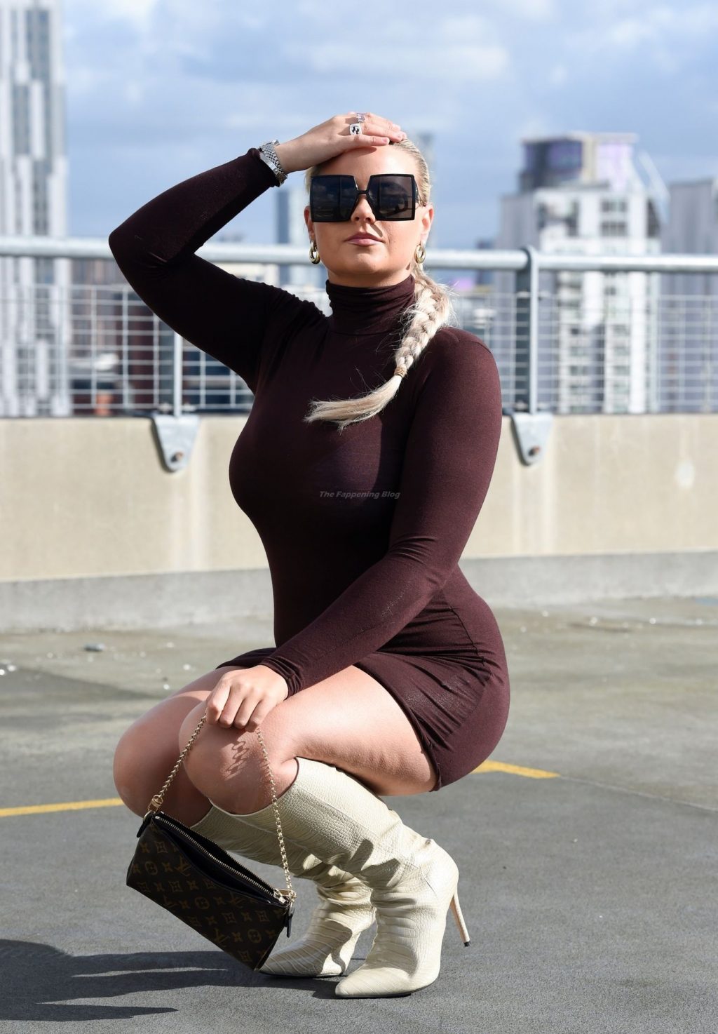 Modelo, influenciadora e estrela diária da Página 3, Apollonia Llewellyn é vista fazendo fotos para uma marca de moda em Manchester, 03/04/2021.