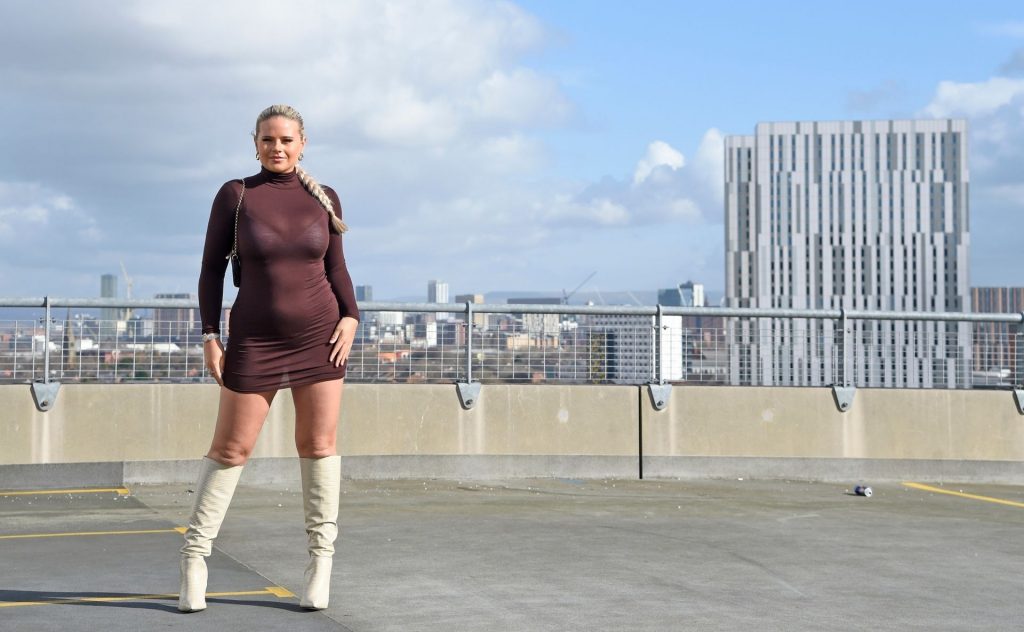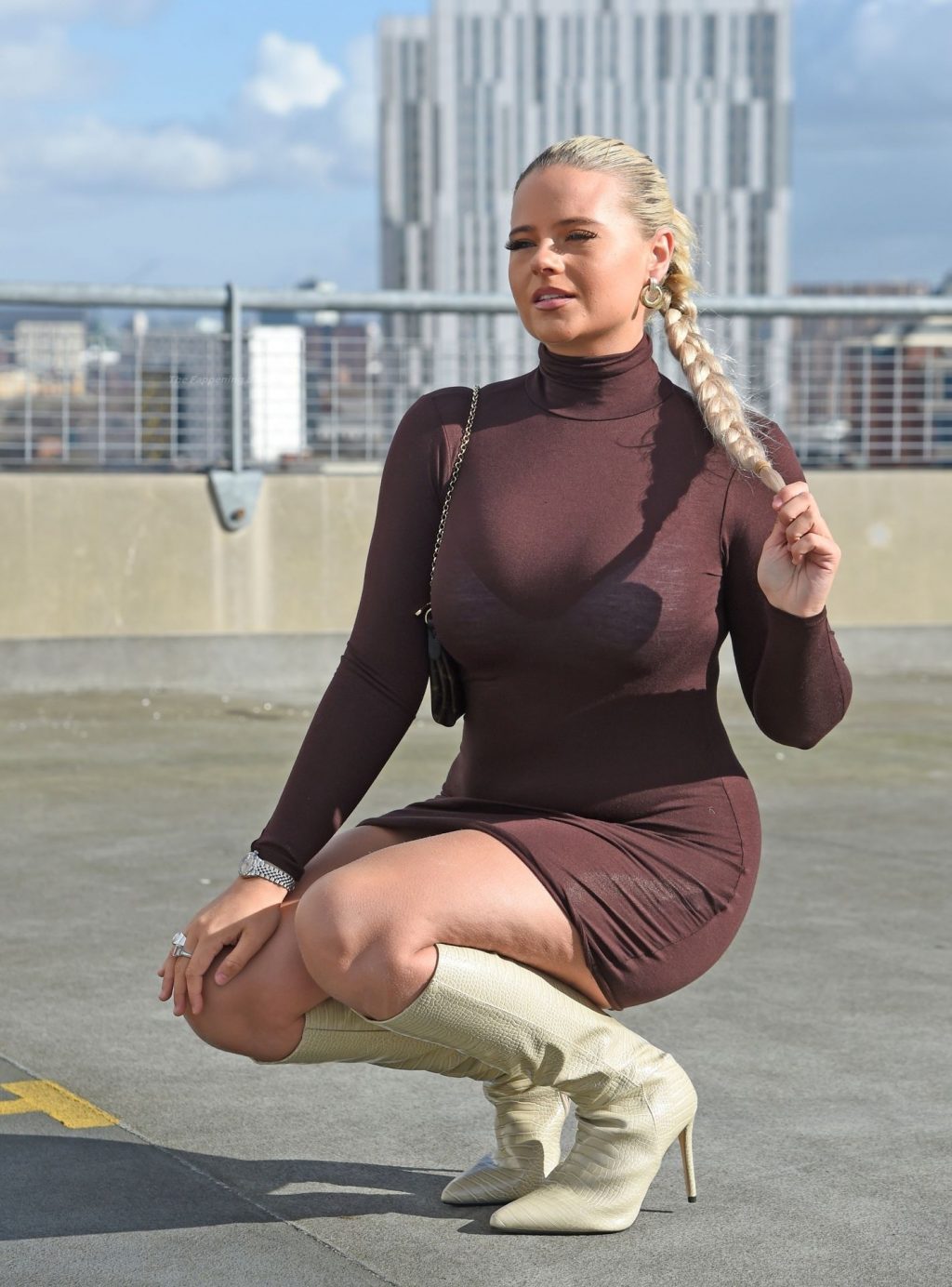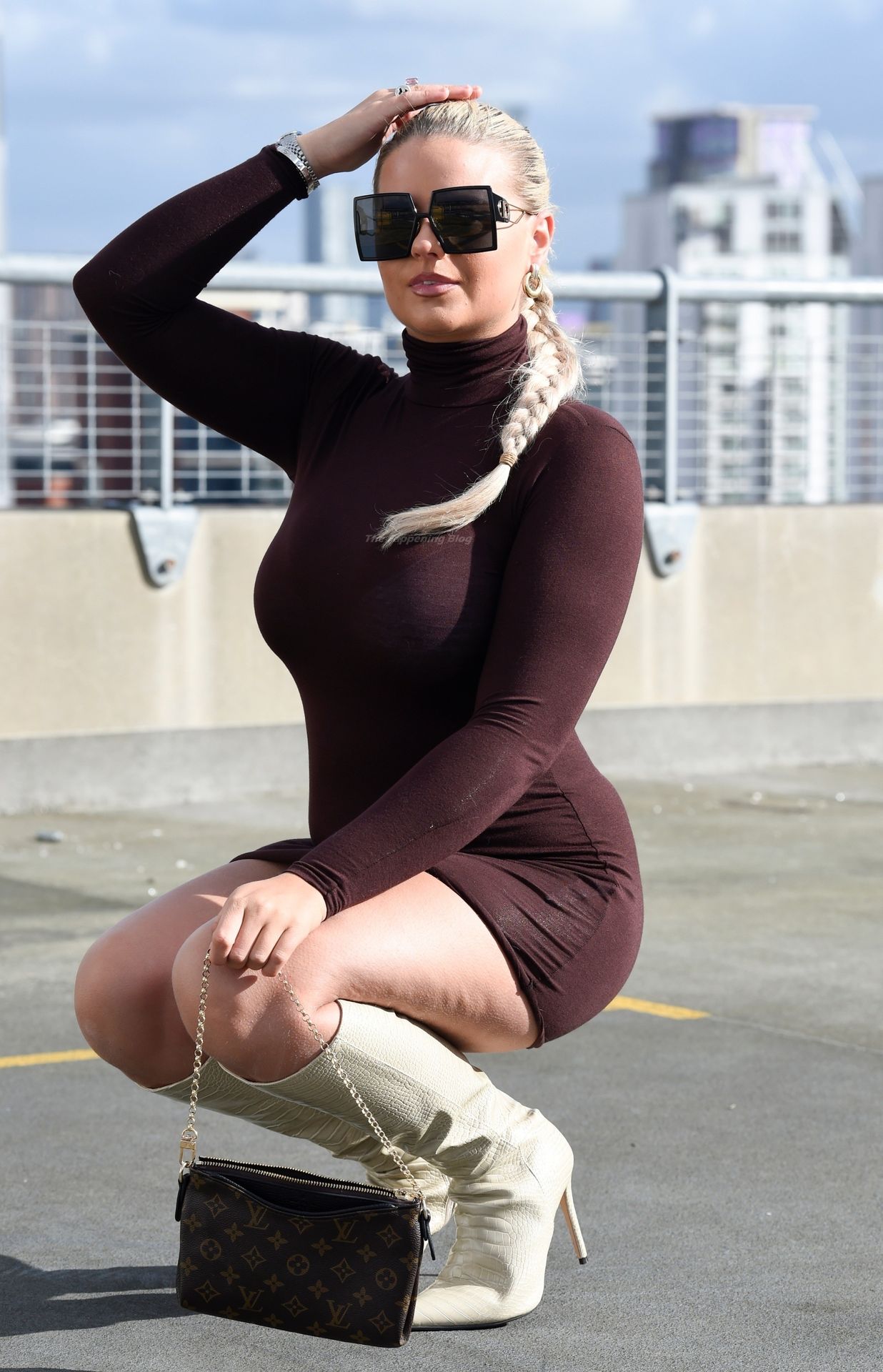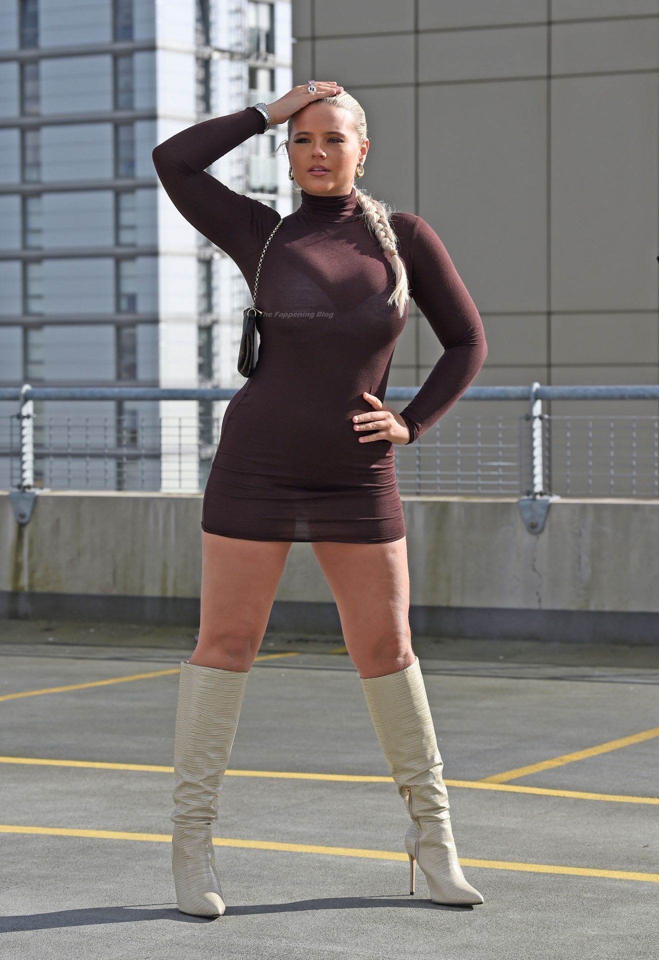 Modelo, influenciadora e estrela diária da Página 3, Apollonia Llewellyn é vista fazendo fotos para uma marca de moda em Manchester, 03/04/2021.