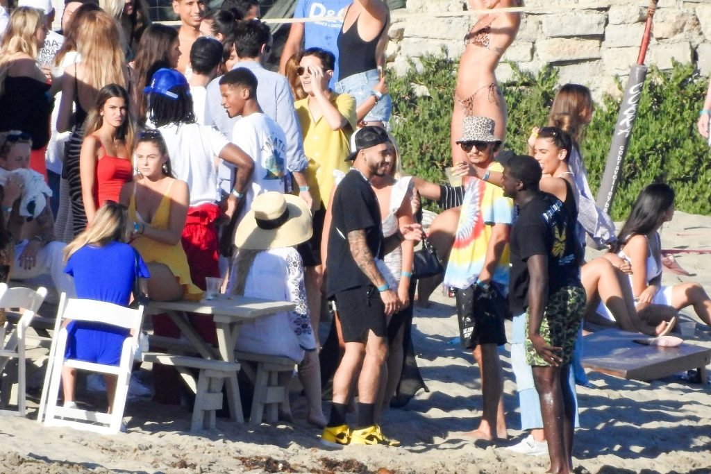 Jamie Foxx aproveita sua separação de Katie Holmes enquanto chega a uma festa na praia em uma casa em Malibu. Ele pode ser visto conversando com os convidados e brincando com seus amigos e familiares.