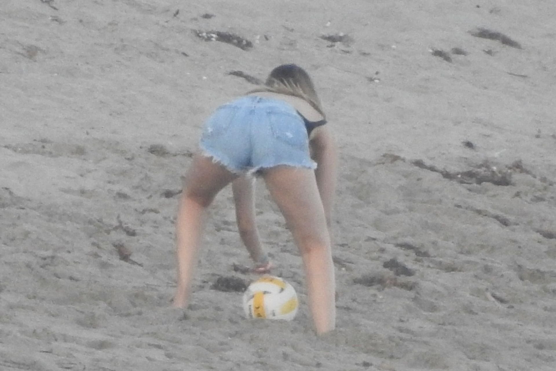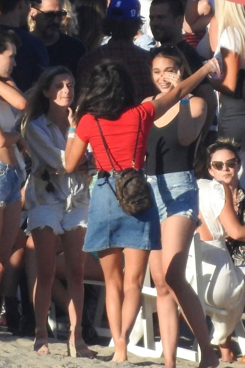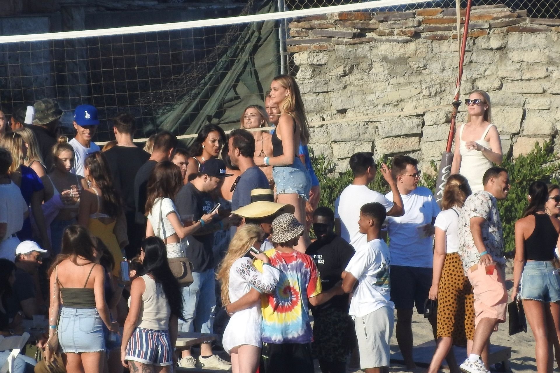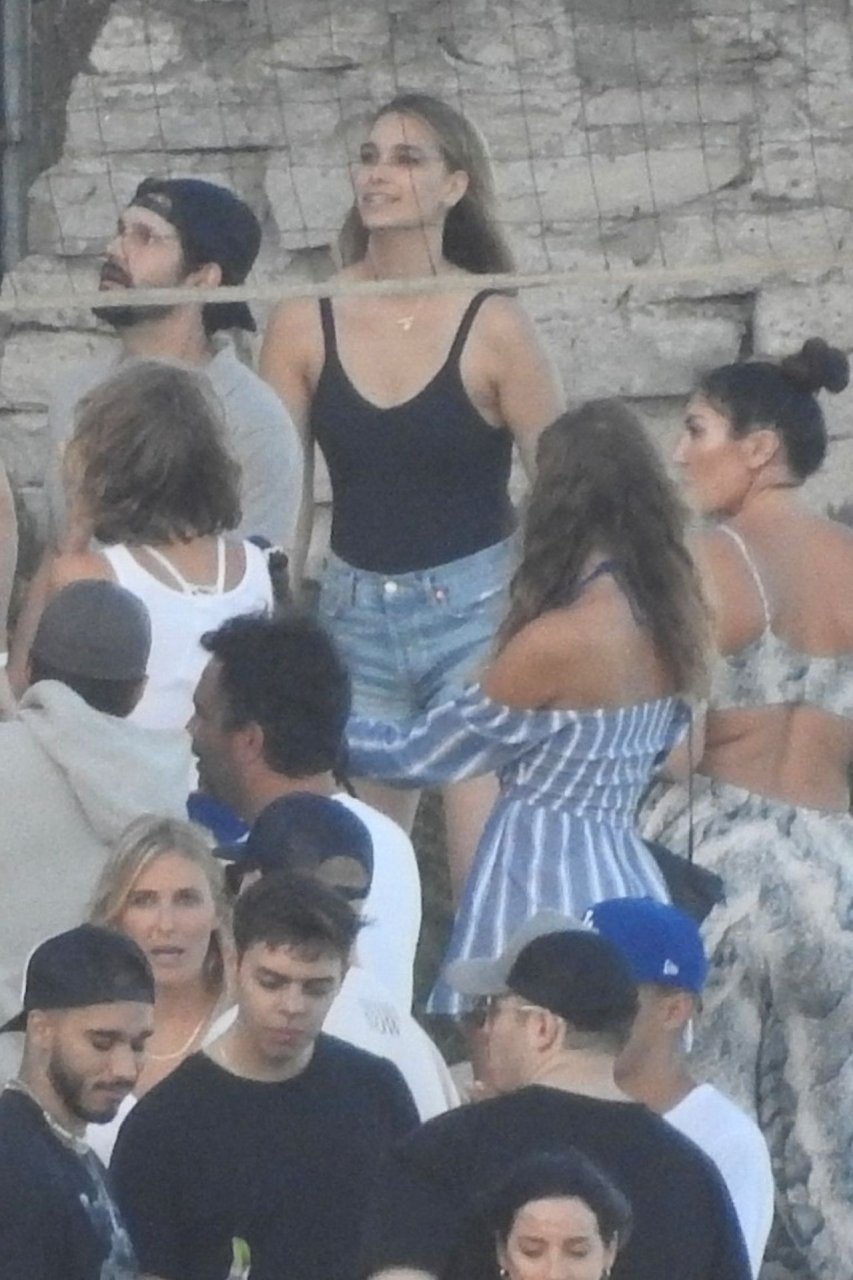 April Love Geary participa de uma festa na praia em Malibu onde Jamie Foxx e Sean Penn também são convidados, 25/08/2019. A modelo chegou com algumas amigas e foi vista aproveitando uma bebida gelada na praia.
