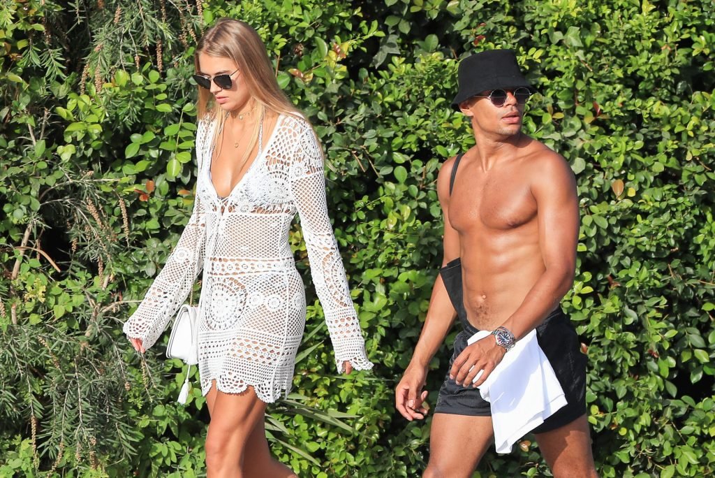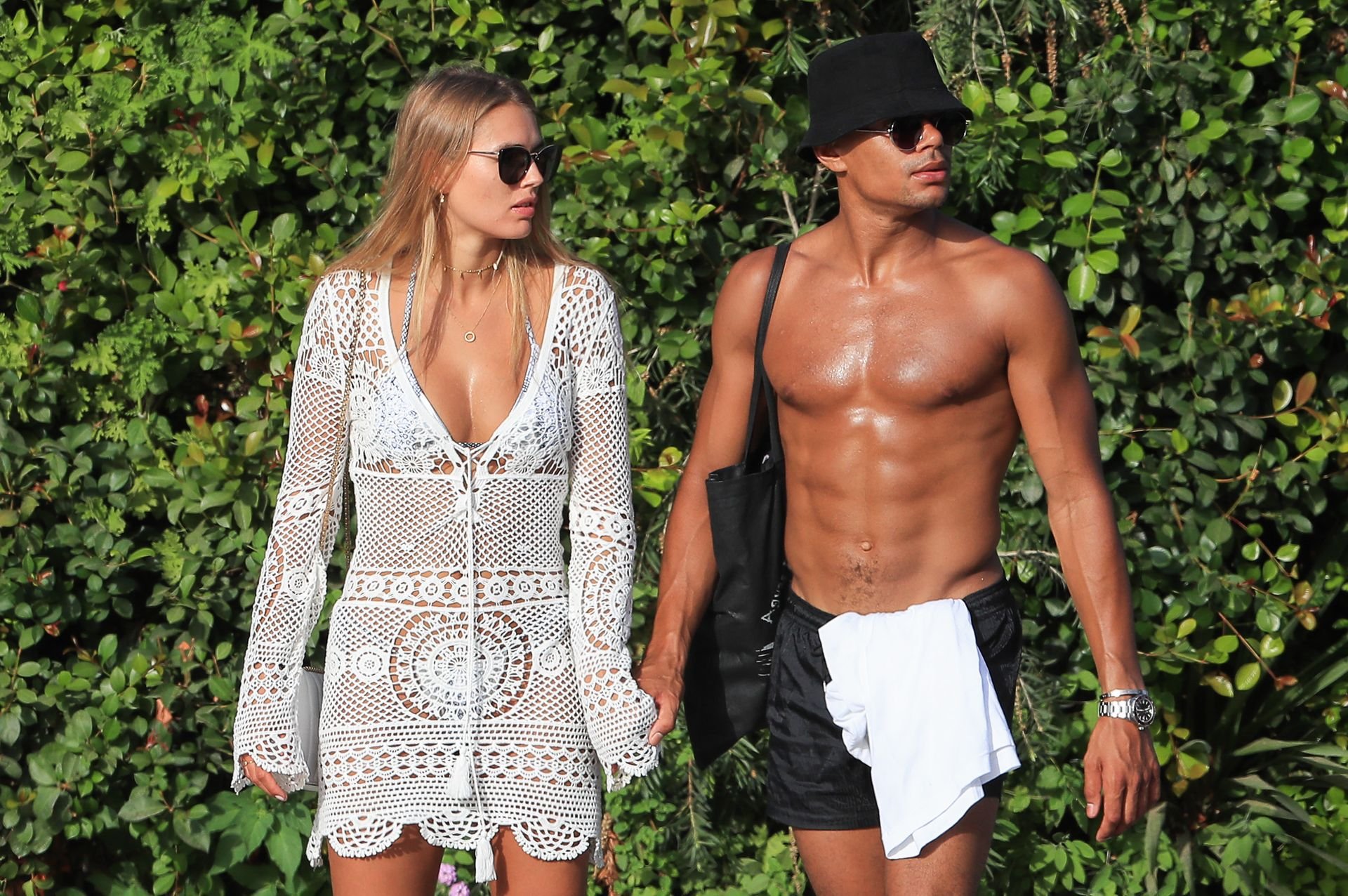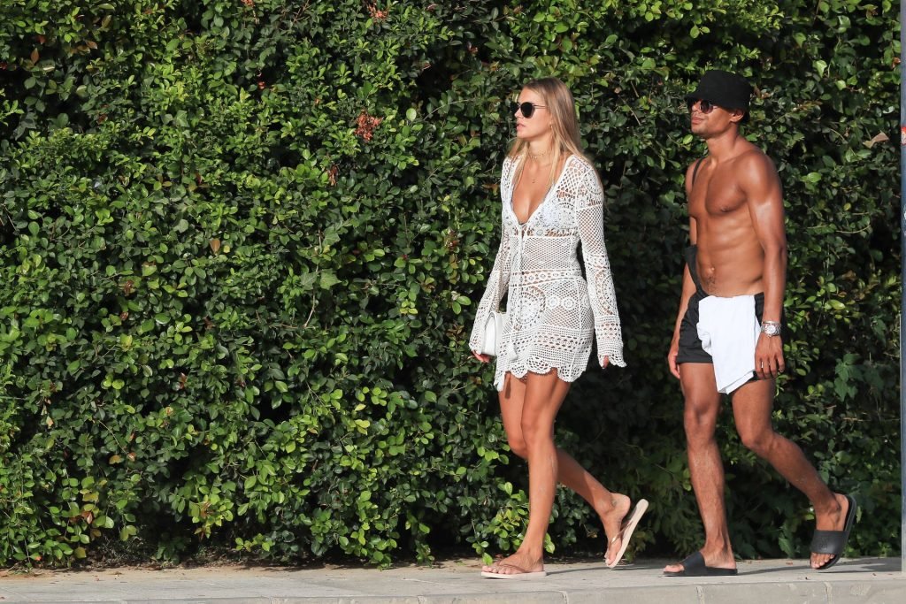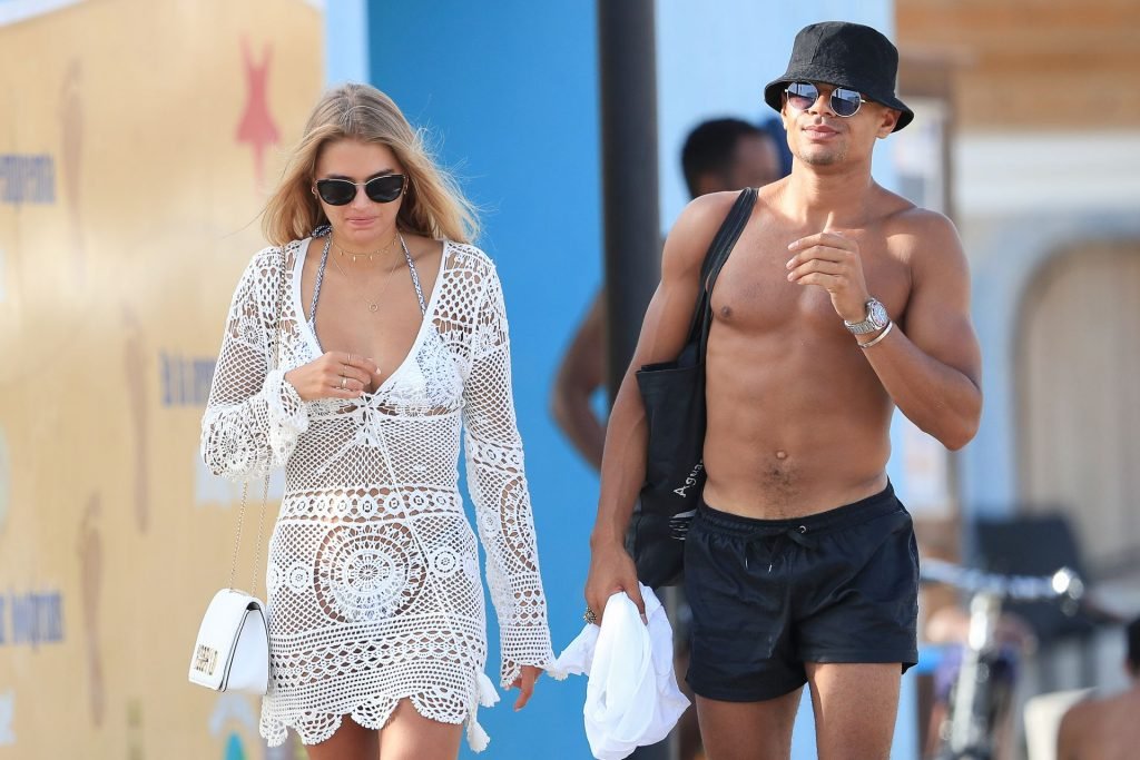 Love Island’s Arabella Chi e Wes Nelson foram vistos de mãos dadas enquanto aproveitavam um dia juntos na praia em Ibiza, 11/08/2019.
