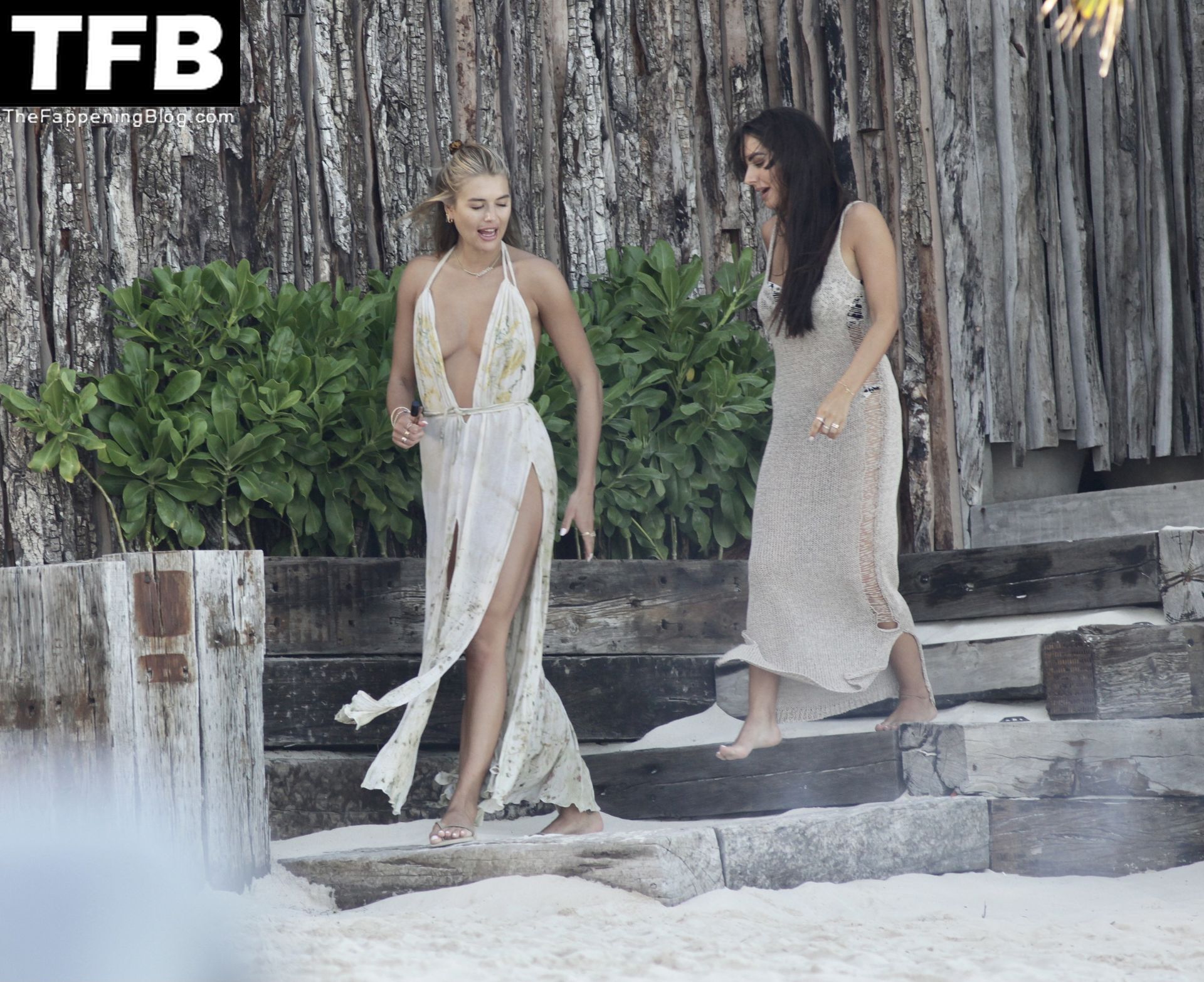 Reality TV star Arabella Chi é vista com sua amiga na praia em Tulum, México, 17/02/2022.