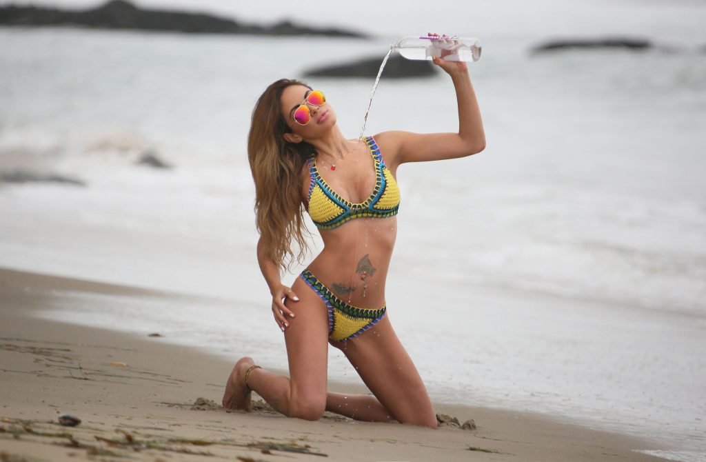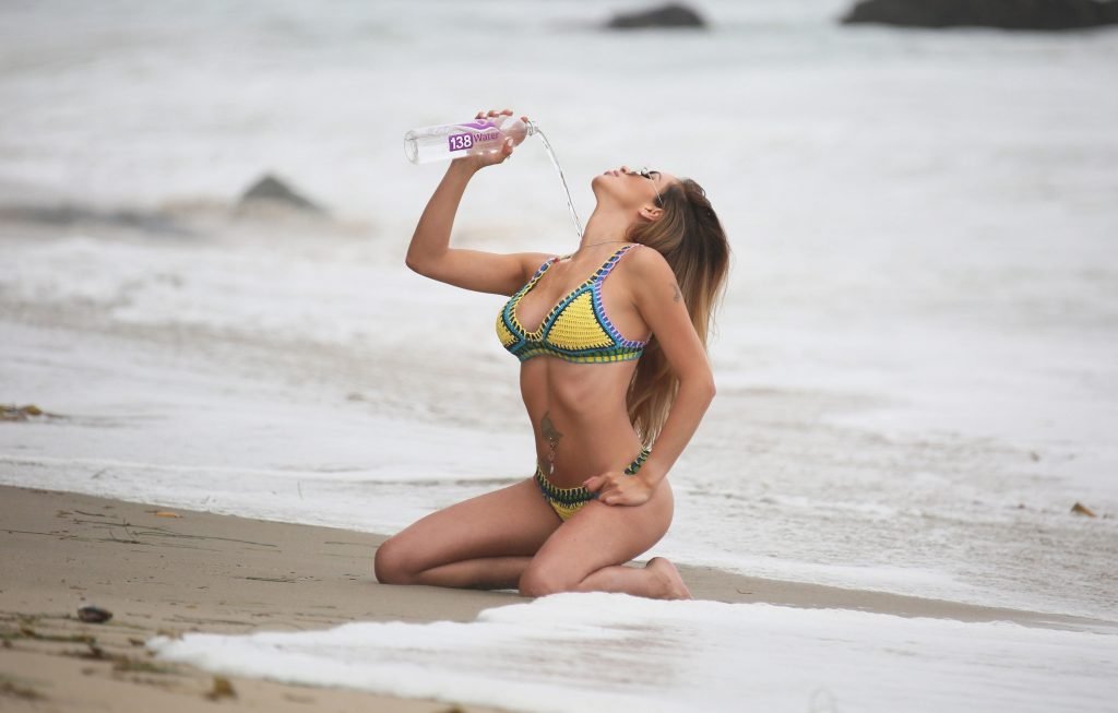 Modelo costarriquenha Ari Lezama posa durante um ensaio fotográfico divertido de biquíni para 138 Water na praia de Malibu, 29/10/2018.