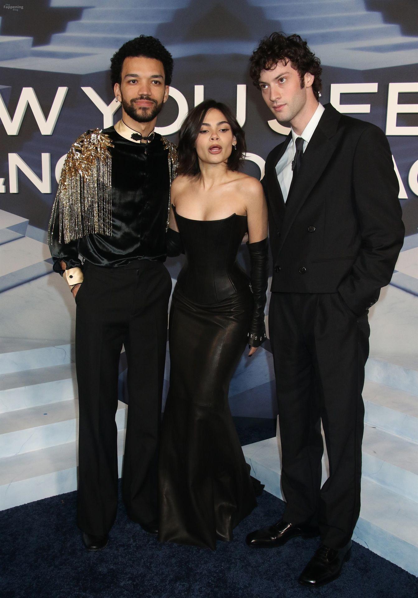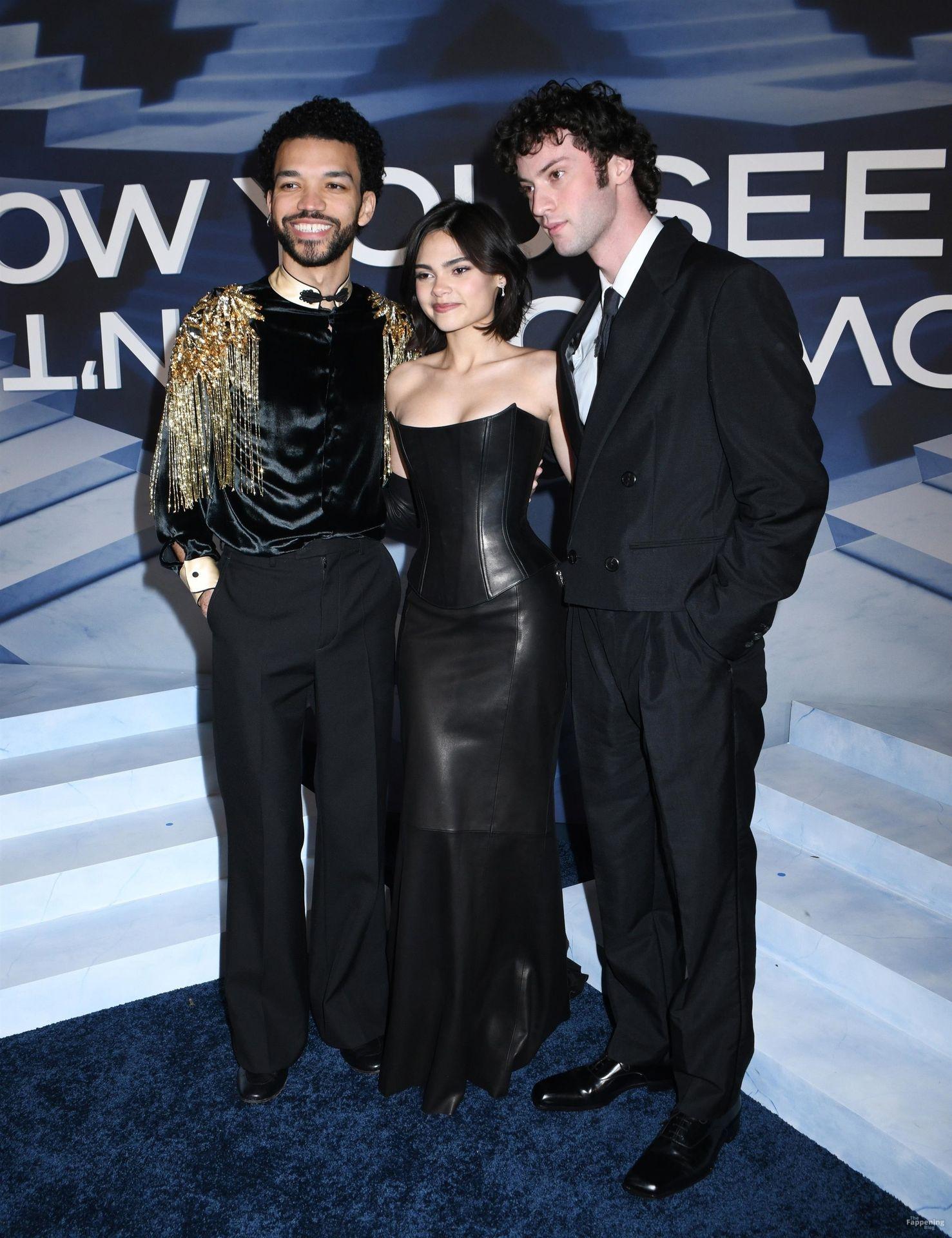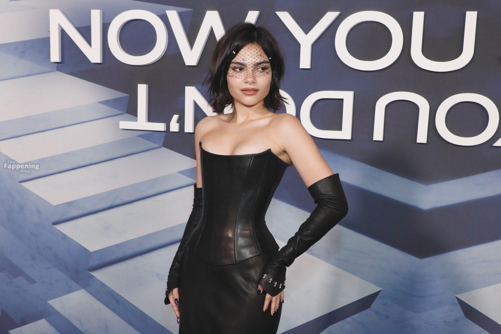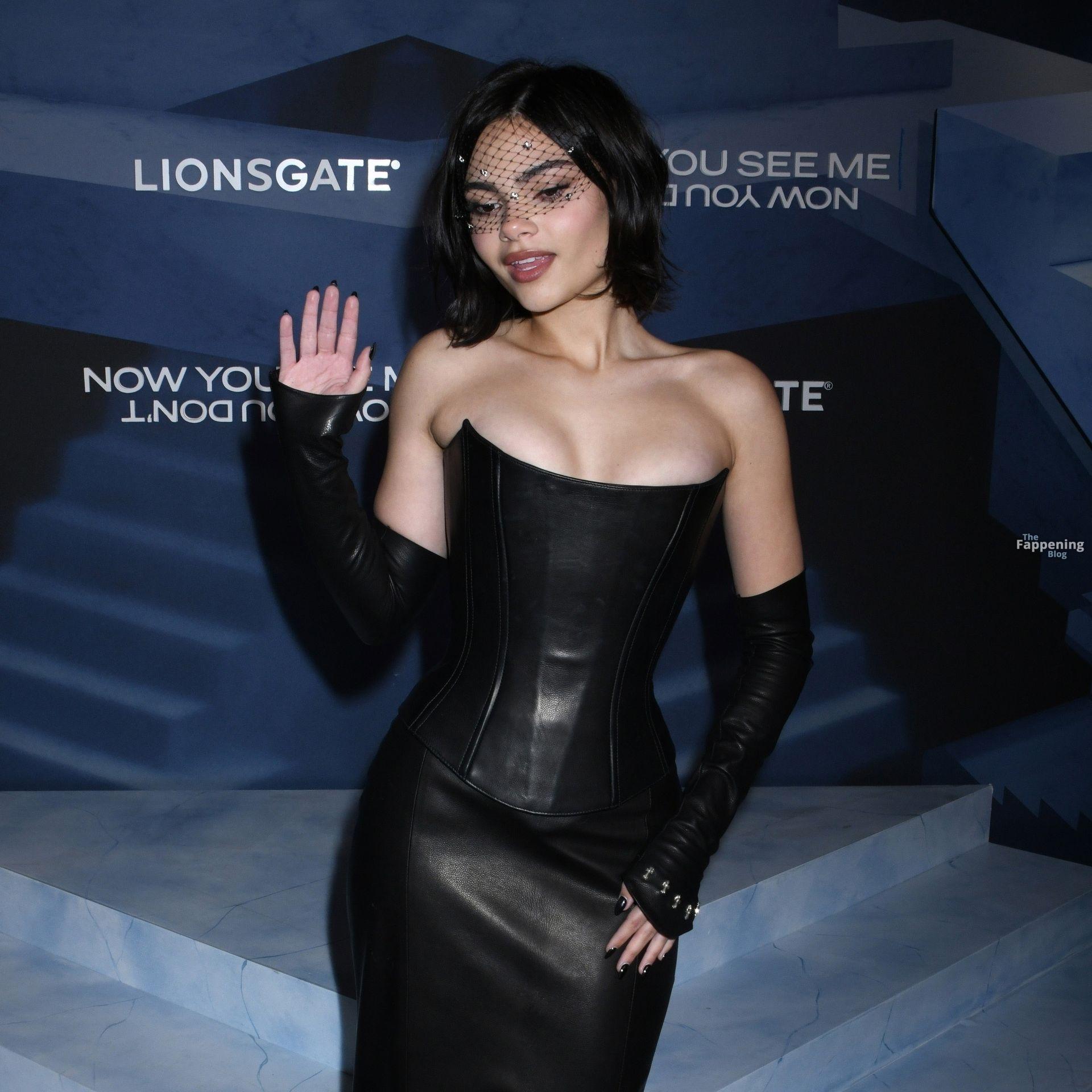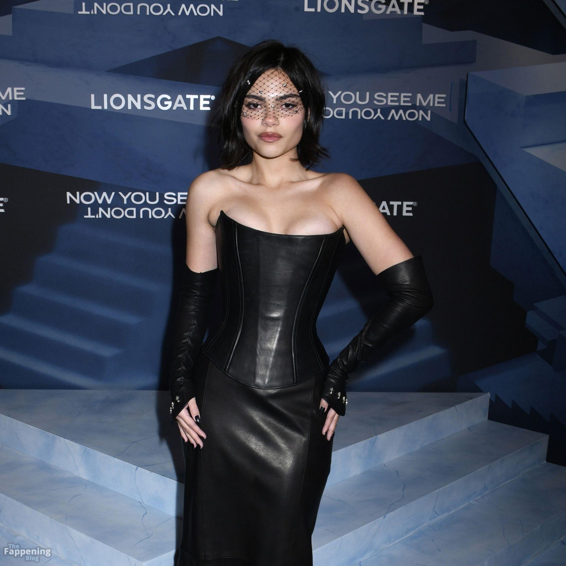 A atriz americana de seios fartos Ariana Greenblatt impressiona em um vestido corselete de couro na estreia de Now You See Me Now You Don’t no The Lighthouse at Chelsea Piers em Manhattan, NYC.