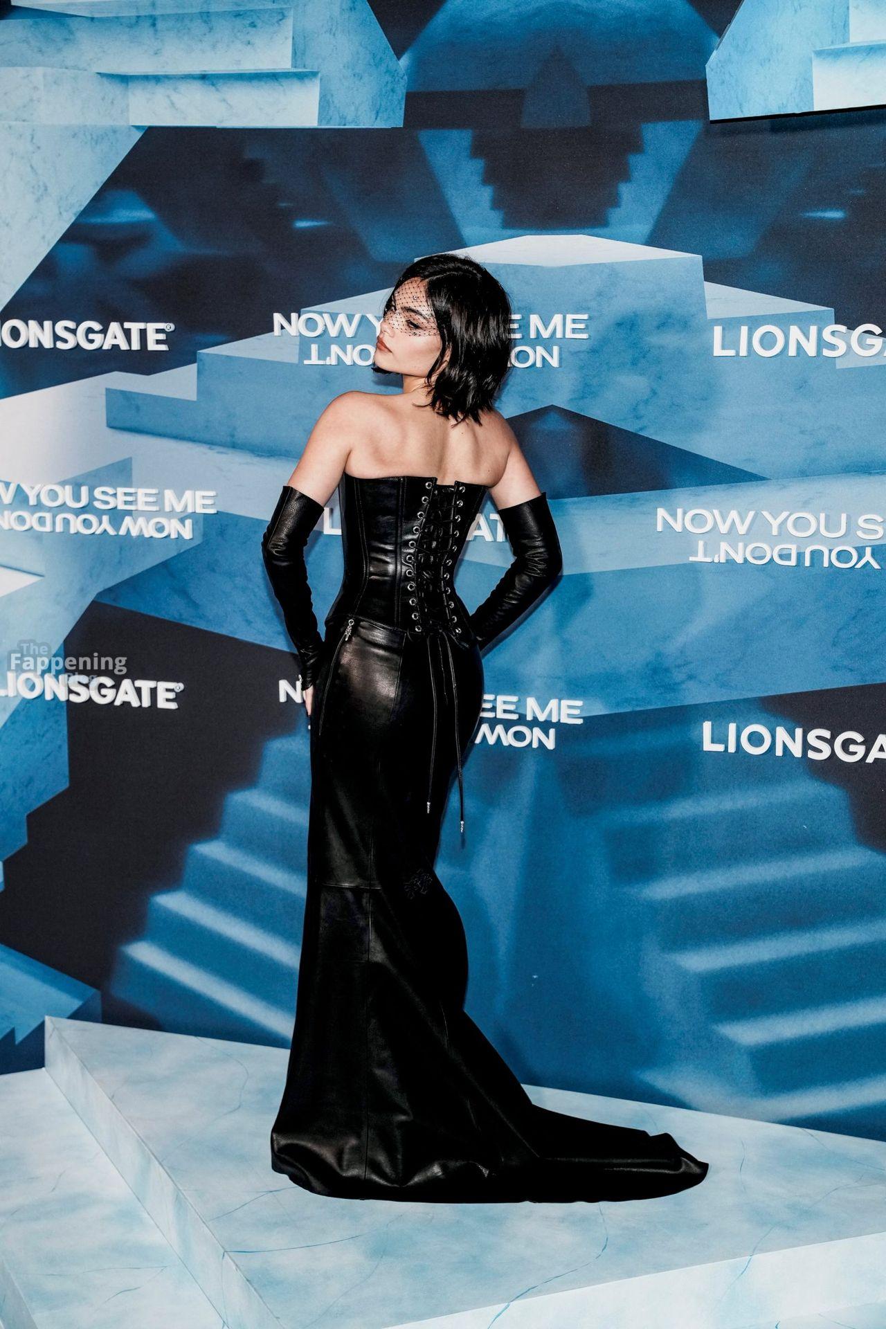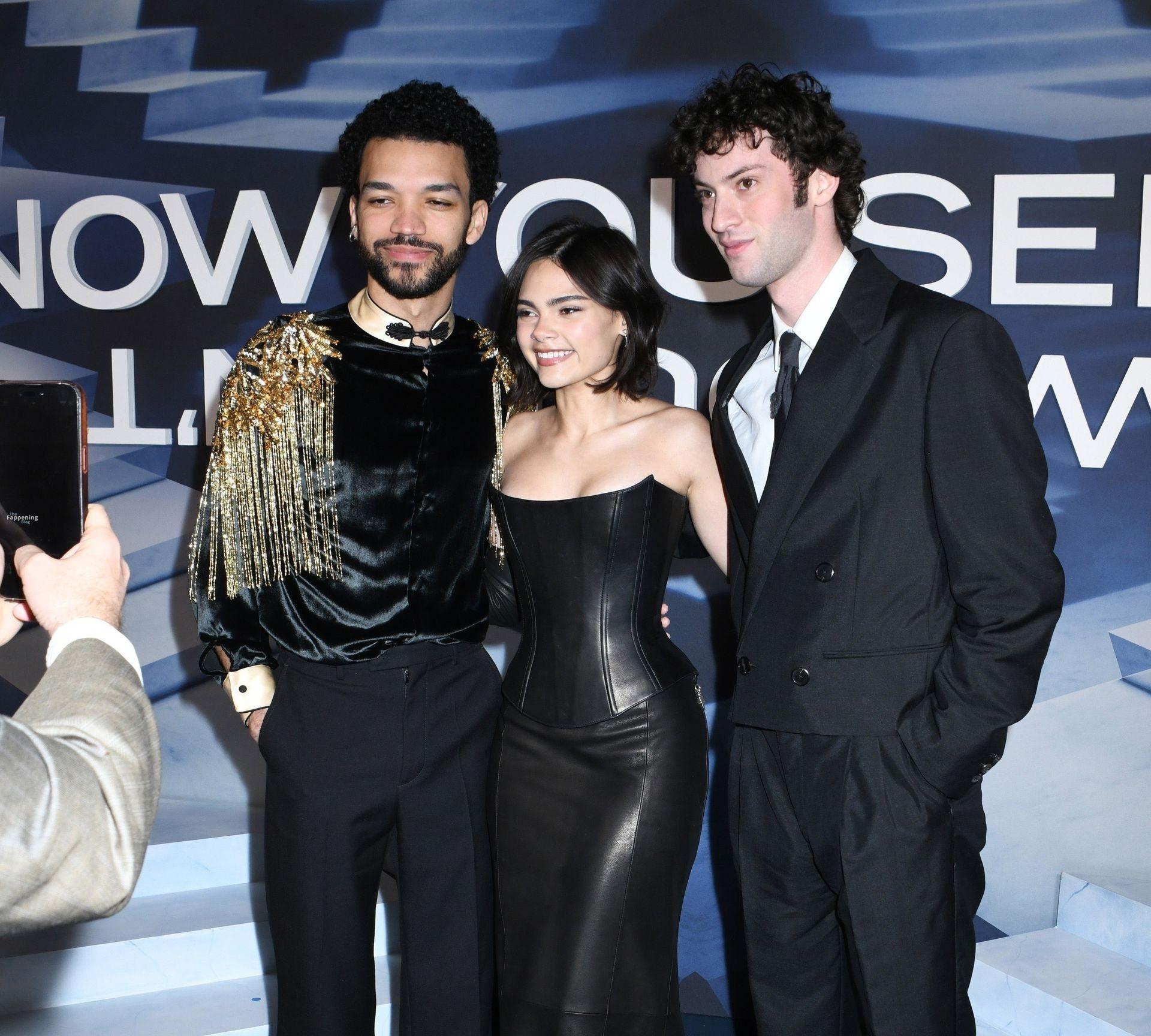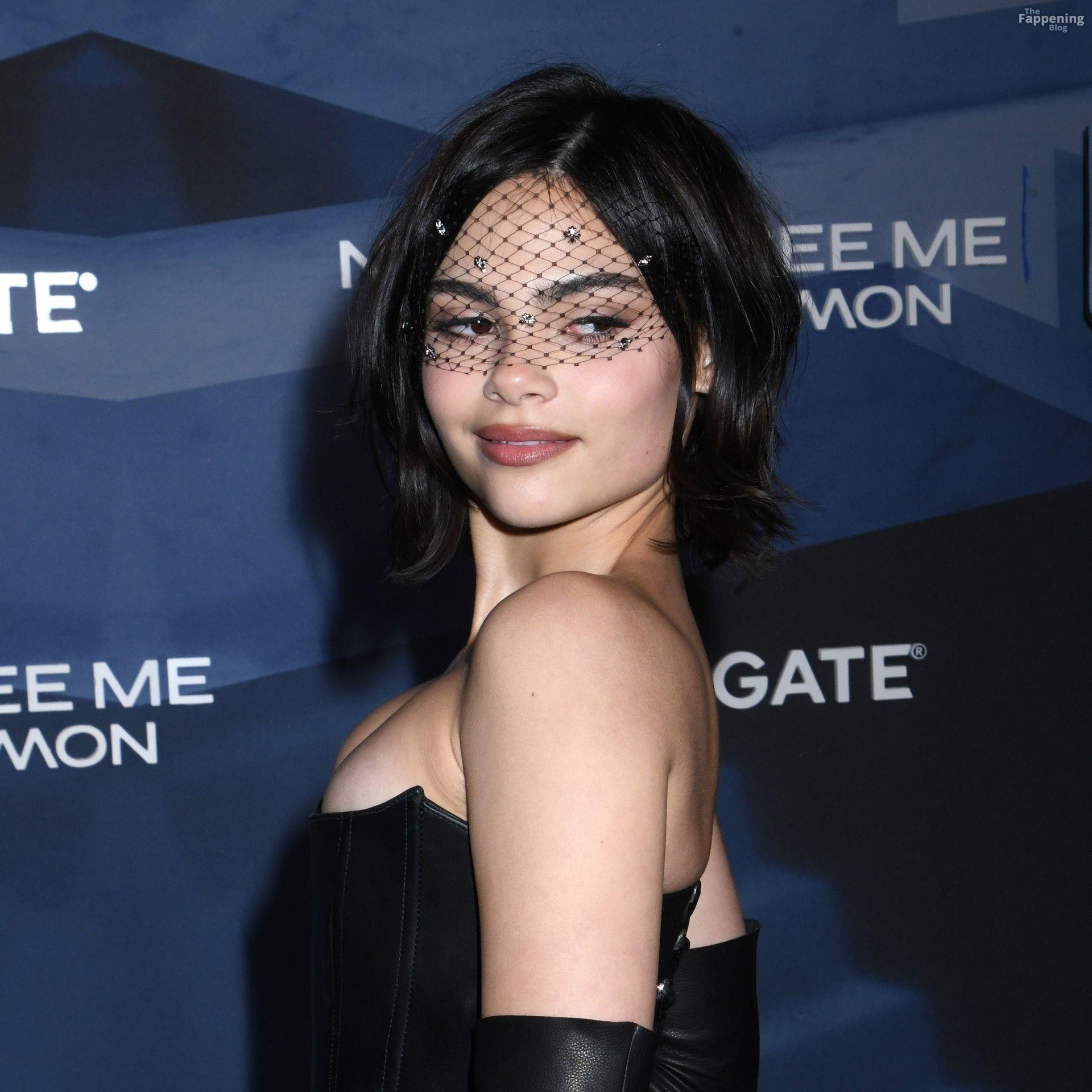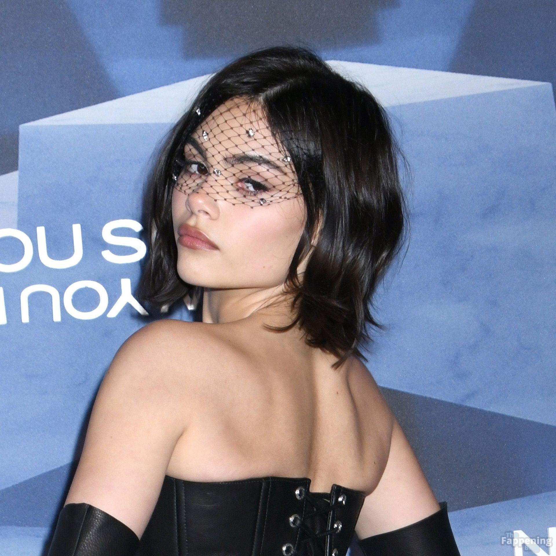 A atriz americana de seios fartos Ariana Greenblatt impressiona em um vestido corselete de couro na estreia de Now You See Me Now You Don’t no The Lighthouse at Chelsea Piers em Manhattan, NYC.