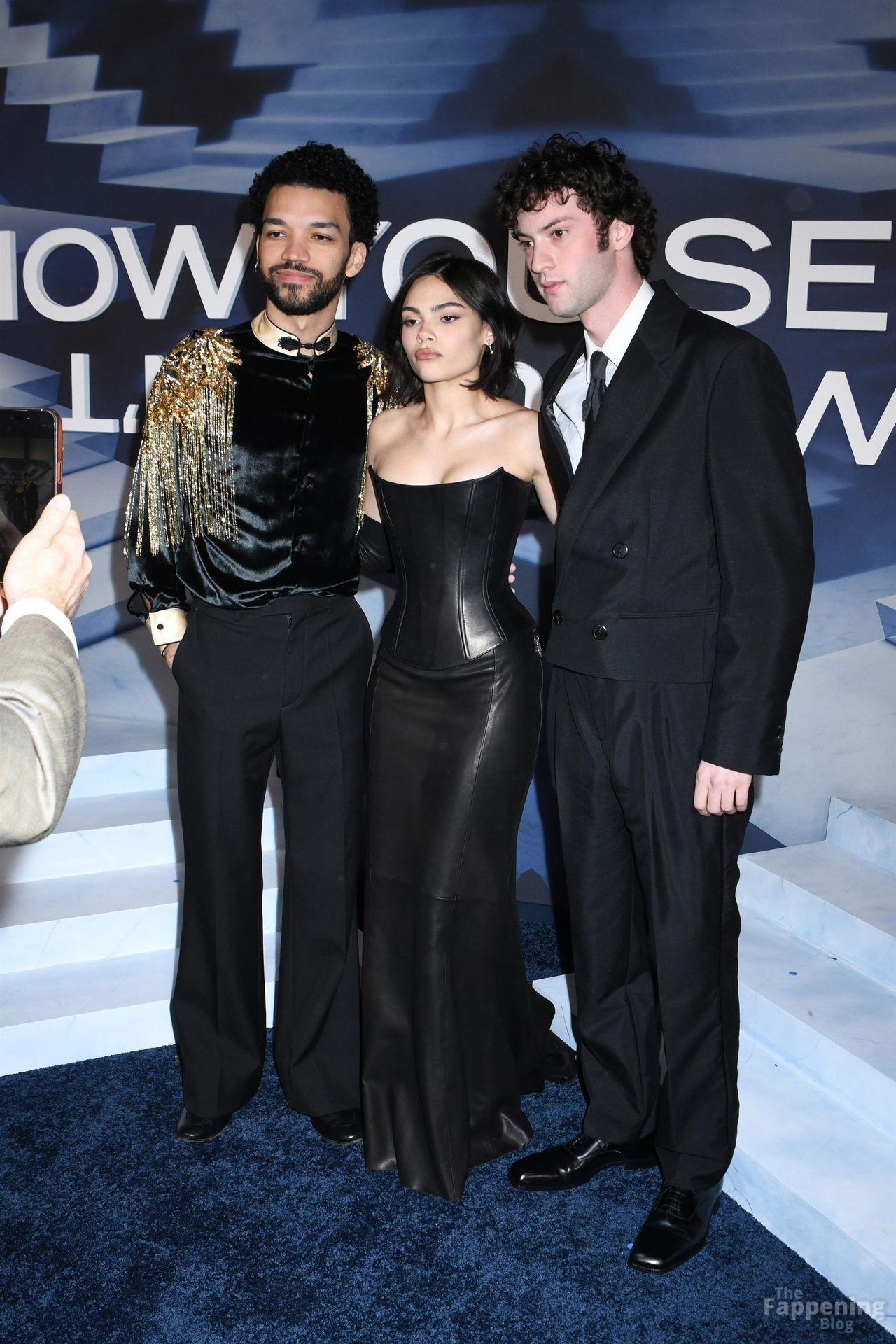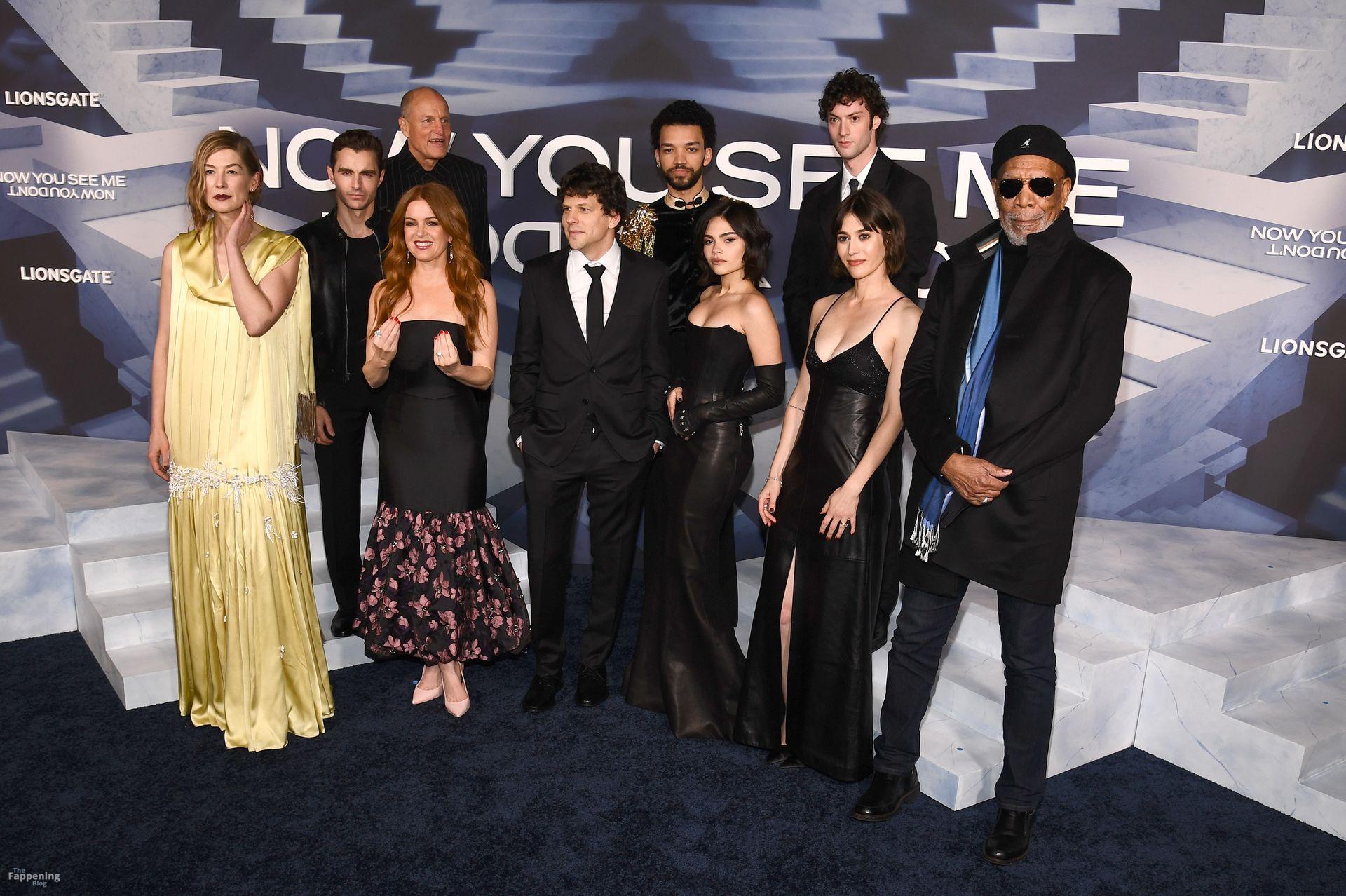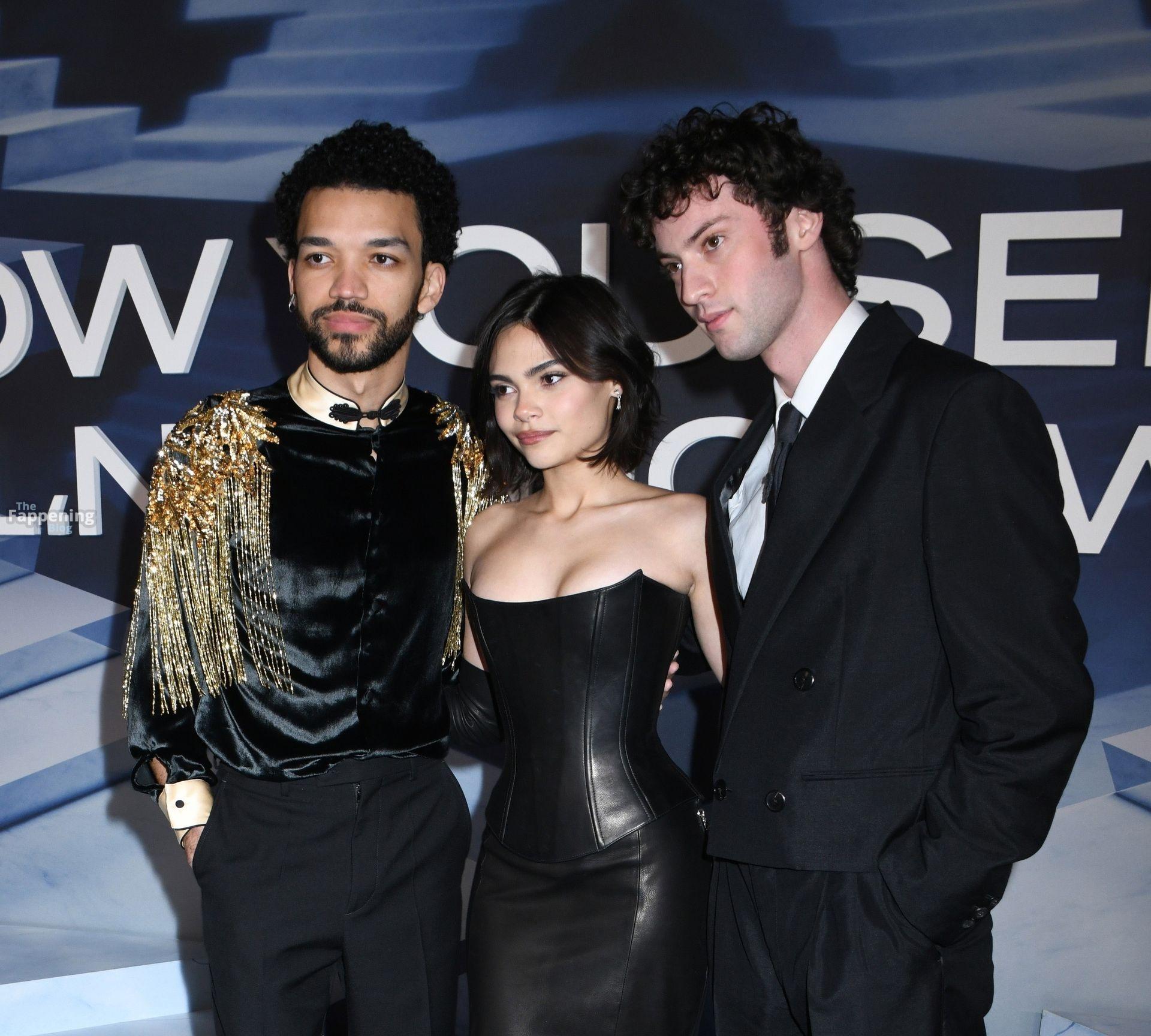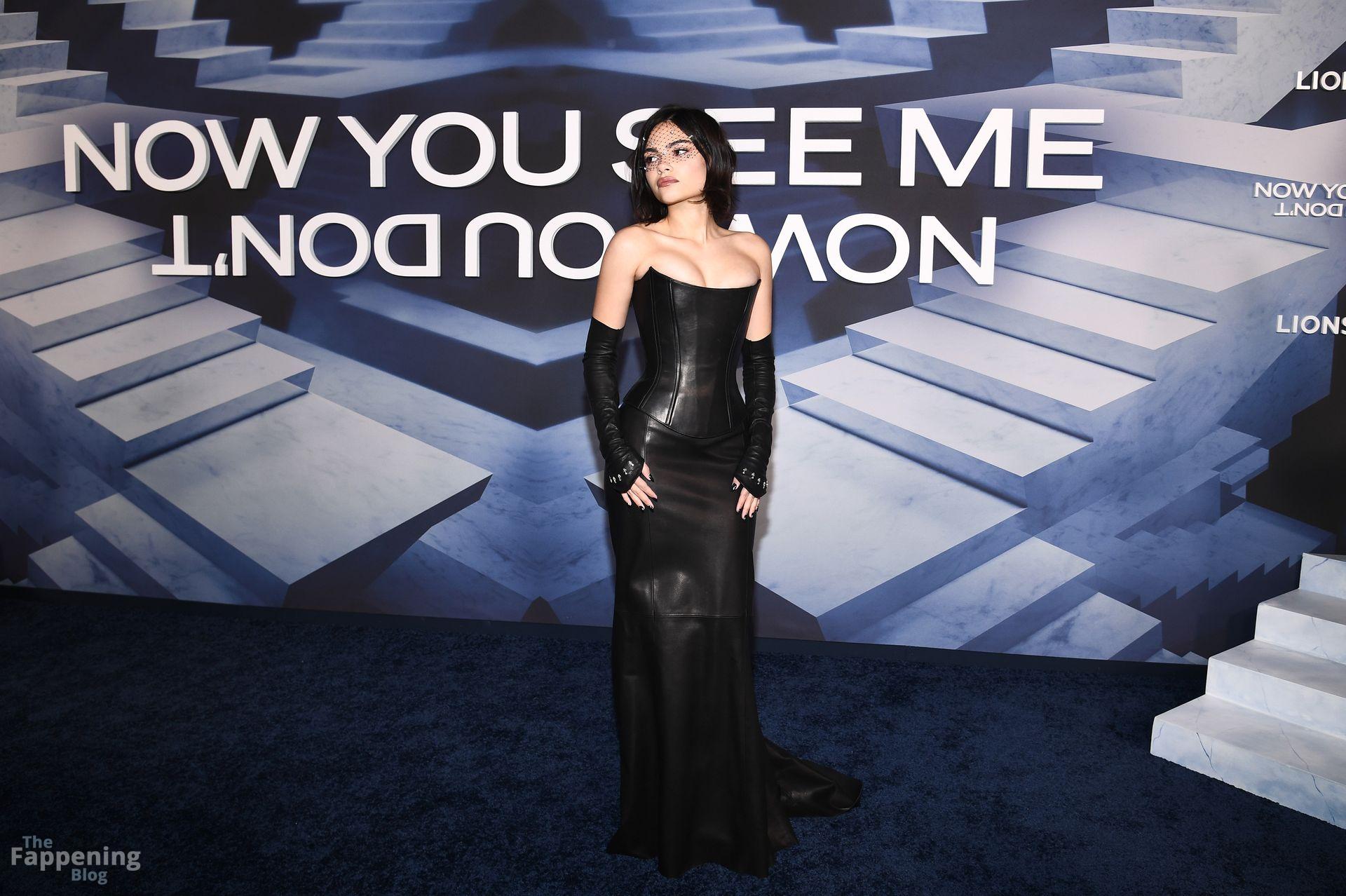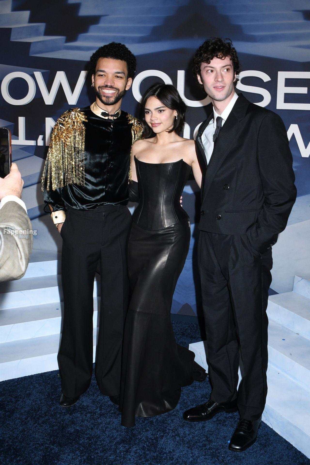A atriz americana de seios fartos Ariana Greenblatt impressiona em um vestido corselete de couro na estreia de Now You See Me Now You Don’t no The Lighthouse at Chelsea Piers em Manhattan, NYC.