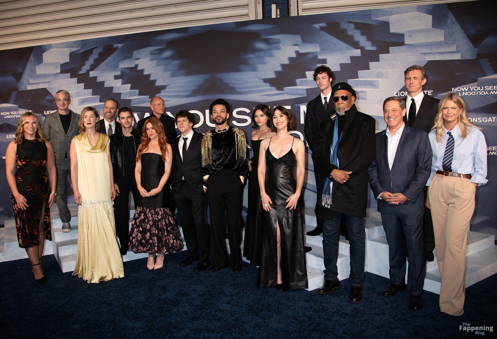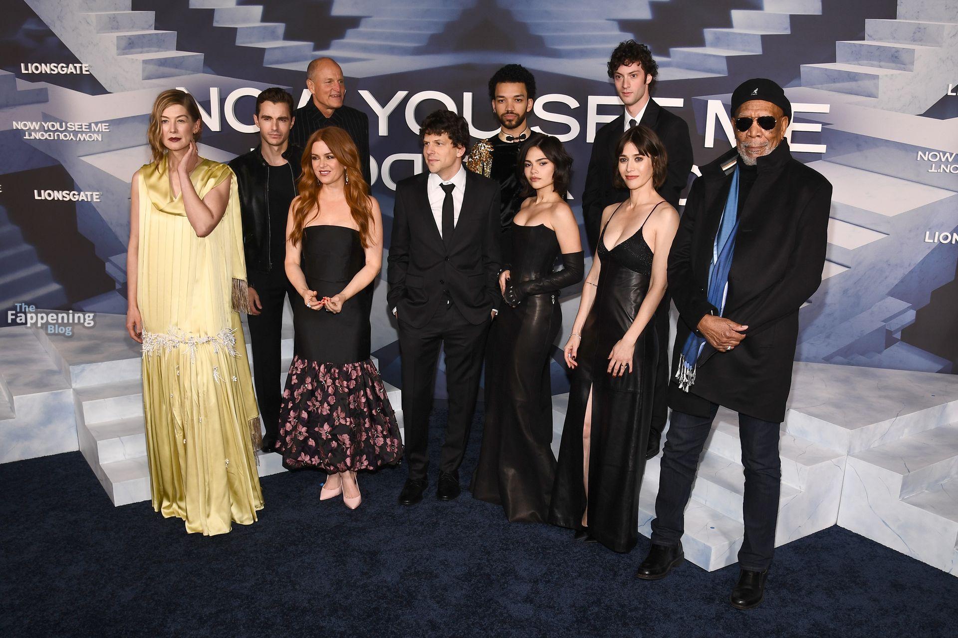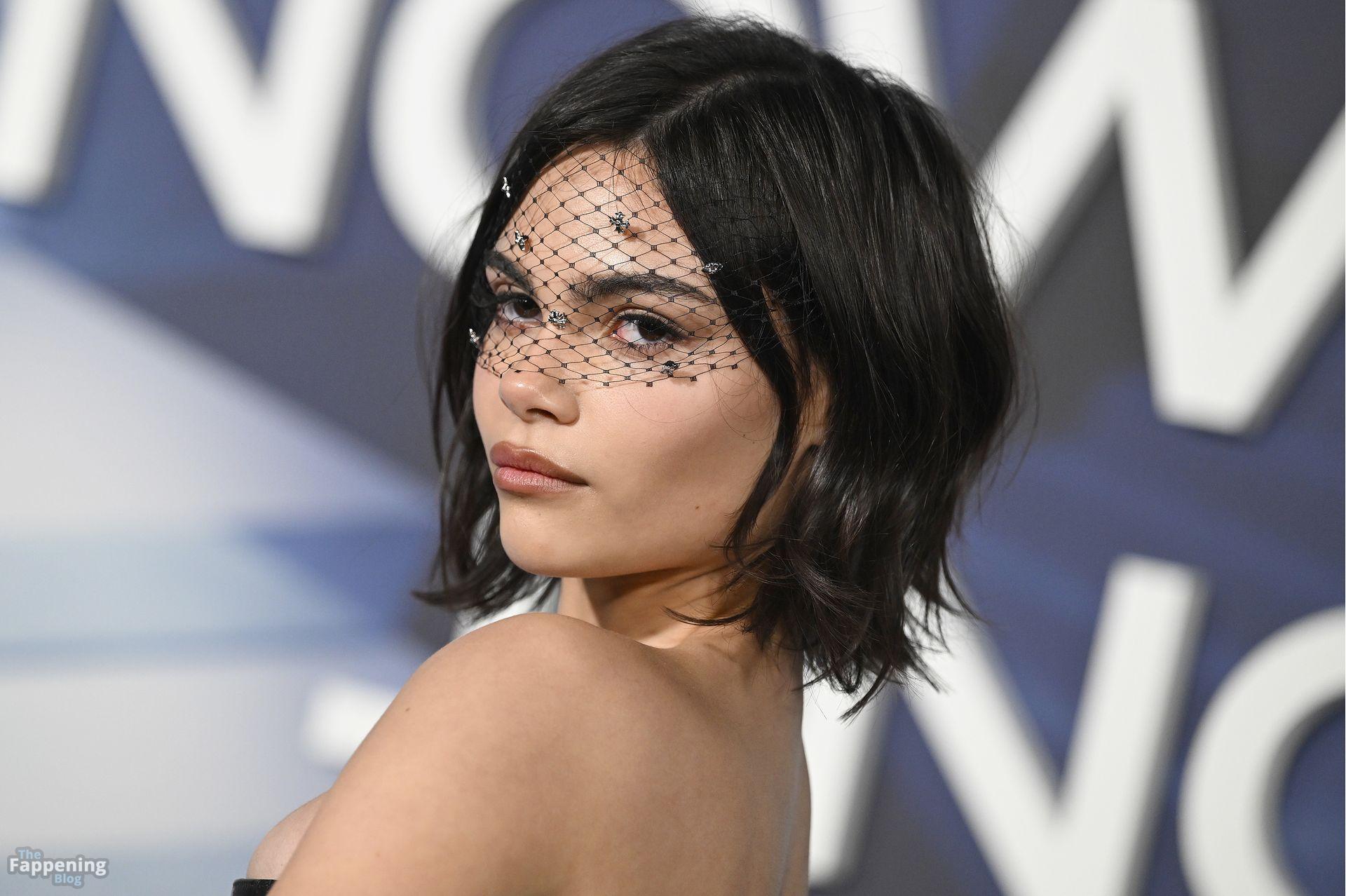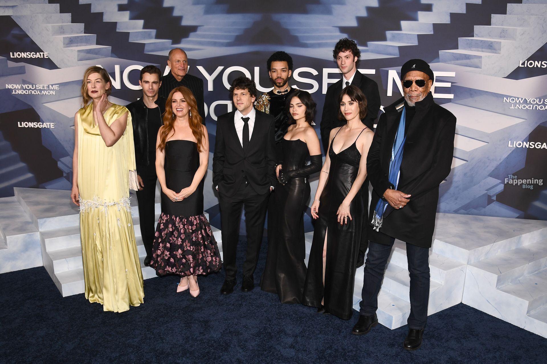 A atriz americana de seios fartos Ariana Greenblatt impressiona em um vestido corselete de couro na estreia de Now You See Me Now You Don’t no The Lighthouse at Chelsea Piers em Manhattan, NYC.