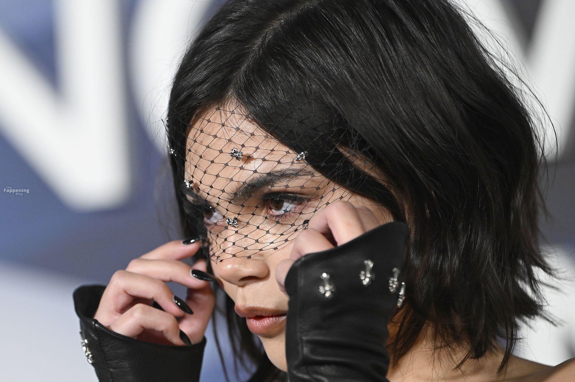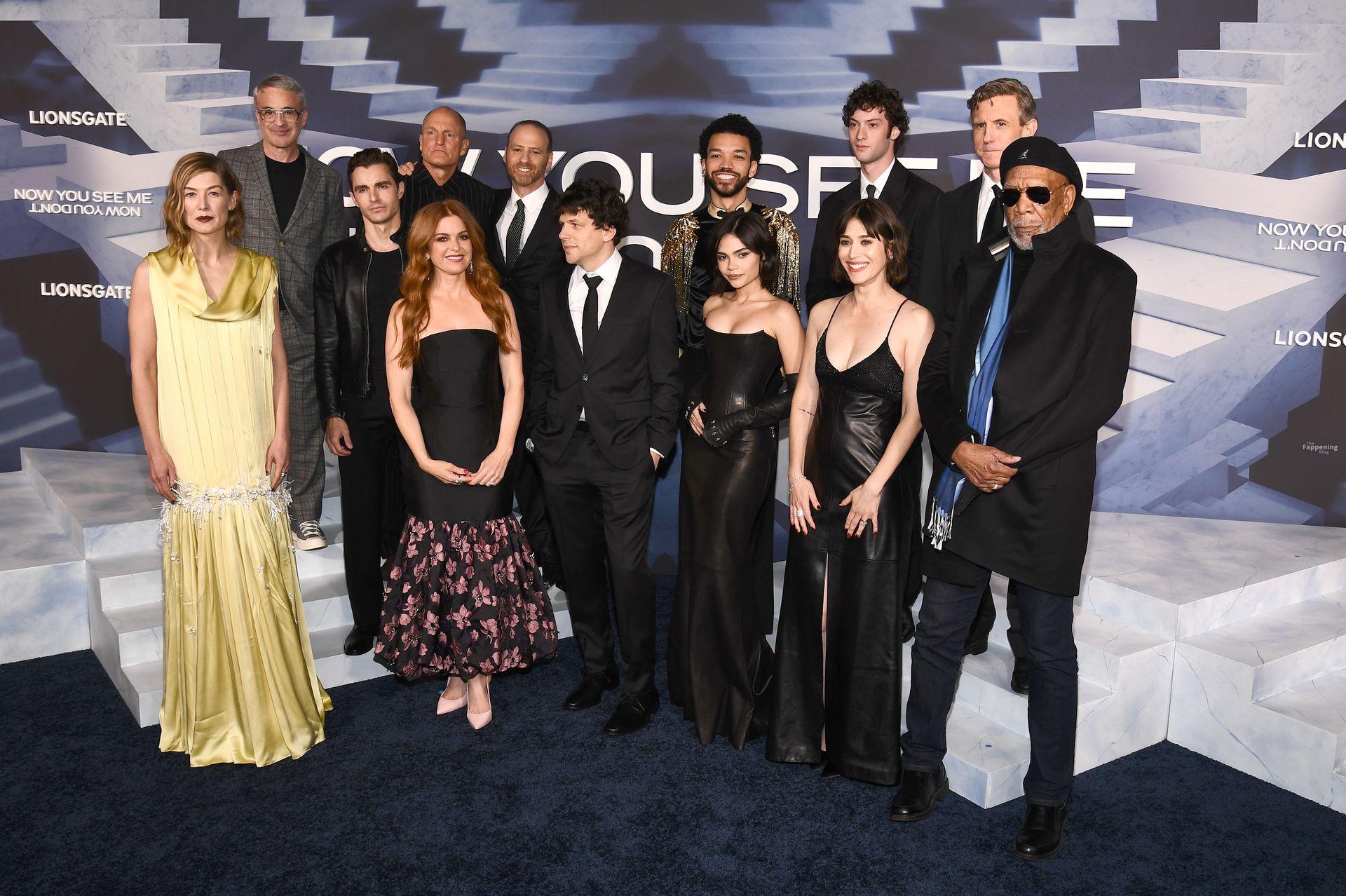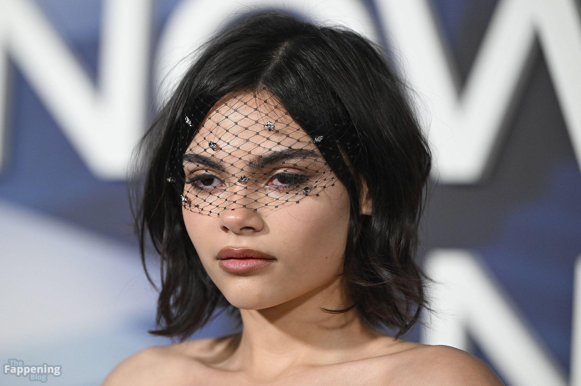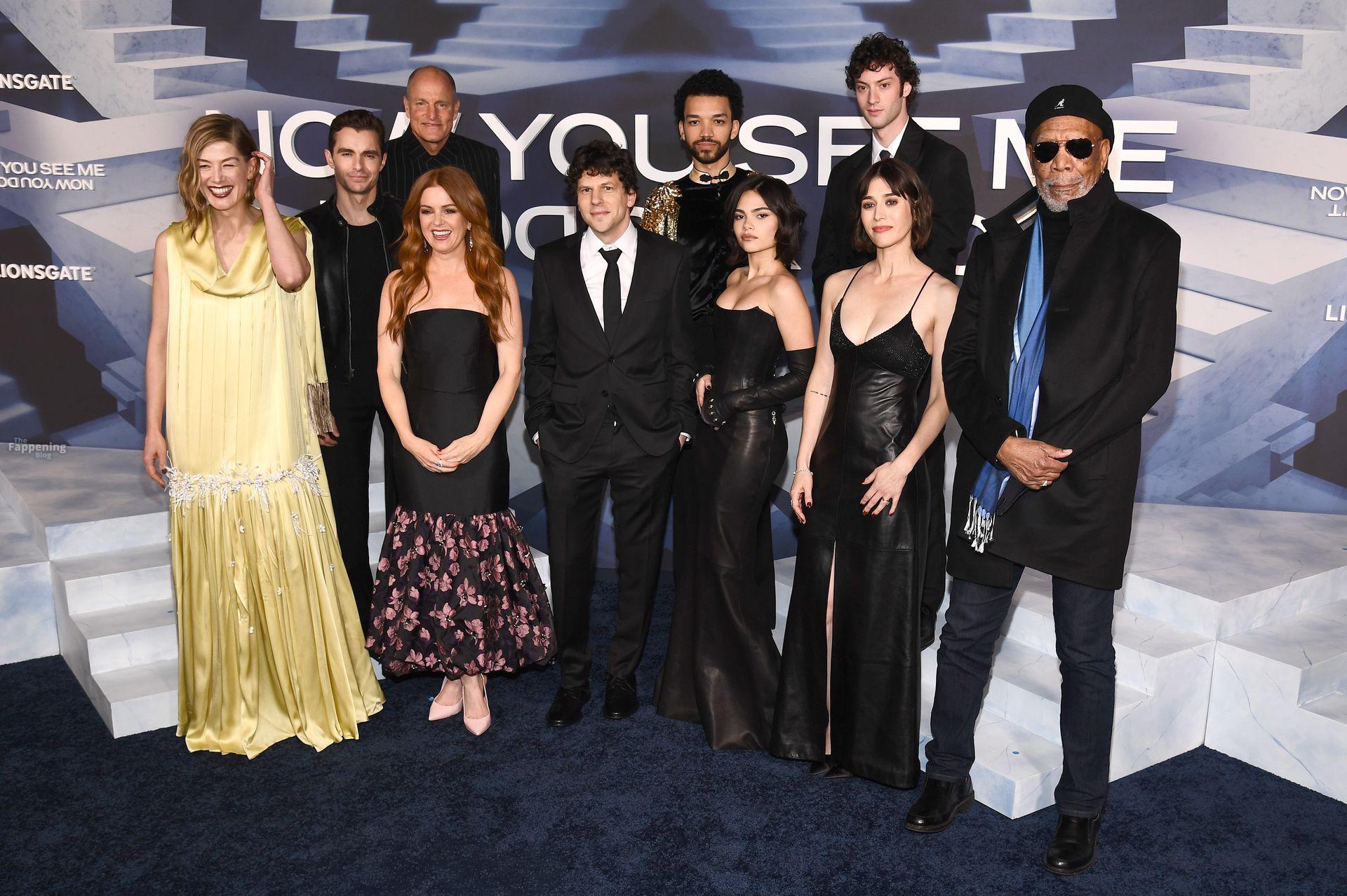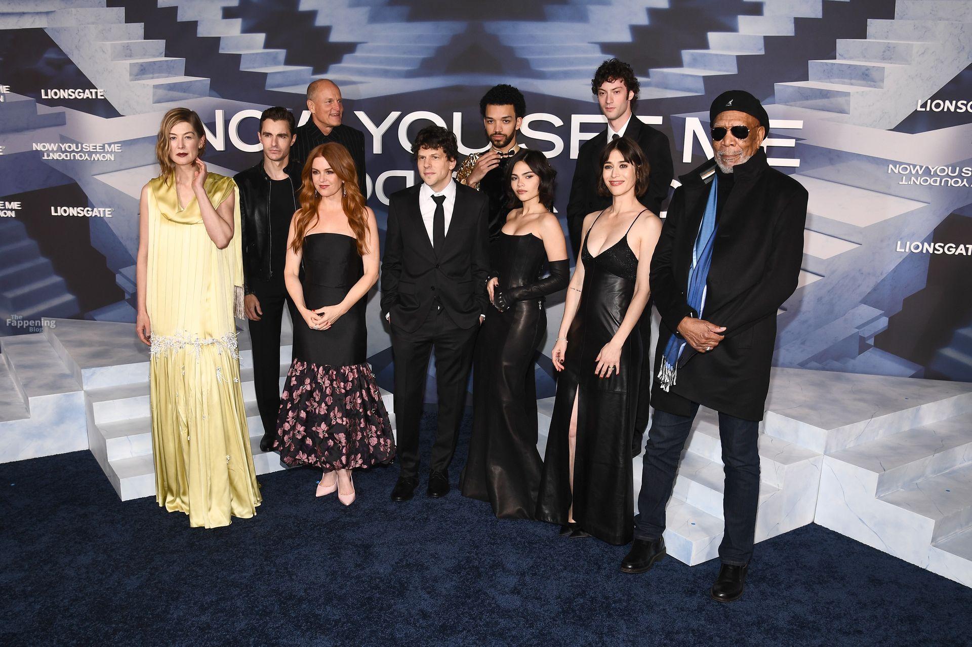 A atriz americana de seios fartos Ariana Greenblatt impressiona em um vestido corselete de couro na estreia de Now You See Me Now You Don’t no The Lighthouse at Chelsea Piers em Manhattan, NYC.