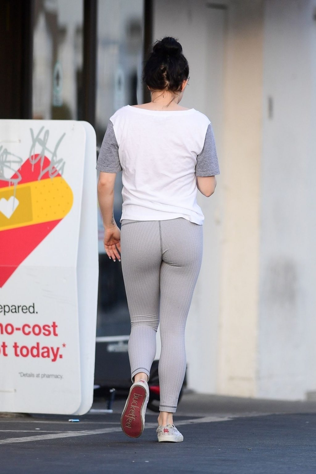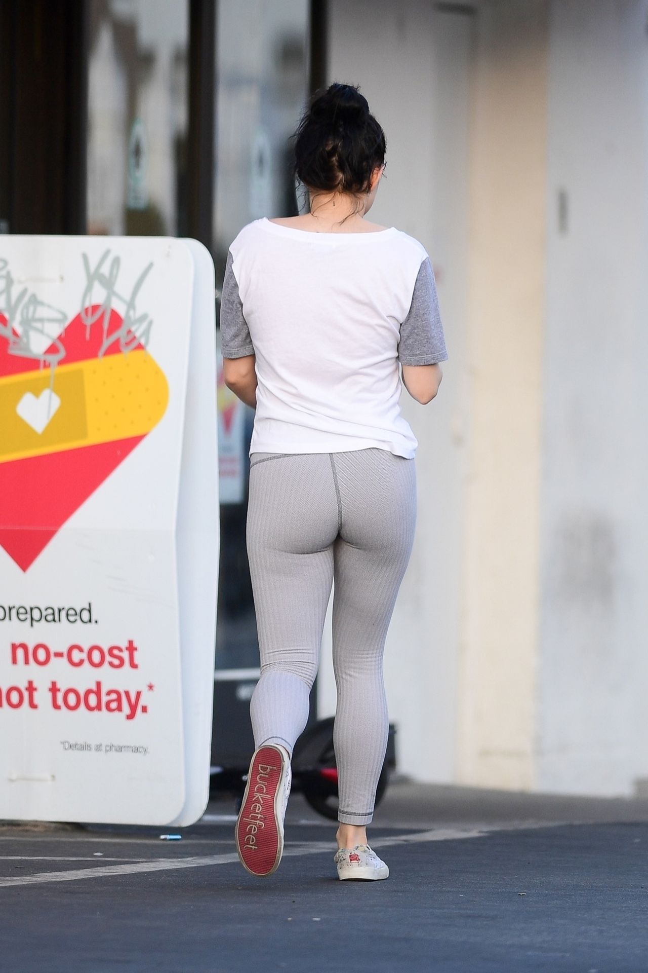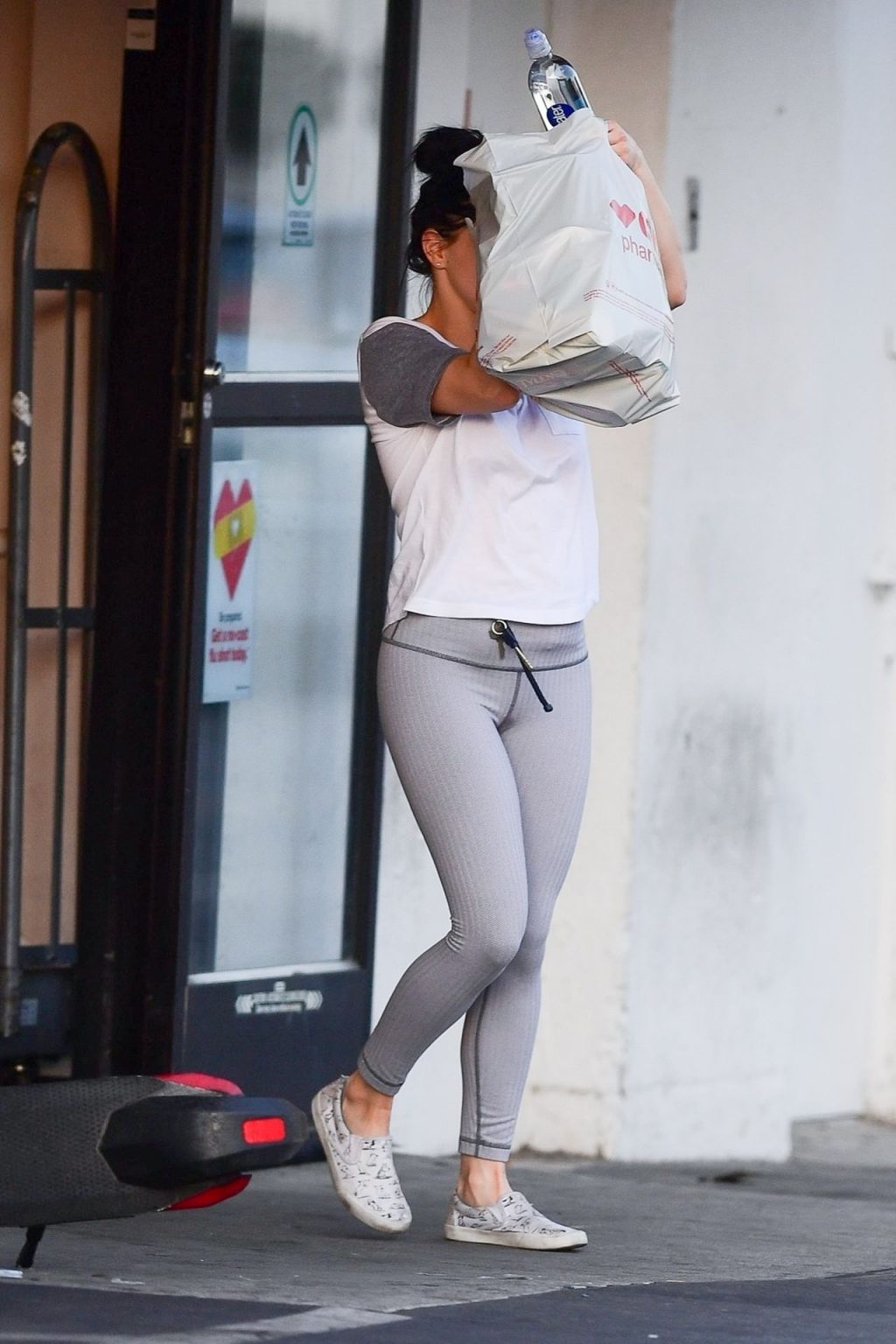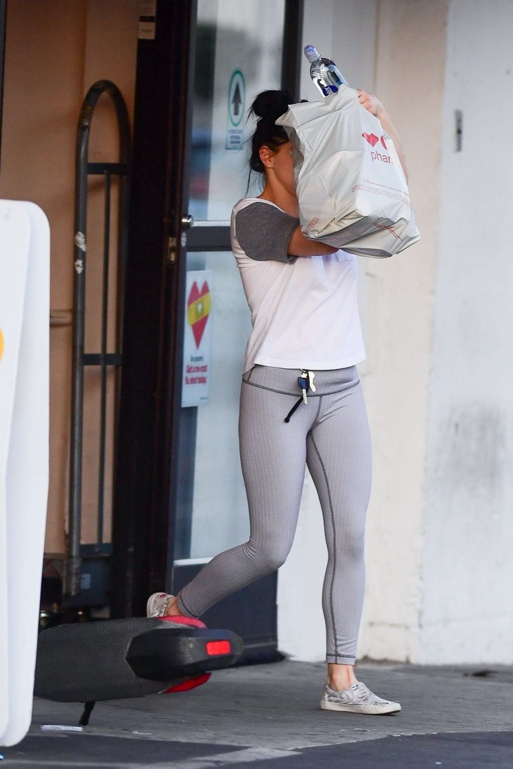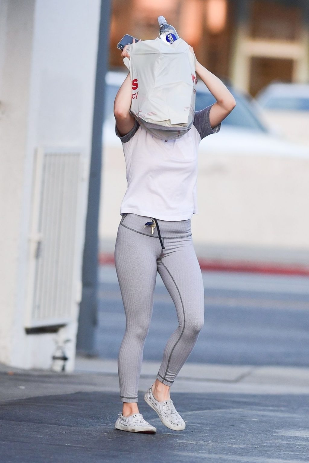 “Modern Family” atriz Ariel Winter cobre o rosto com sua sacola de compras ao sair da CVS após fazer algumas compras em Los Angeles, 10/11/2019.