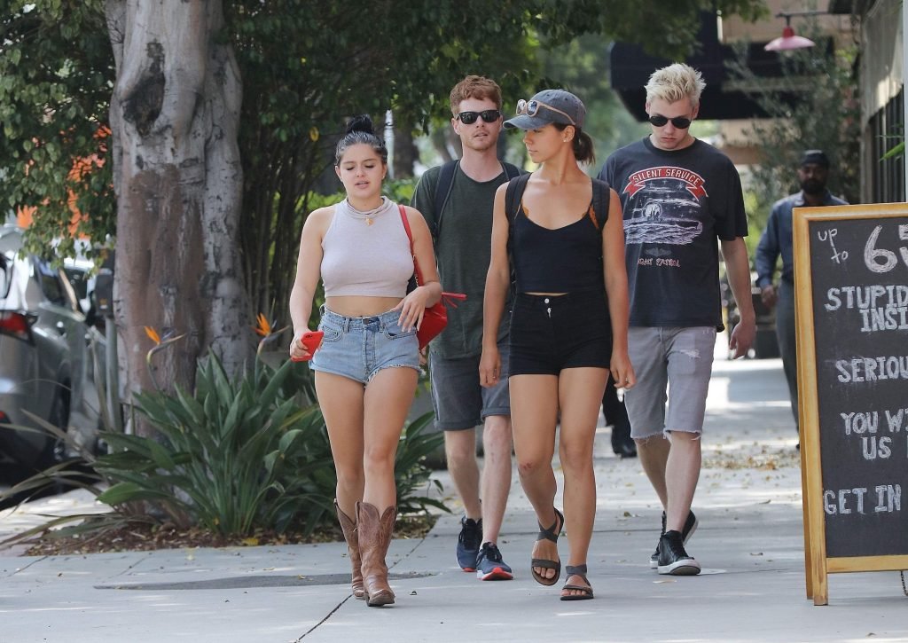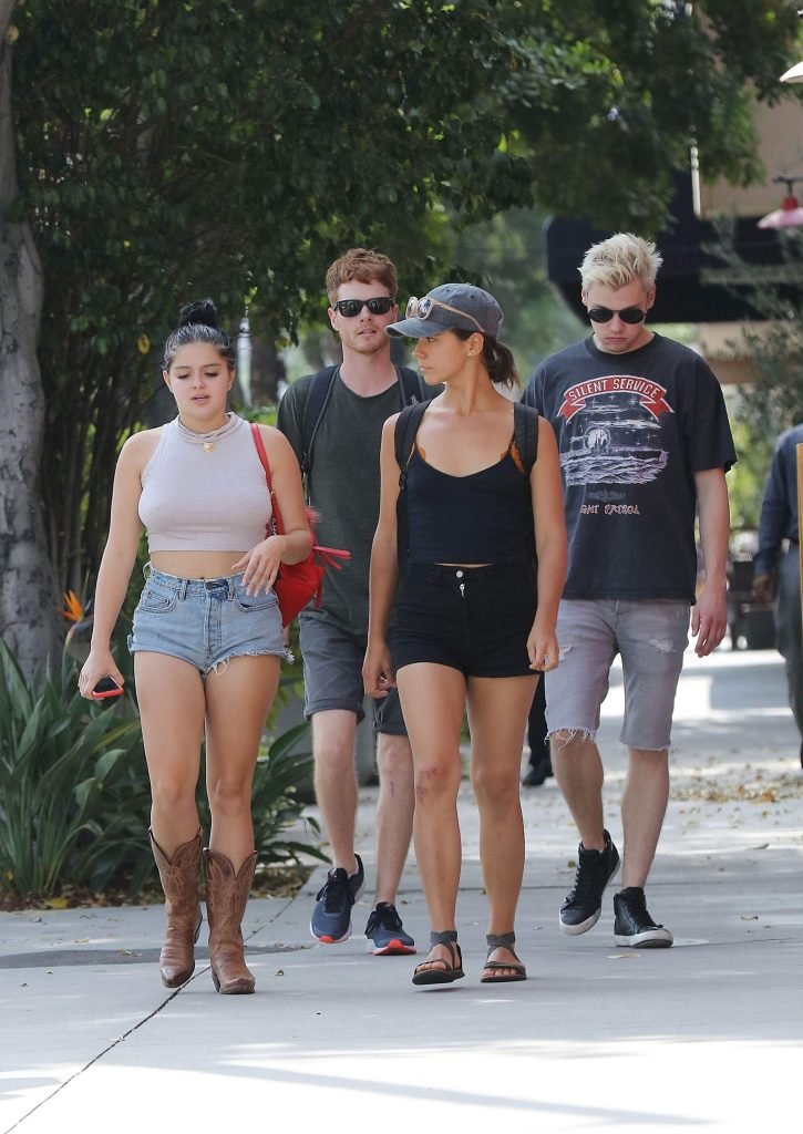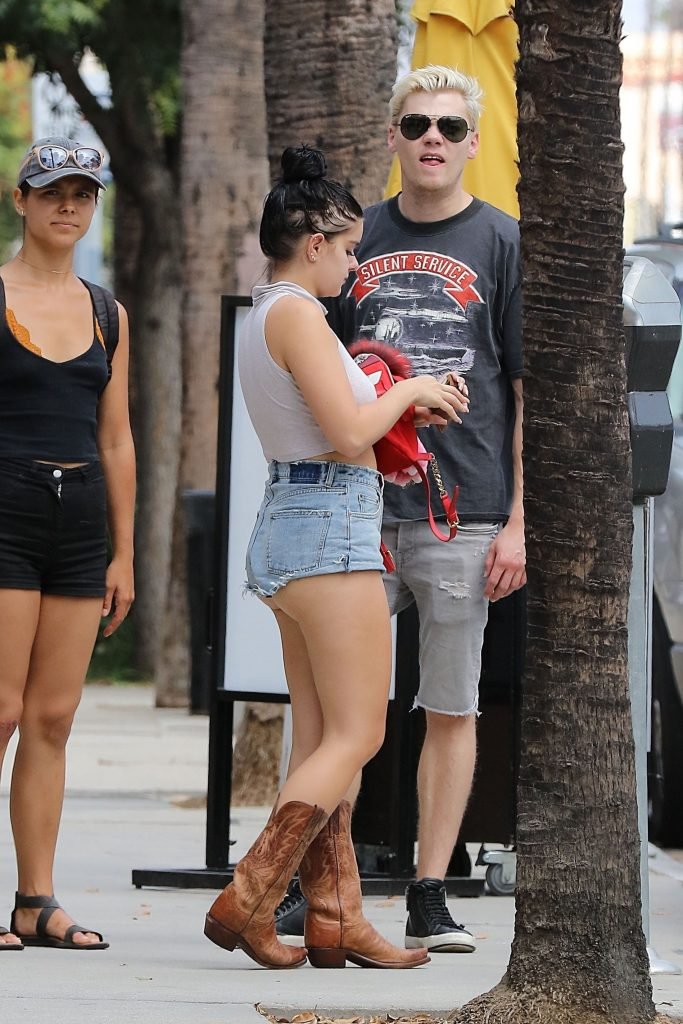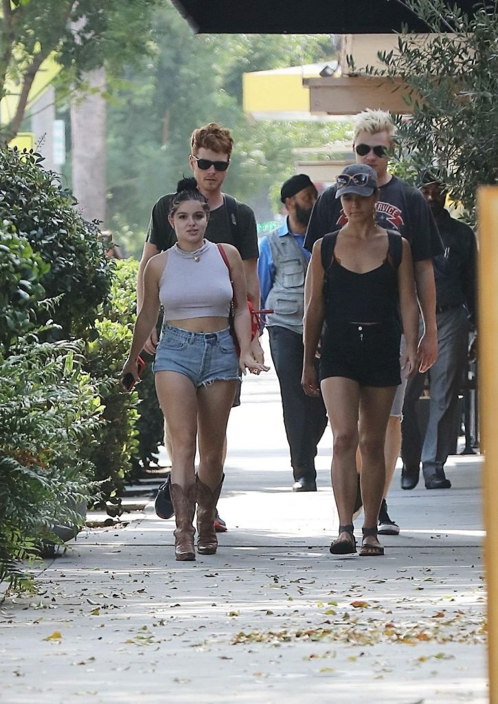 Ariel Winter (19) foi vista fazendo compras em Los Angeles usando shorts jeans cortados, top cropped bege e botas de cowboy, 09/04/2017. Ariel Winter é atriz (Sofia the First, TV), cantora, modelo de Los Angeles.
