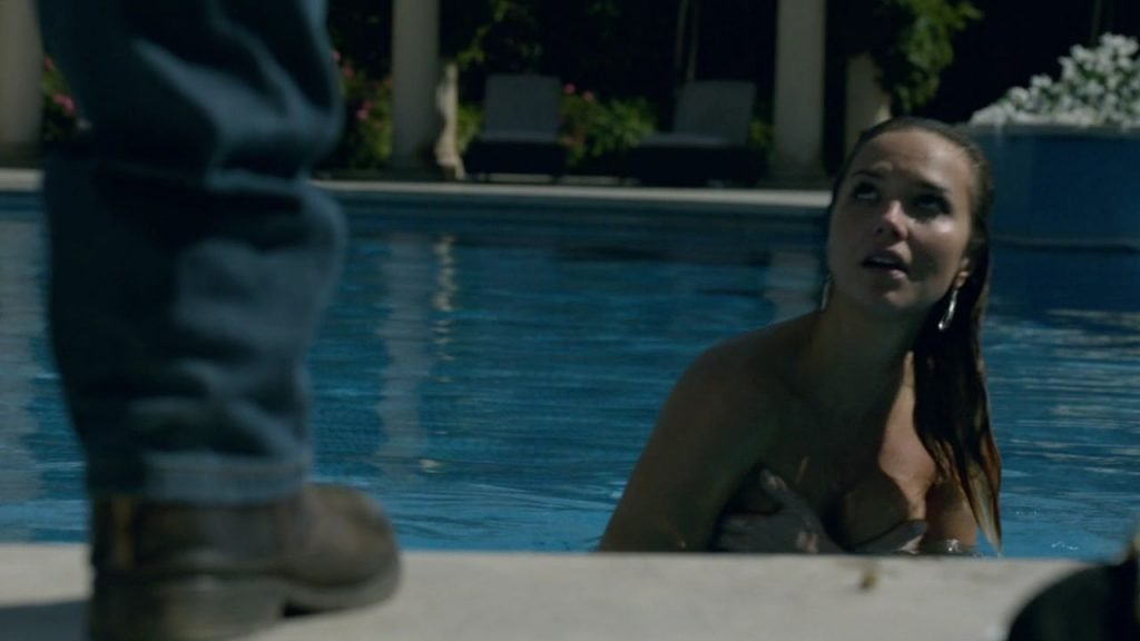 Você não consegue ver o rosto da Arielle quando ela se despe à beira da piscina (então pode ser um corpo duplo). Mas esses são definitivamente seus seios flutuantes quando ela os levanta na água.