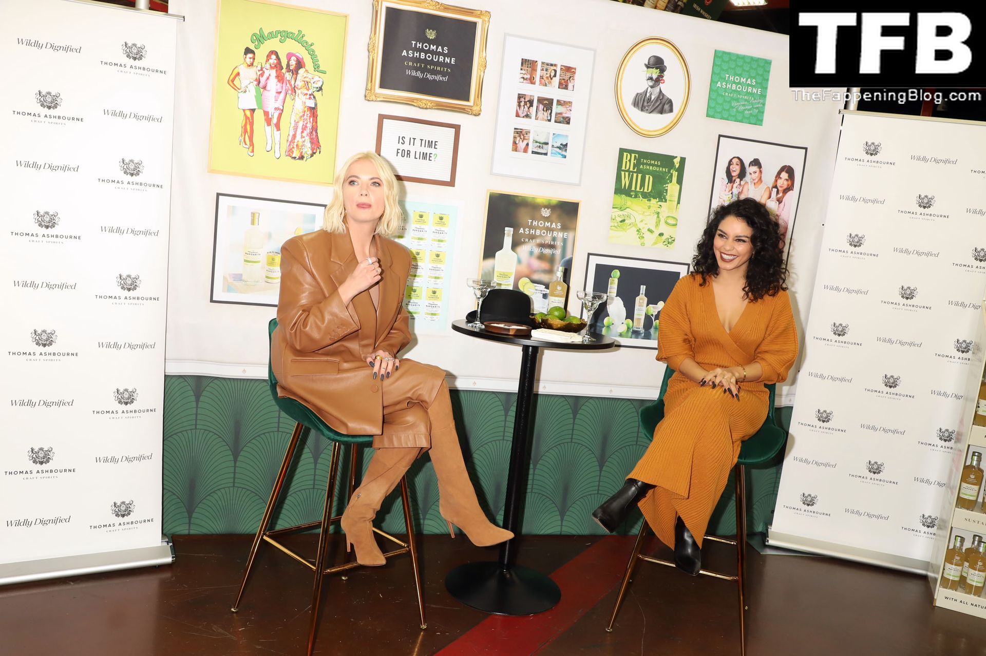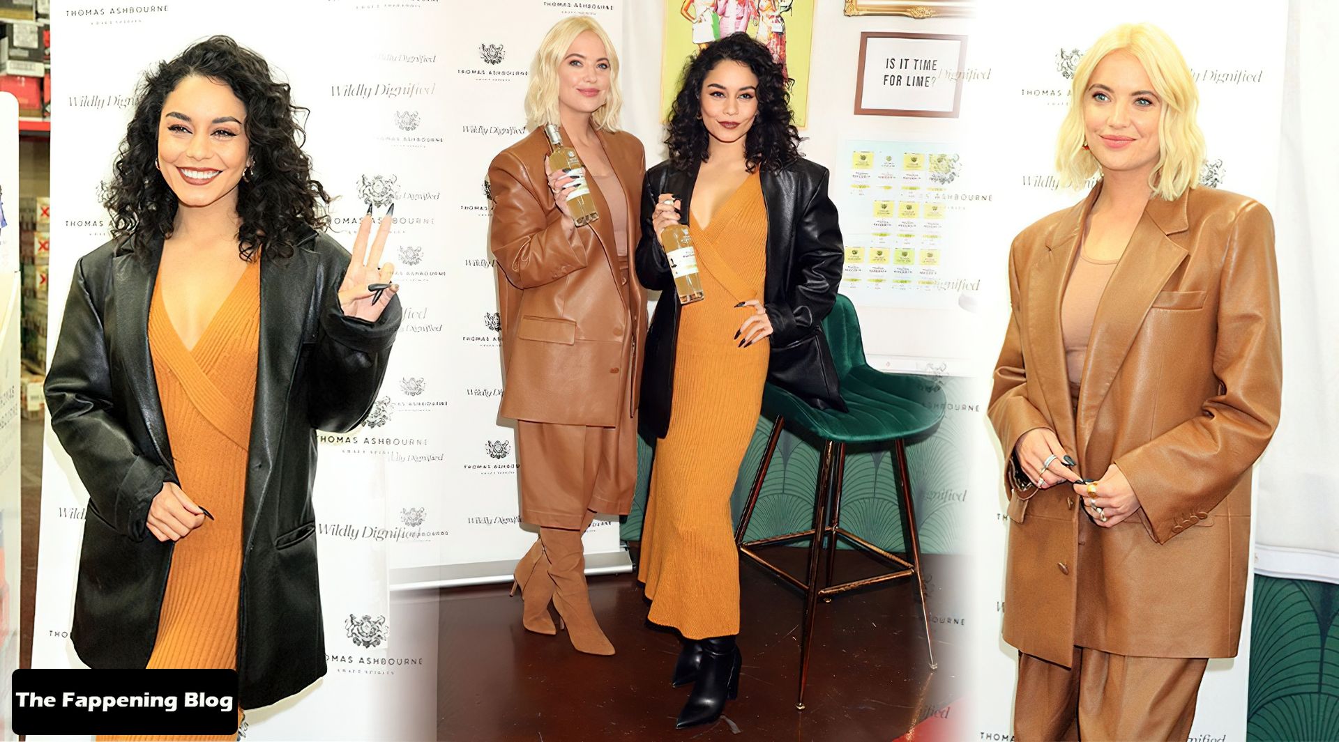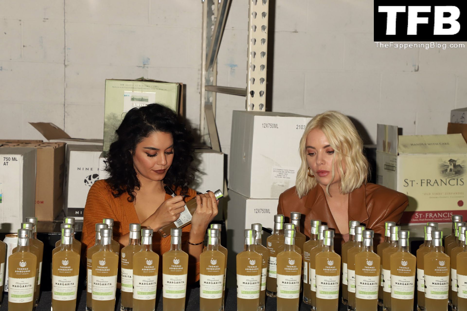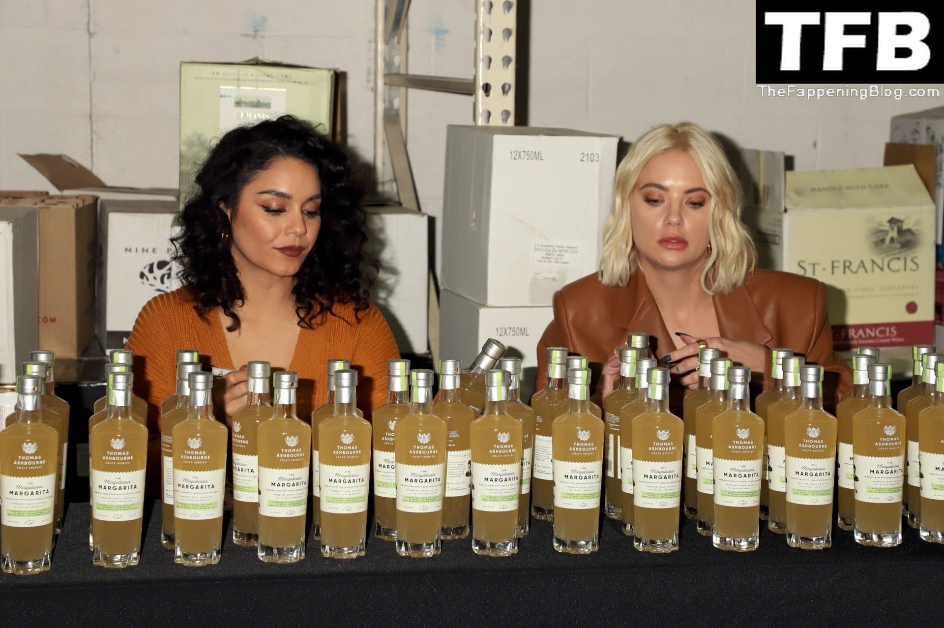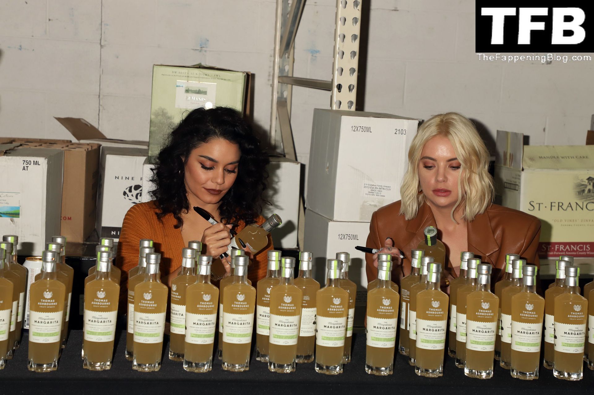 Atrizes Ashley Benson e Vanessa Hudgens assinam garrafas de Thomas Achbourne Craft Spirits em Las Vegas, 11/04/2022.