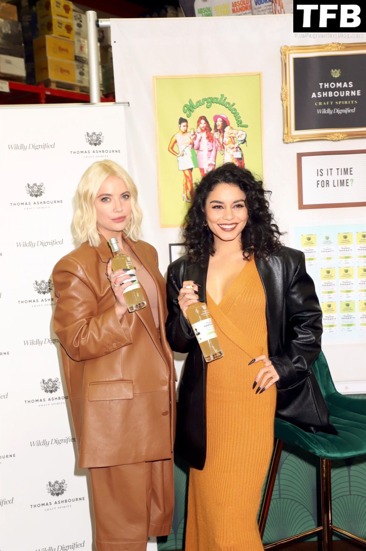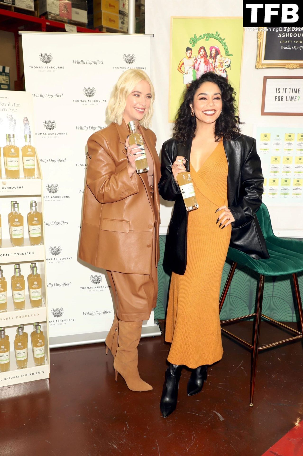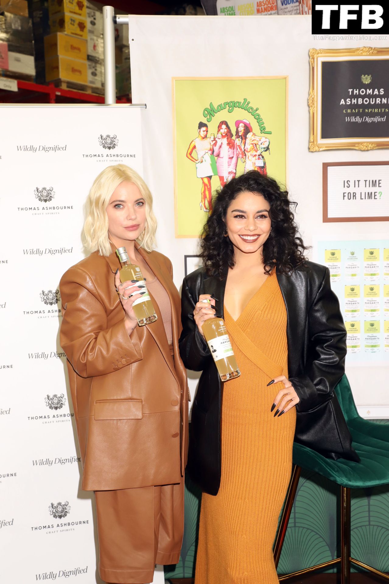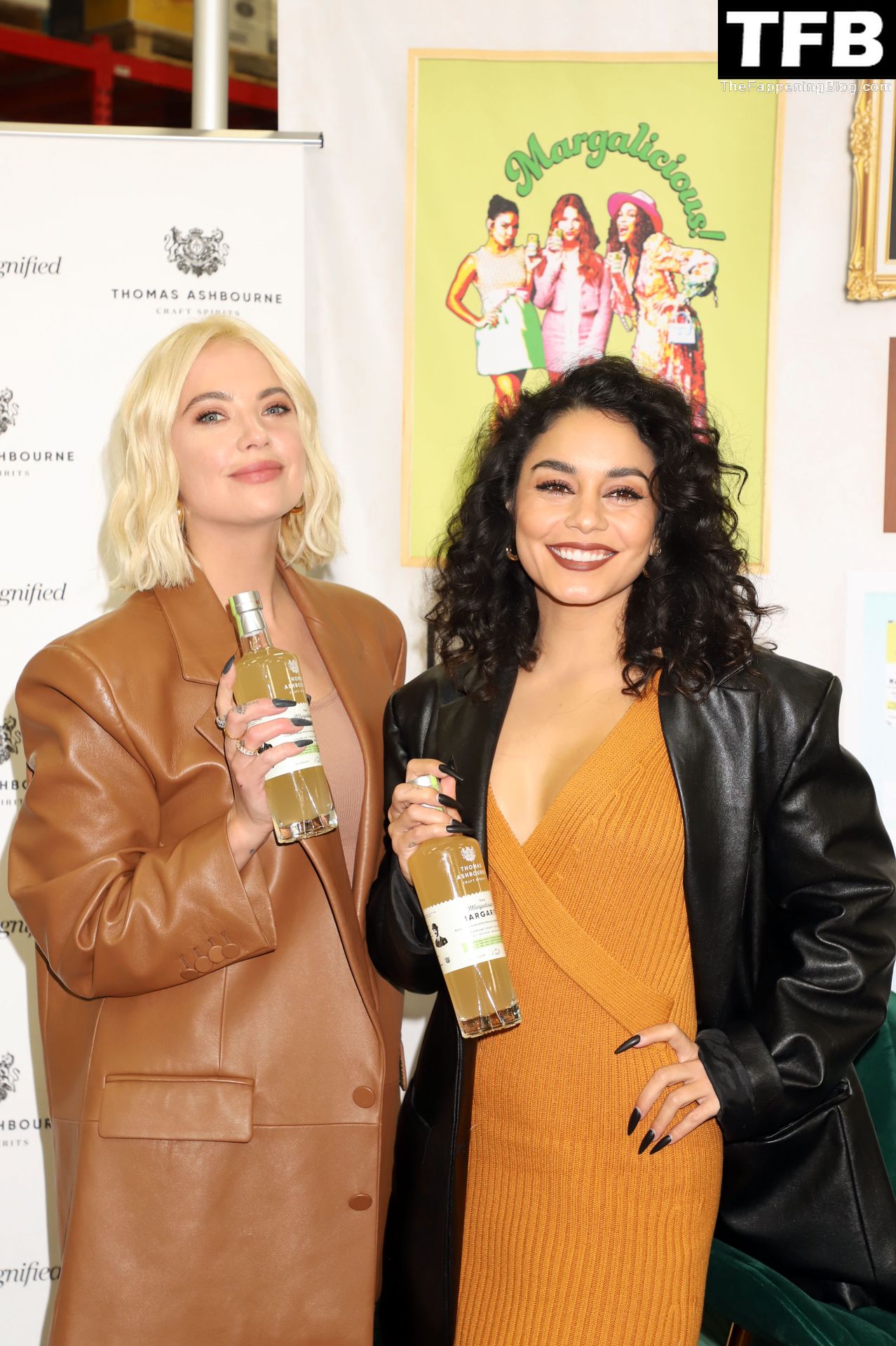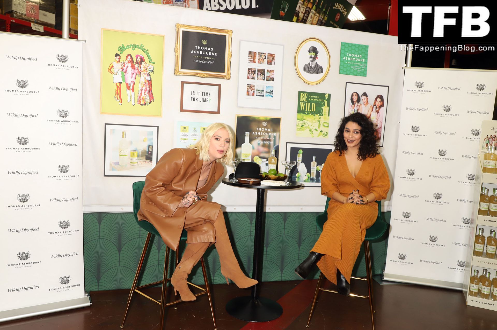 Atrizes Ashley Benson e Vanessa Hudgens assinam garrafas de Thomas Achbourne Craft Spirits em Las Vegas, 11/04/2022.