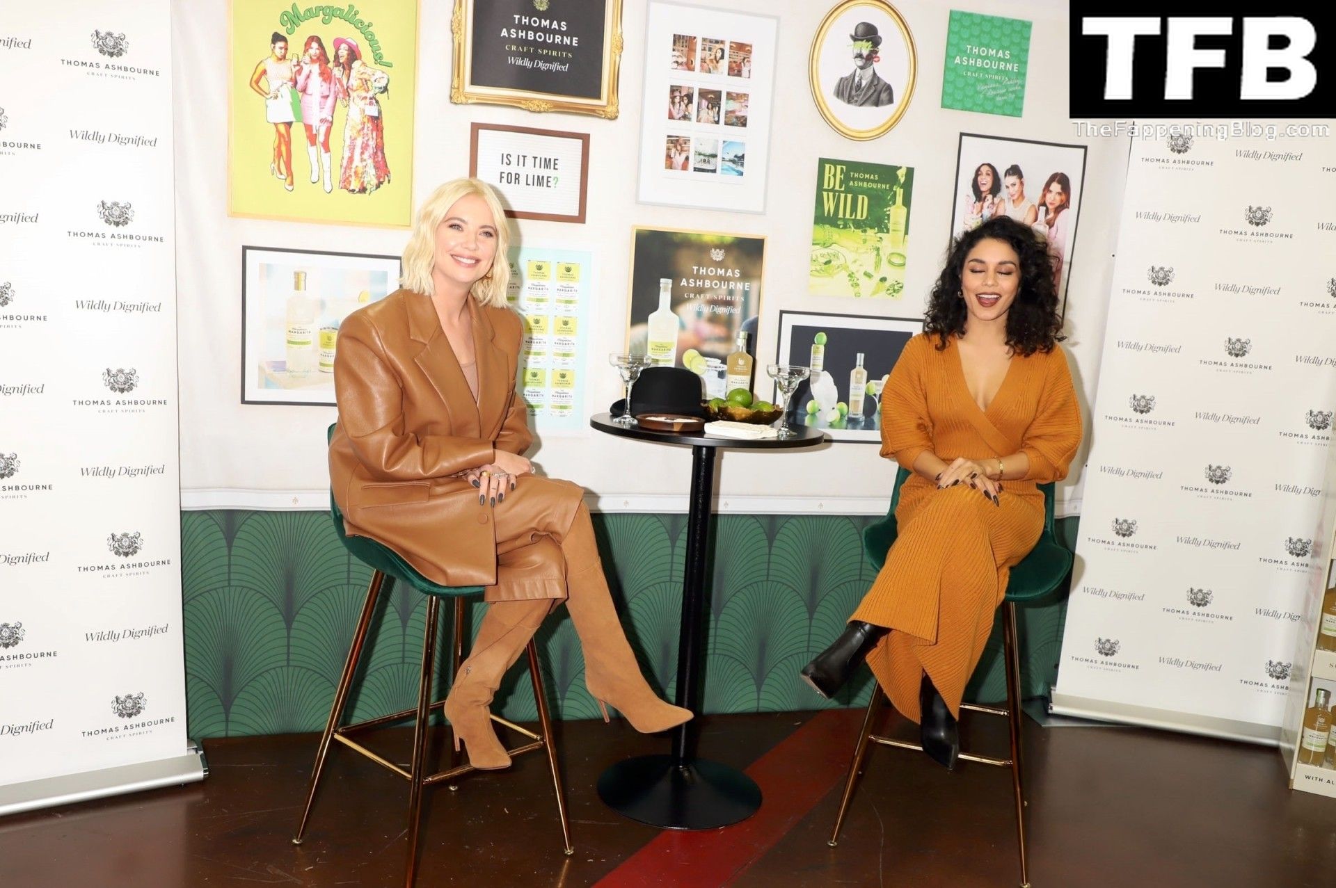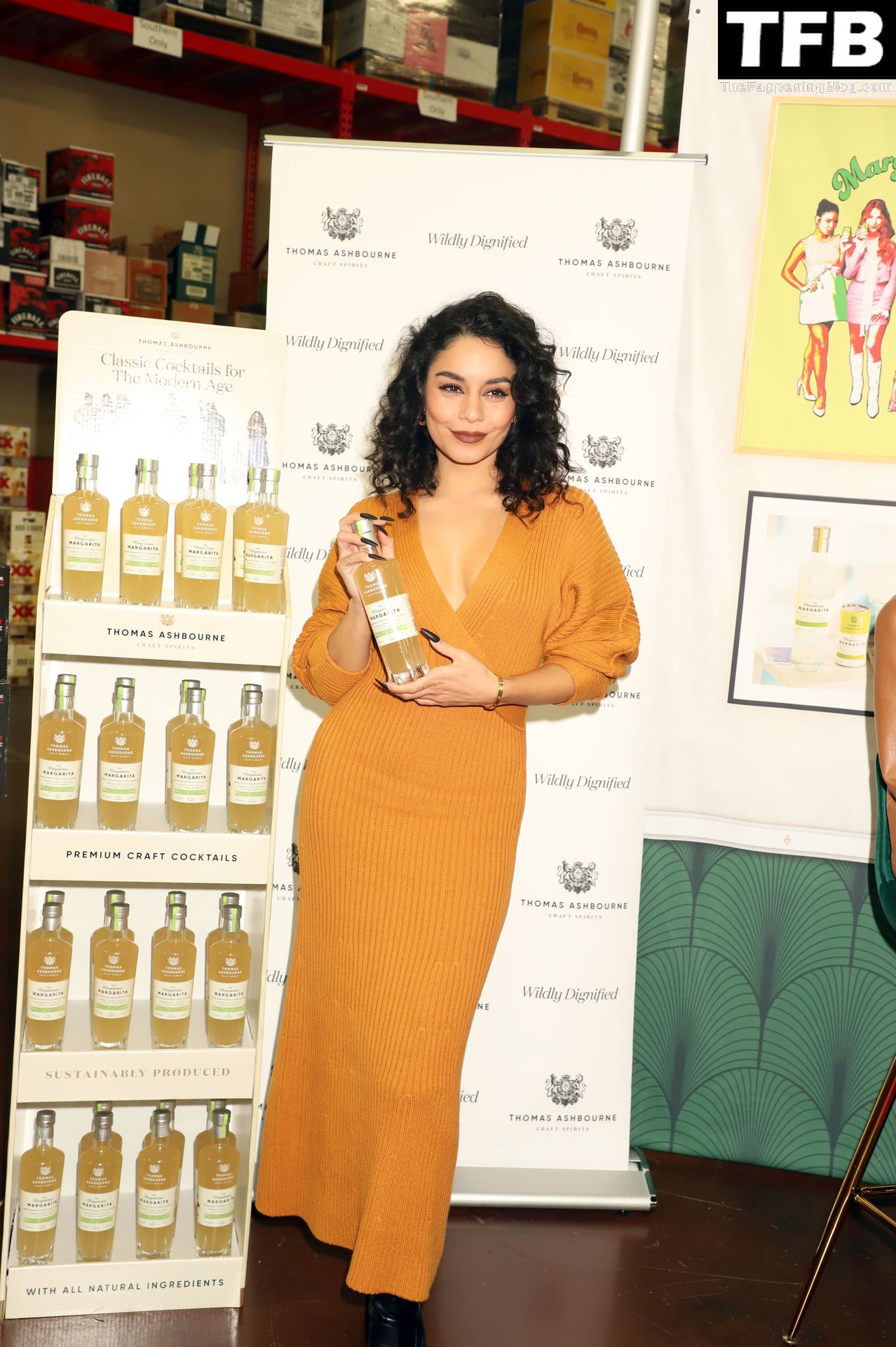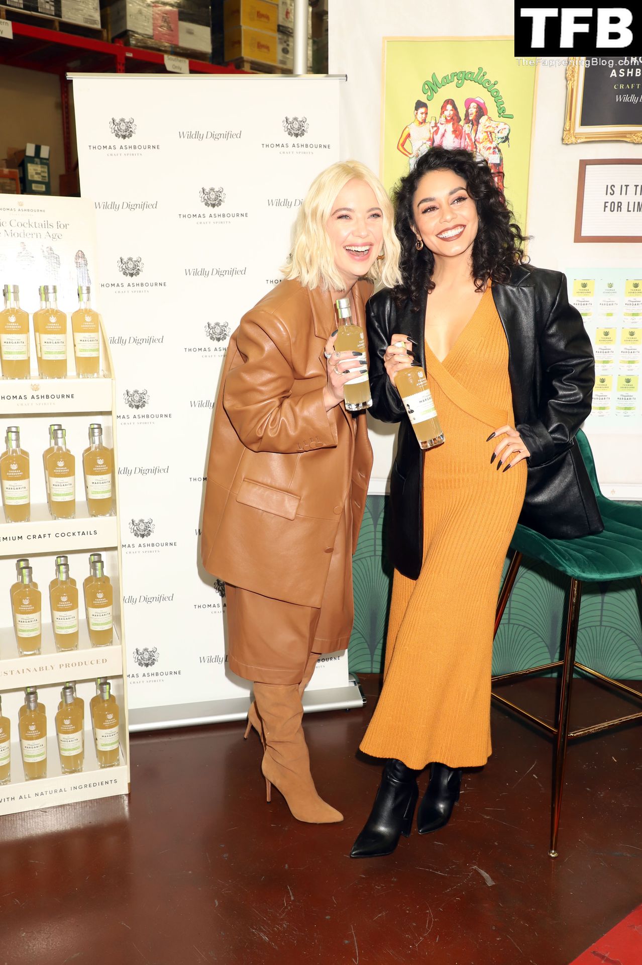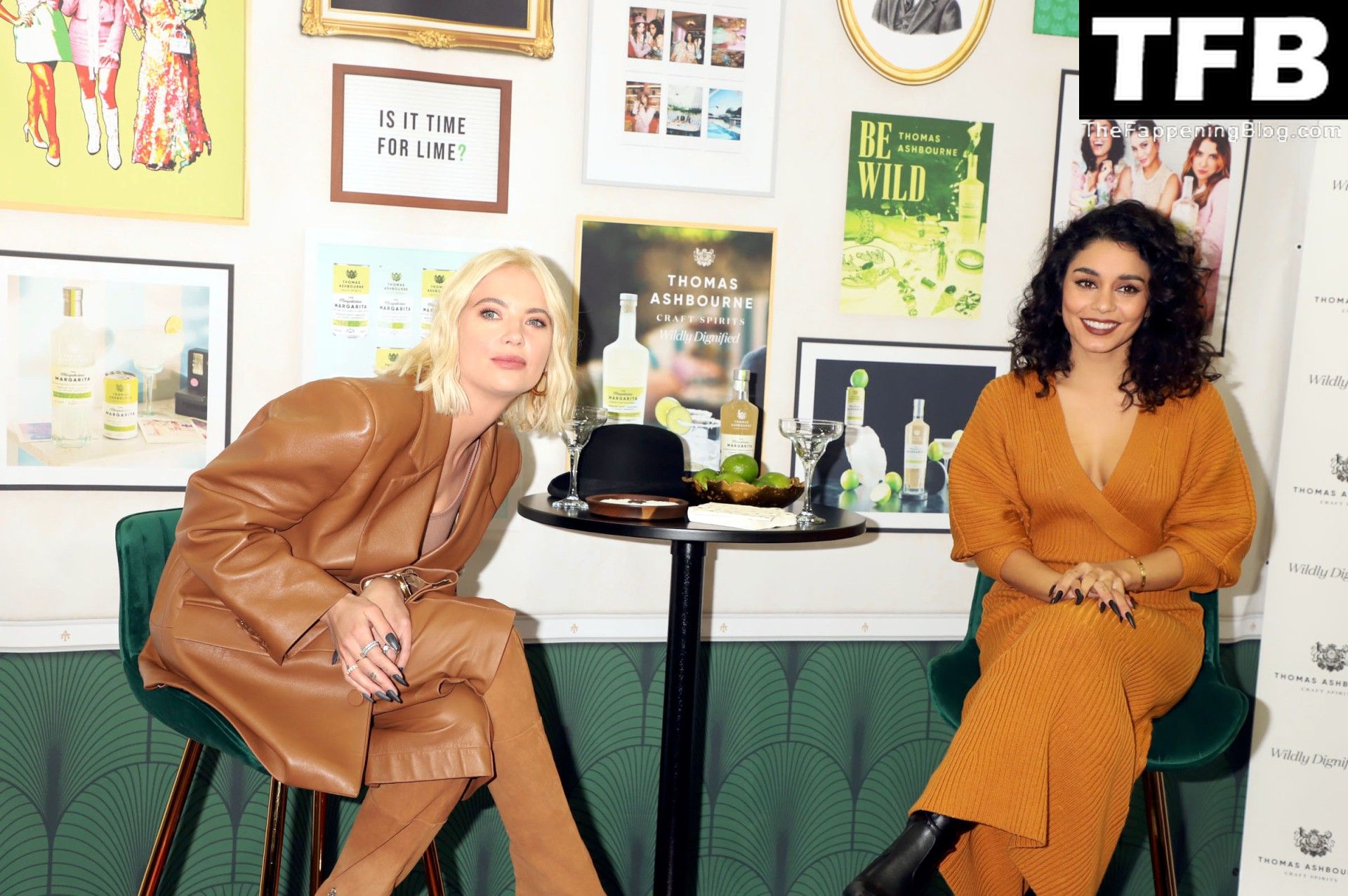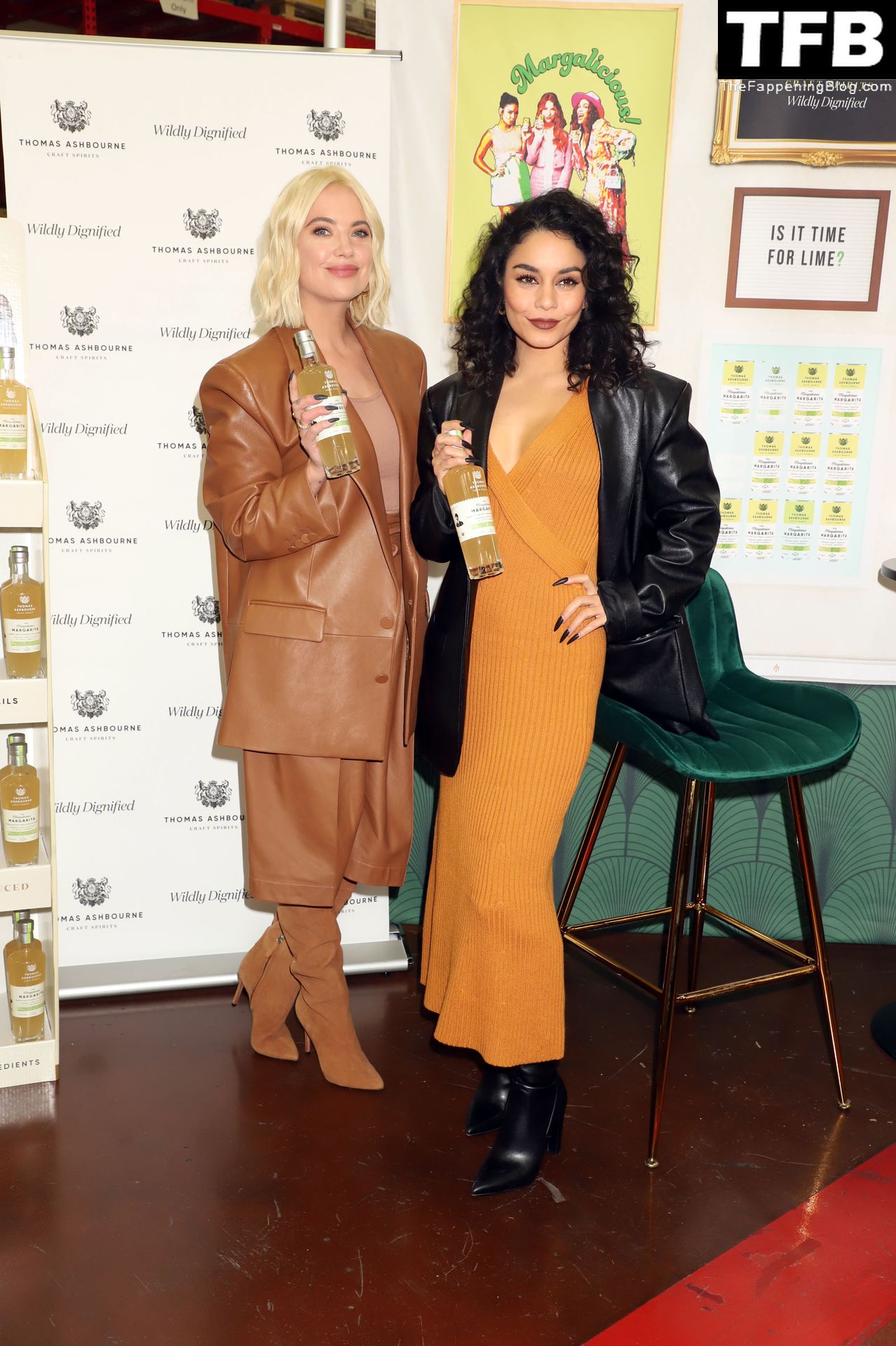 Atrizes Ashley Benson e Vanessa Hudgens assinam garrafas de Thomas Achbourne Craft Spirits em Las Vegas, 11/04/2022.