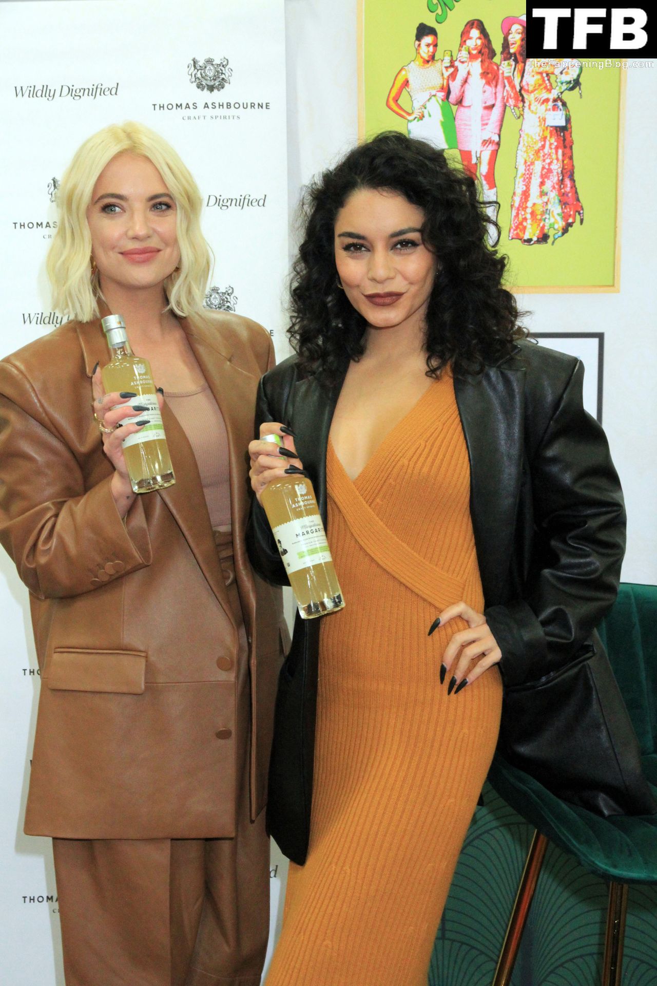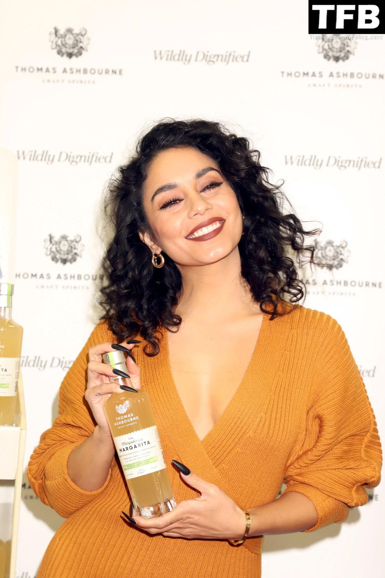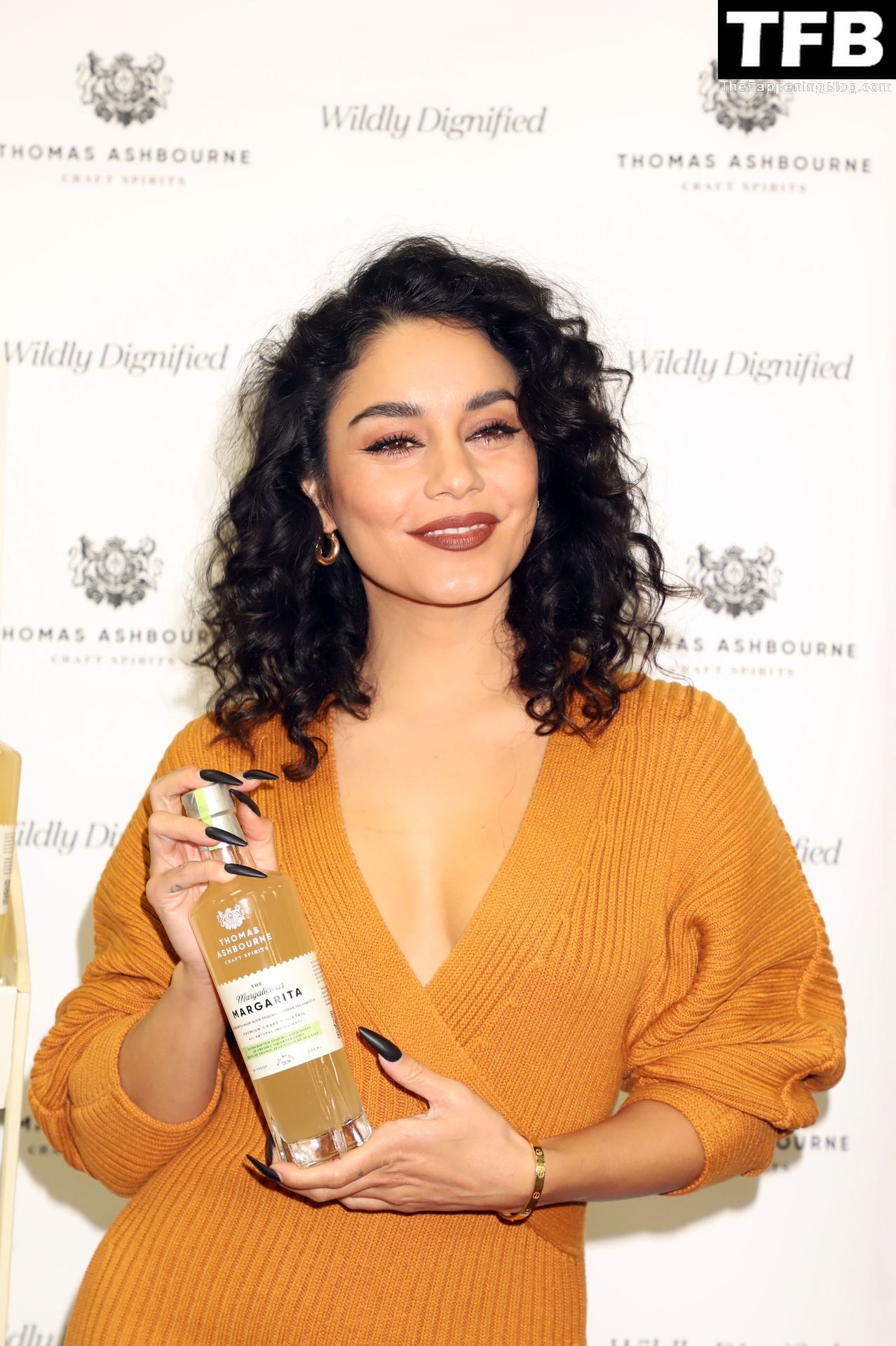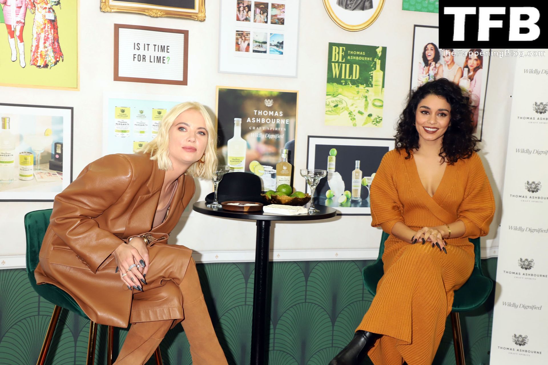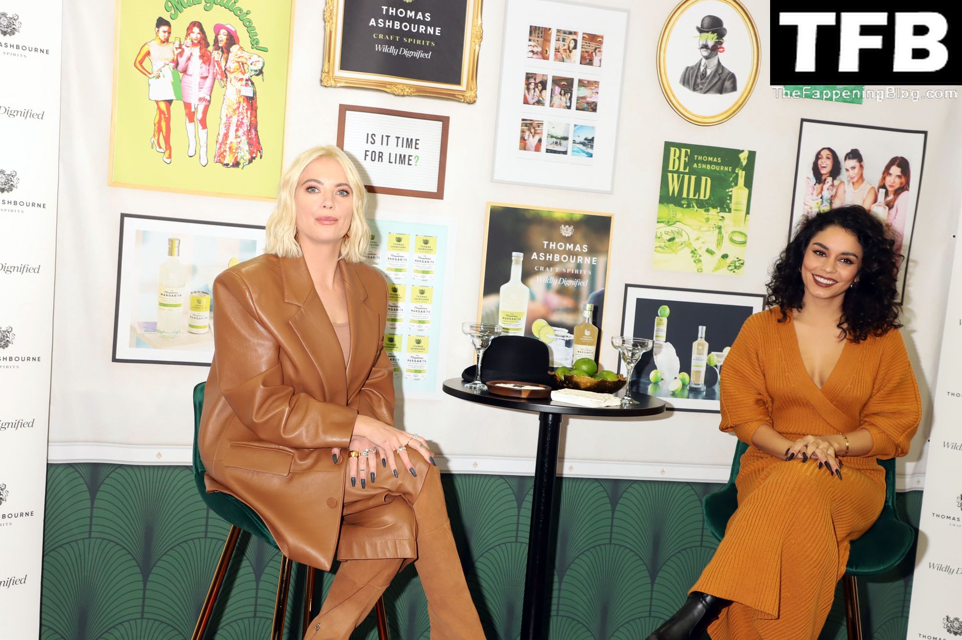Atrizes Ashley Benson e Vanessa Hudgens assinam garrafas de Thomas Achbourne Craft Spirits em Las Vegas, 11/04/2022.